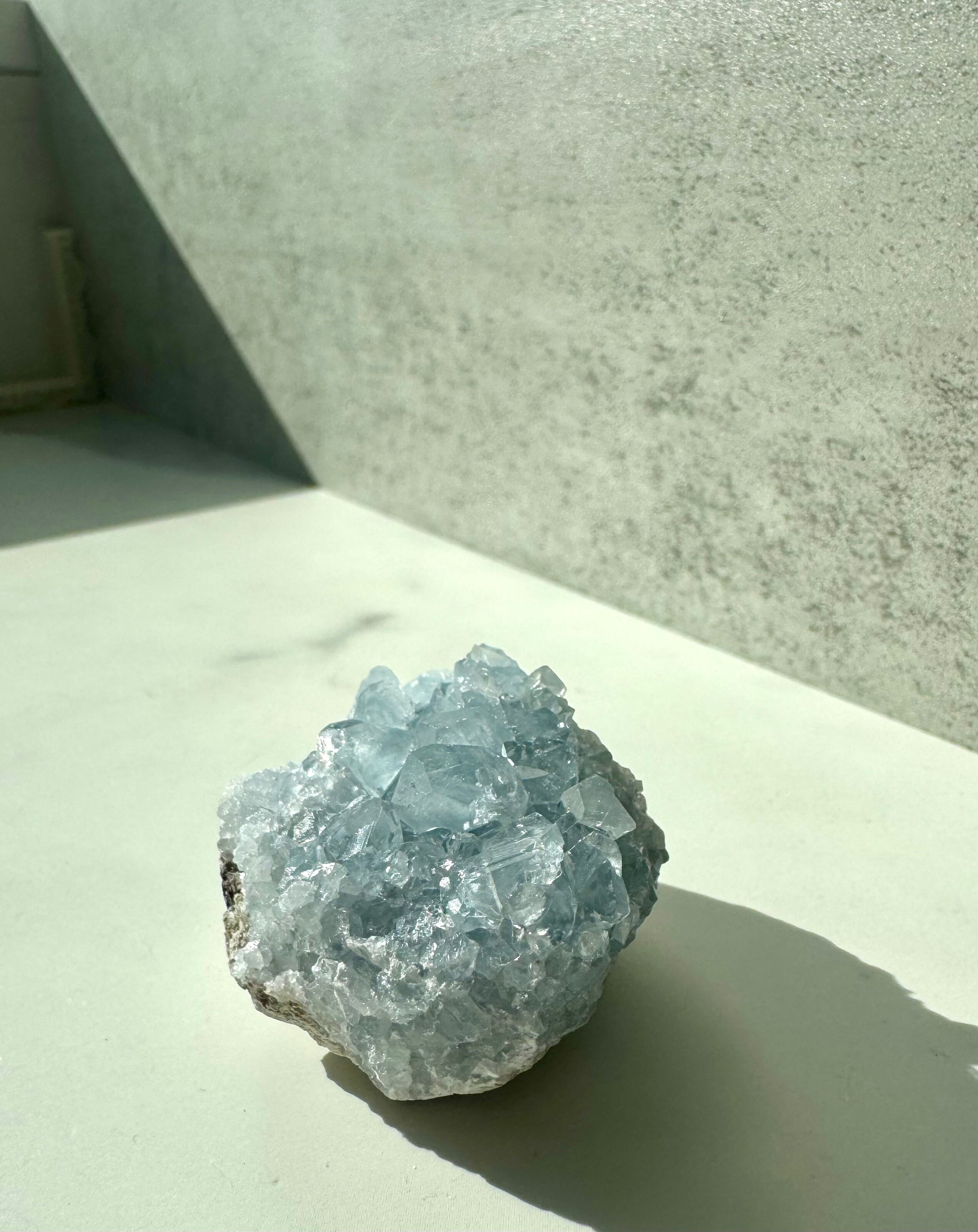 天青石という、青く晴れた空を連想させる和名を持つ、美しいスカイブルーのセレスタイト。ラテン語で「天国のような」という意味も持っています。