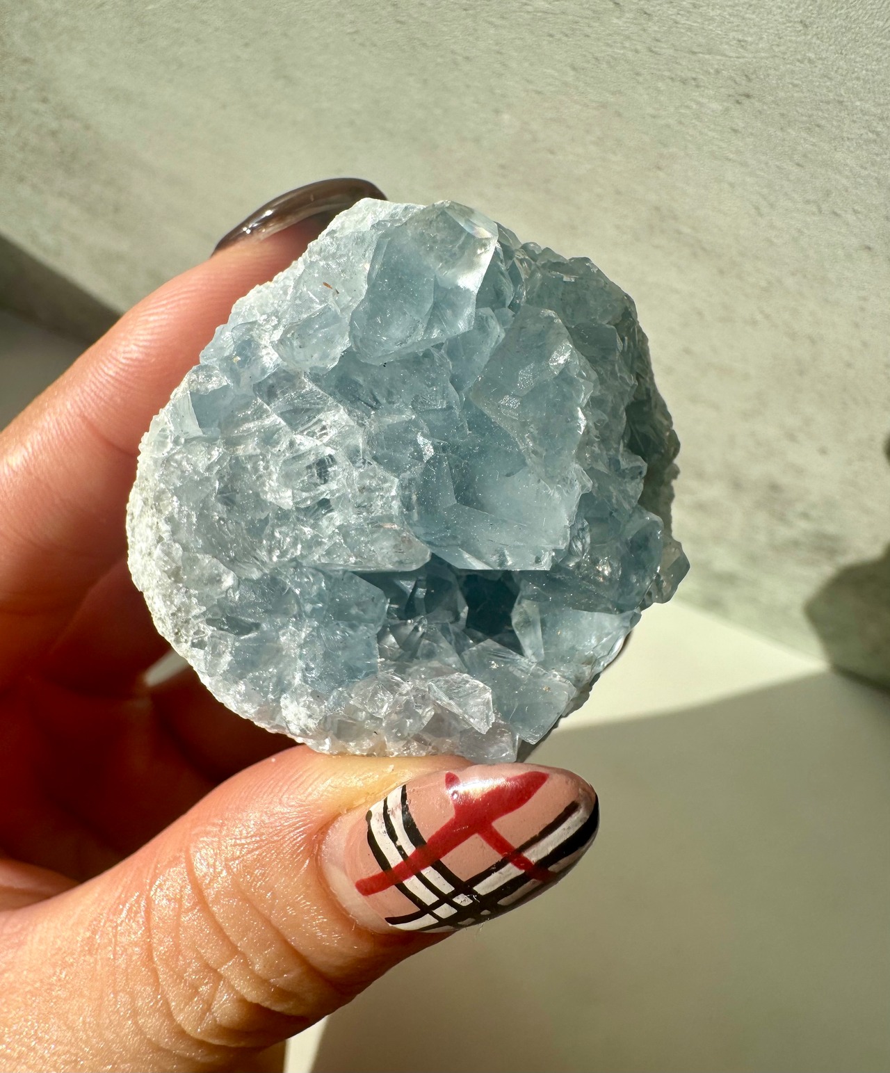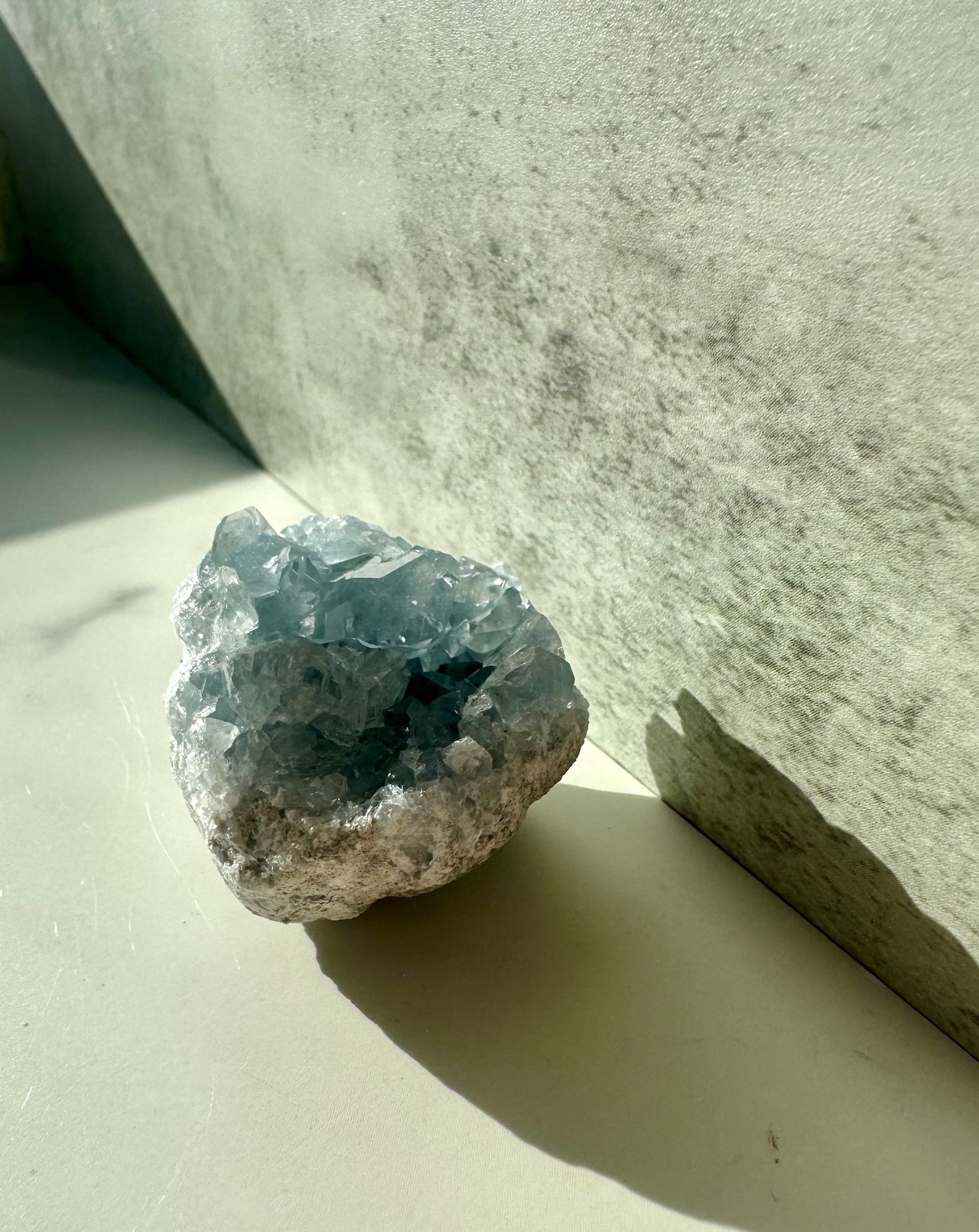 天青石という、青く晴れた空を連想させる和名を持つ、美しいスカイブルーのセレスタイト。ラテン語で「天国のような」という意味も持っています。