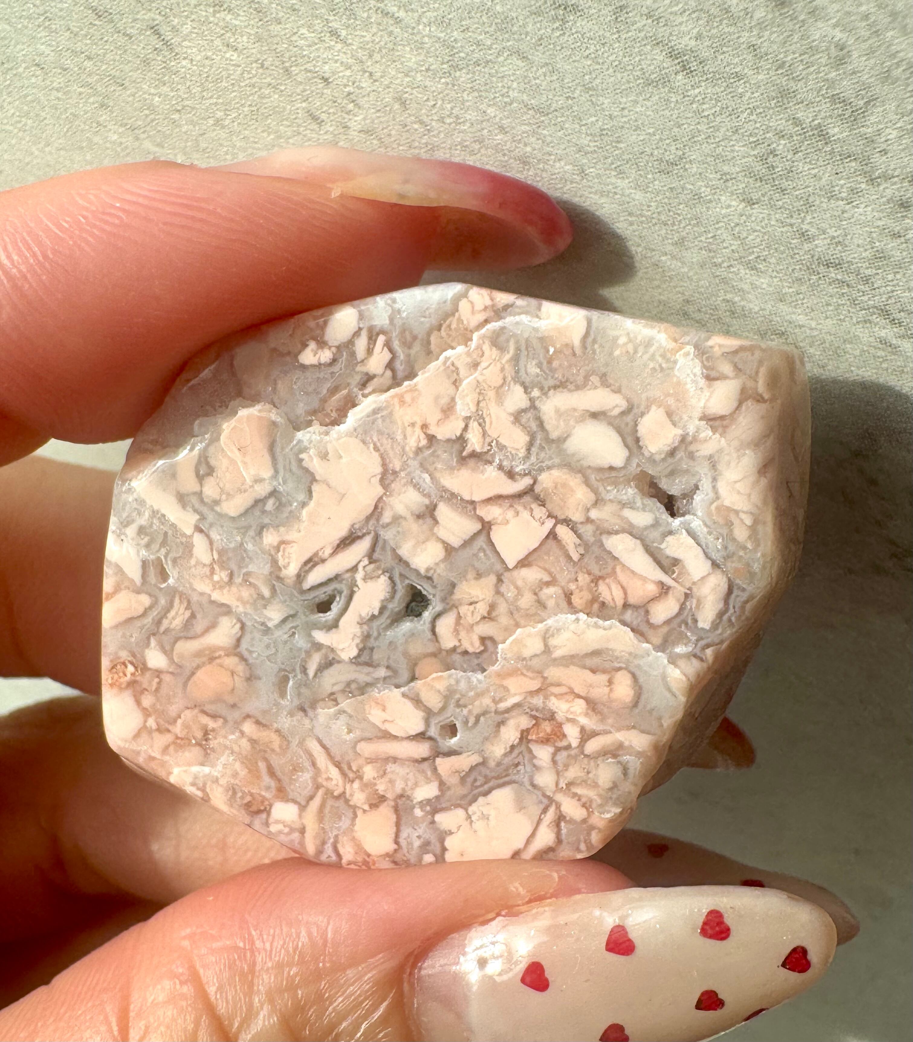 チェリーブロッサムアゲートはこれらの効果はもちろんのこと、特に愛情に関する願いがとても得意だと言われています。
