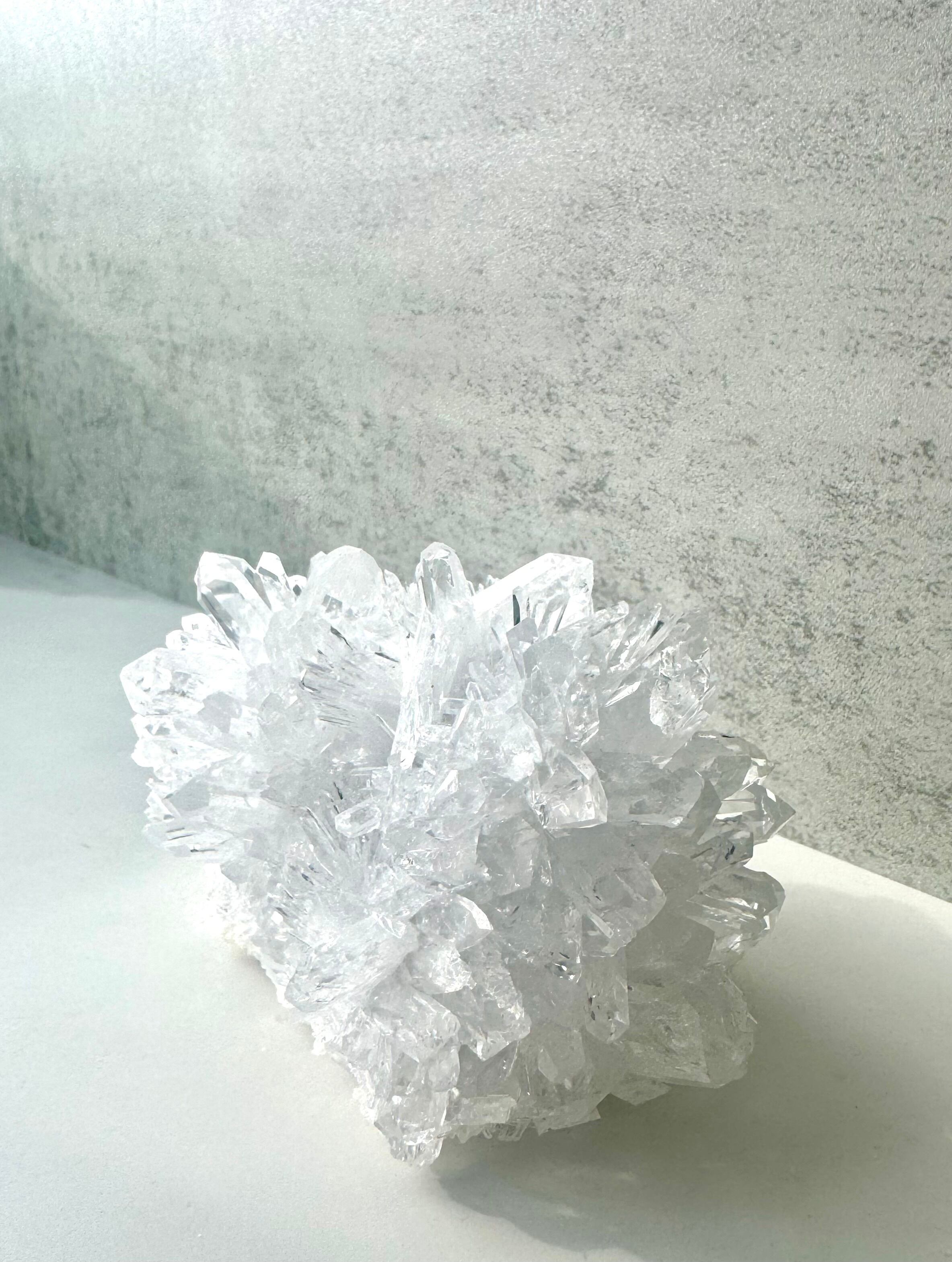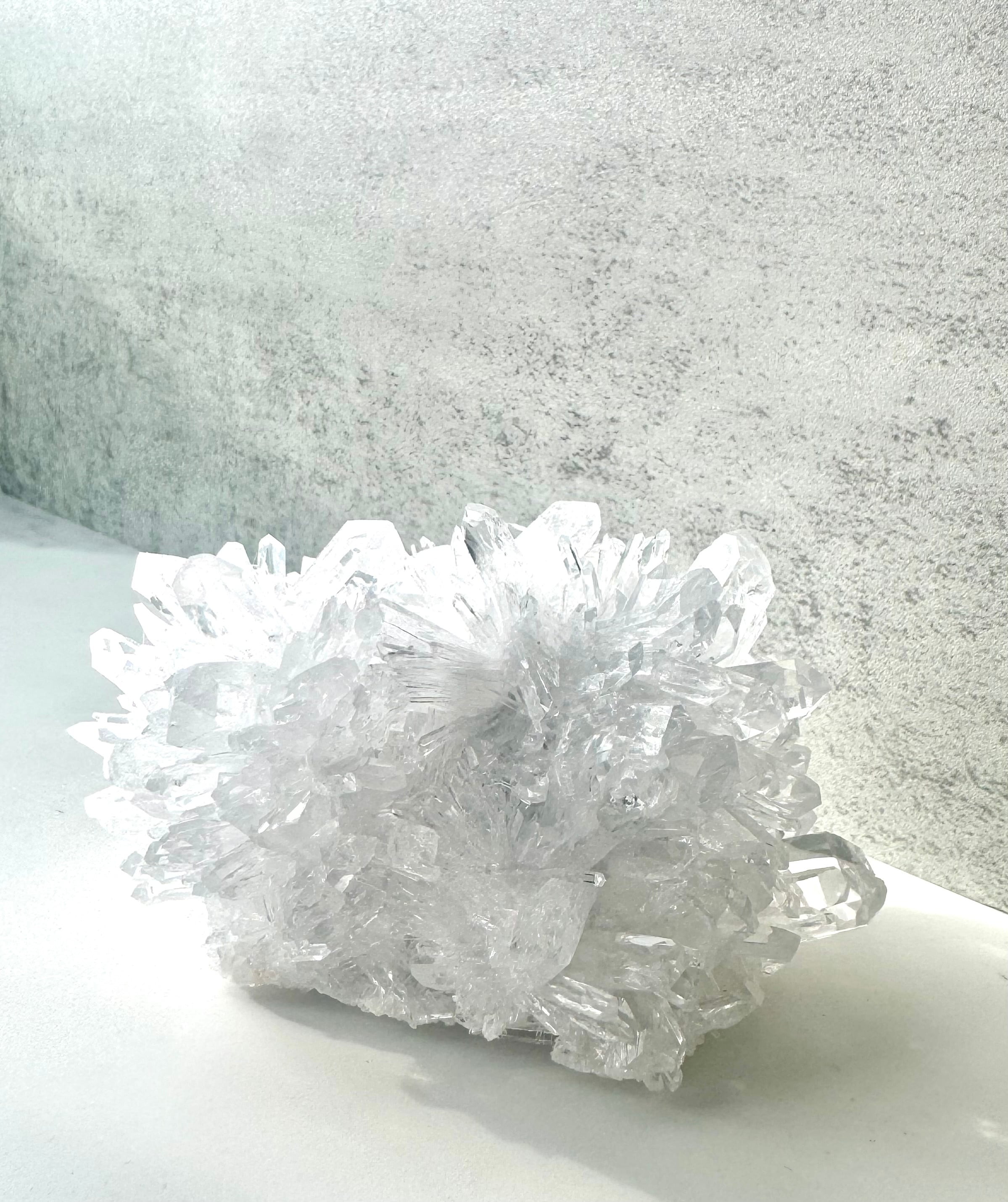 透明度が高く大輪の花が咲くように幻想的なクリアクォーツのクラスターです。