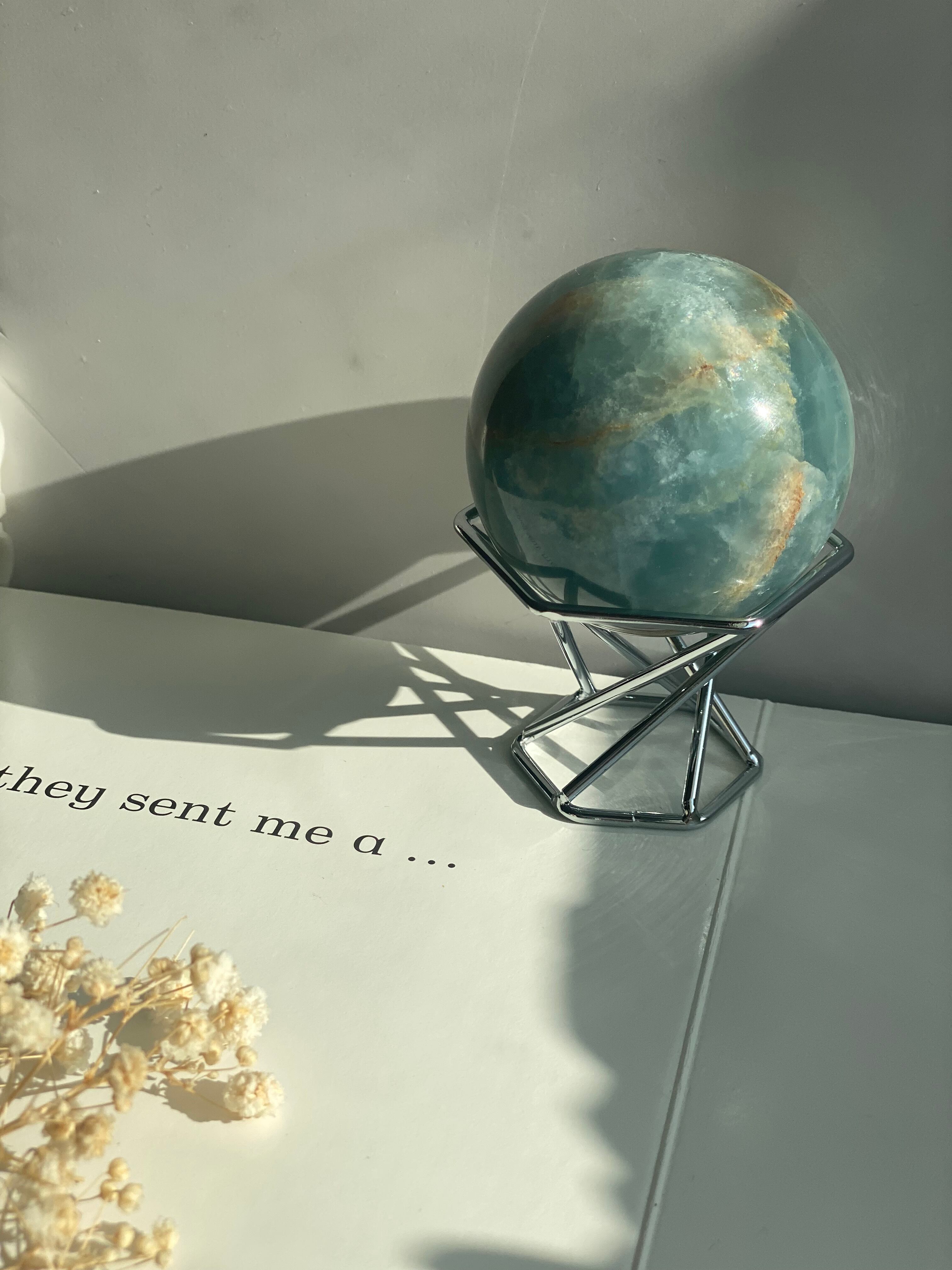 様々なサイズのスフィアや鉱物を置くことができるスフィアスタンドです。真上から見るとヘキサグラム(六芒星)の形が見えます。ヘキサグラムには、魔除けや幸運を引き寄せる効果があると言われています。