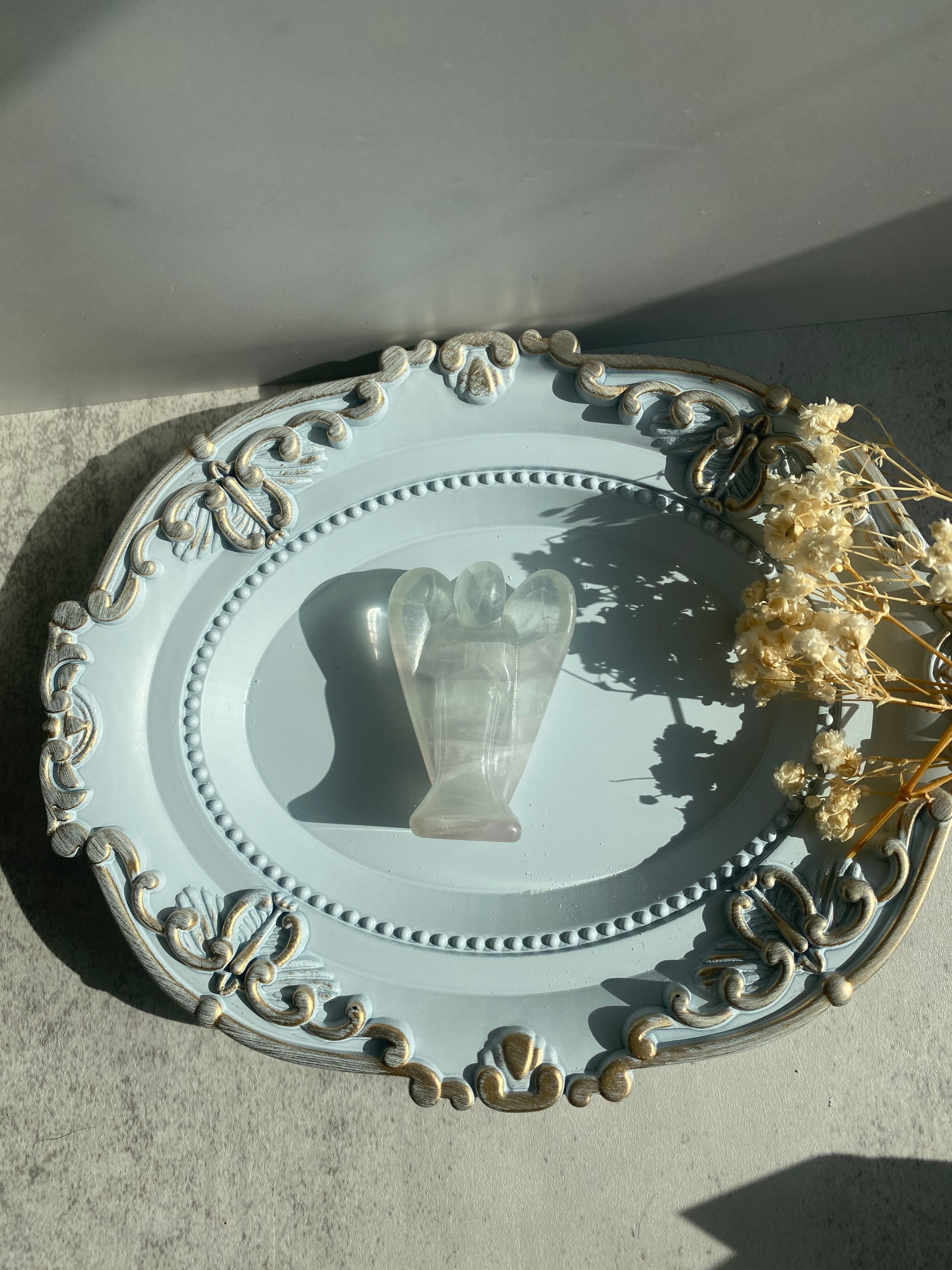 クリアなカラーのグラデーションが美しい、レインボーフローライトのエンジェルです。