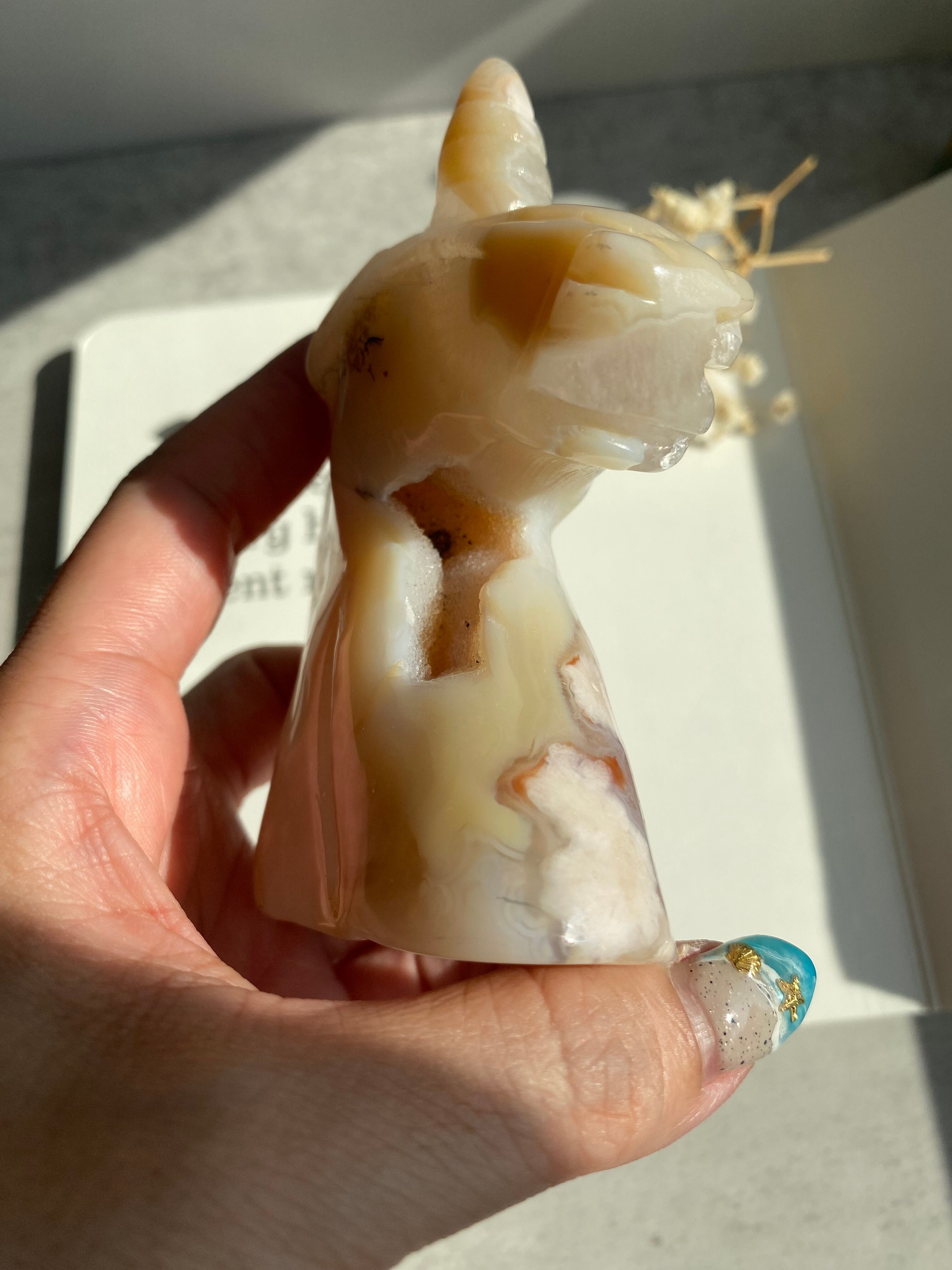 満開の桜を表現したようなフラワーアゲート(チェリーブロッサムアゲート)のユニコーンです。