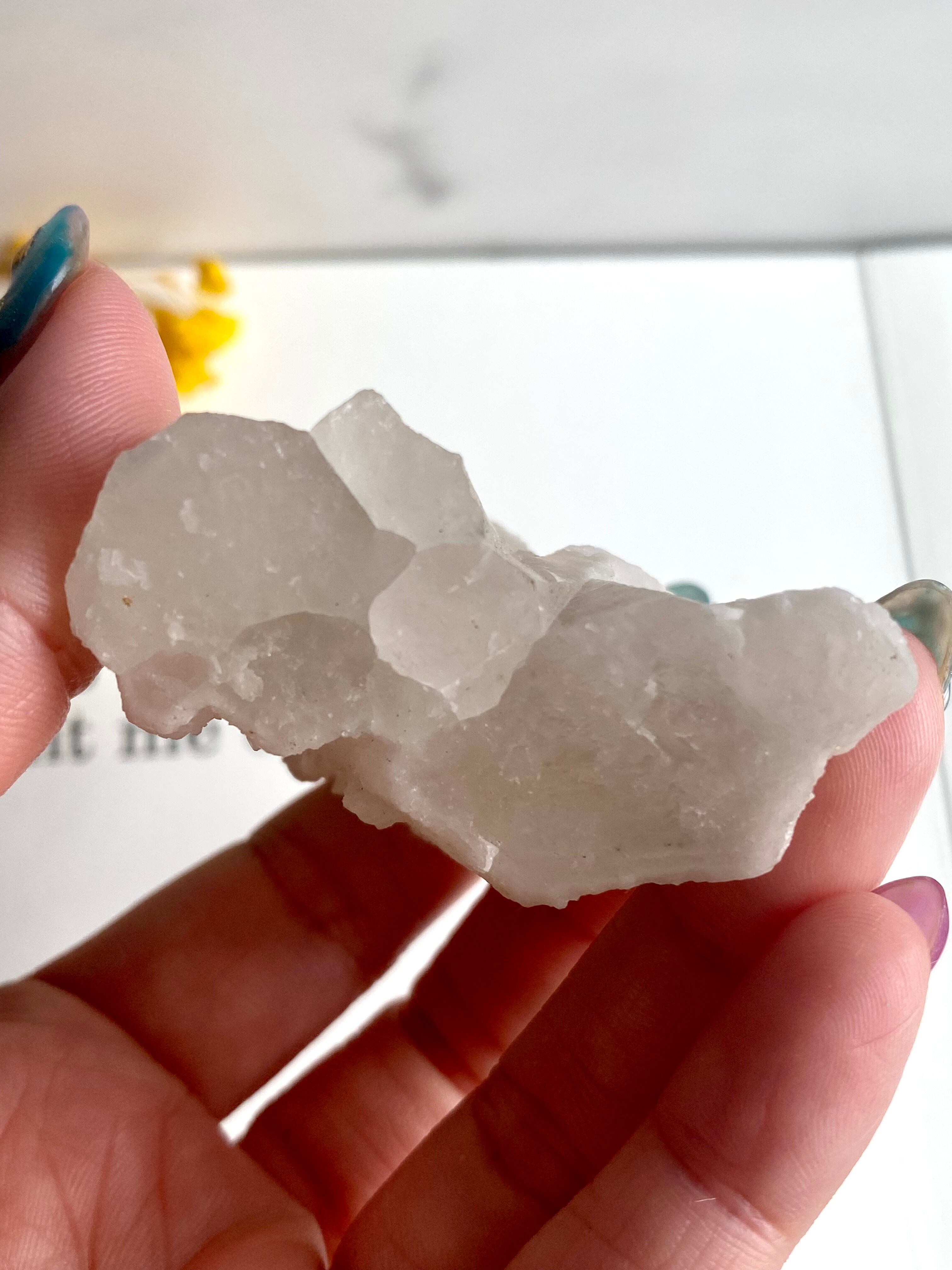 カルサイトに包まれたキャンドルクォーツ。大きさも丁度良く、握るとホッとする感覚があります。