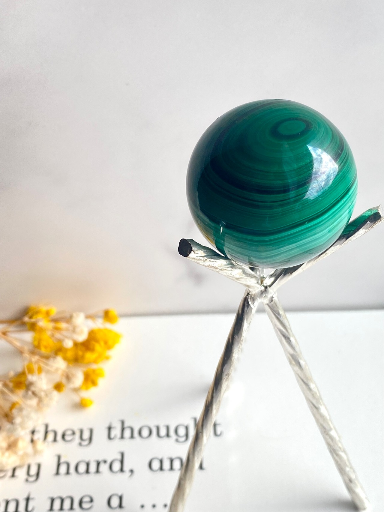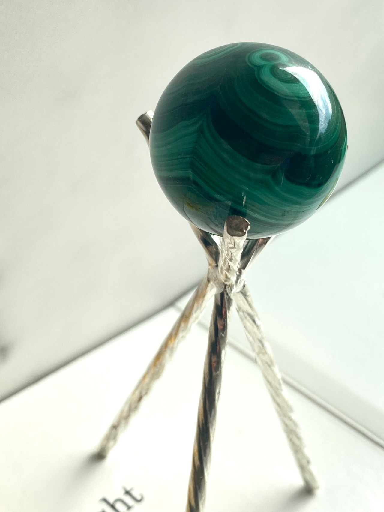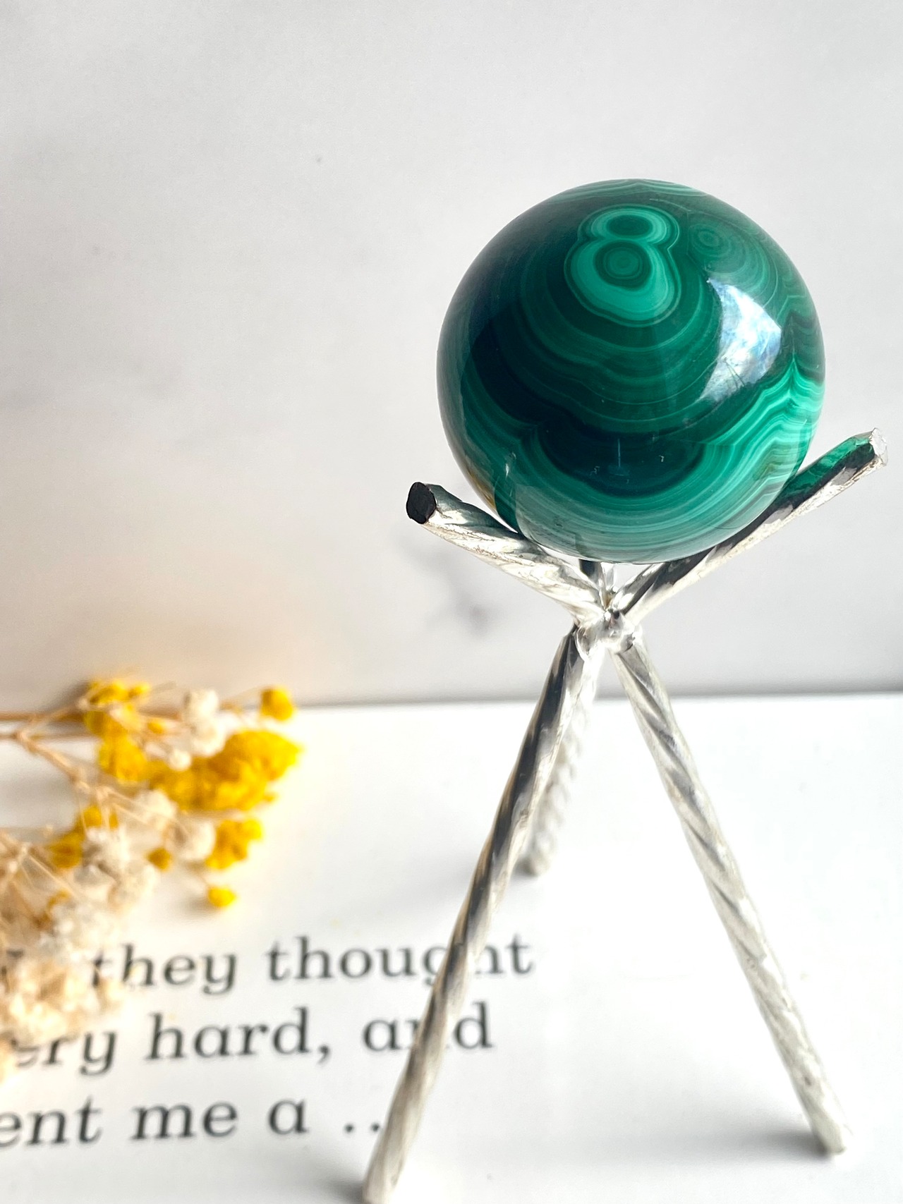 綺麗な模様のマラカイトスフィアです。深い緑に幾層にも織りなす模様がとても綺麗で目を奪われます。