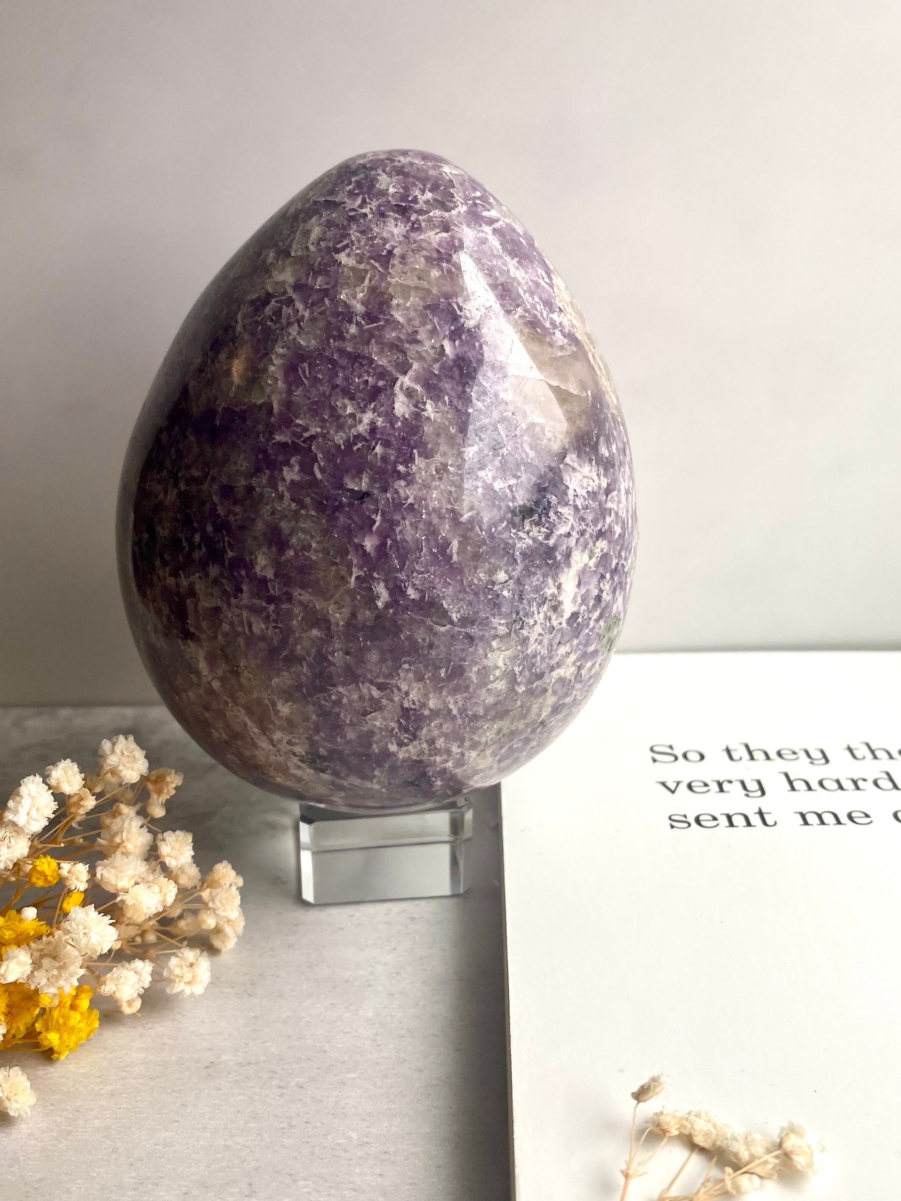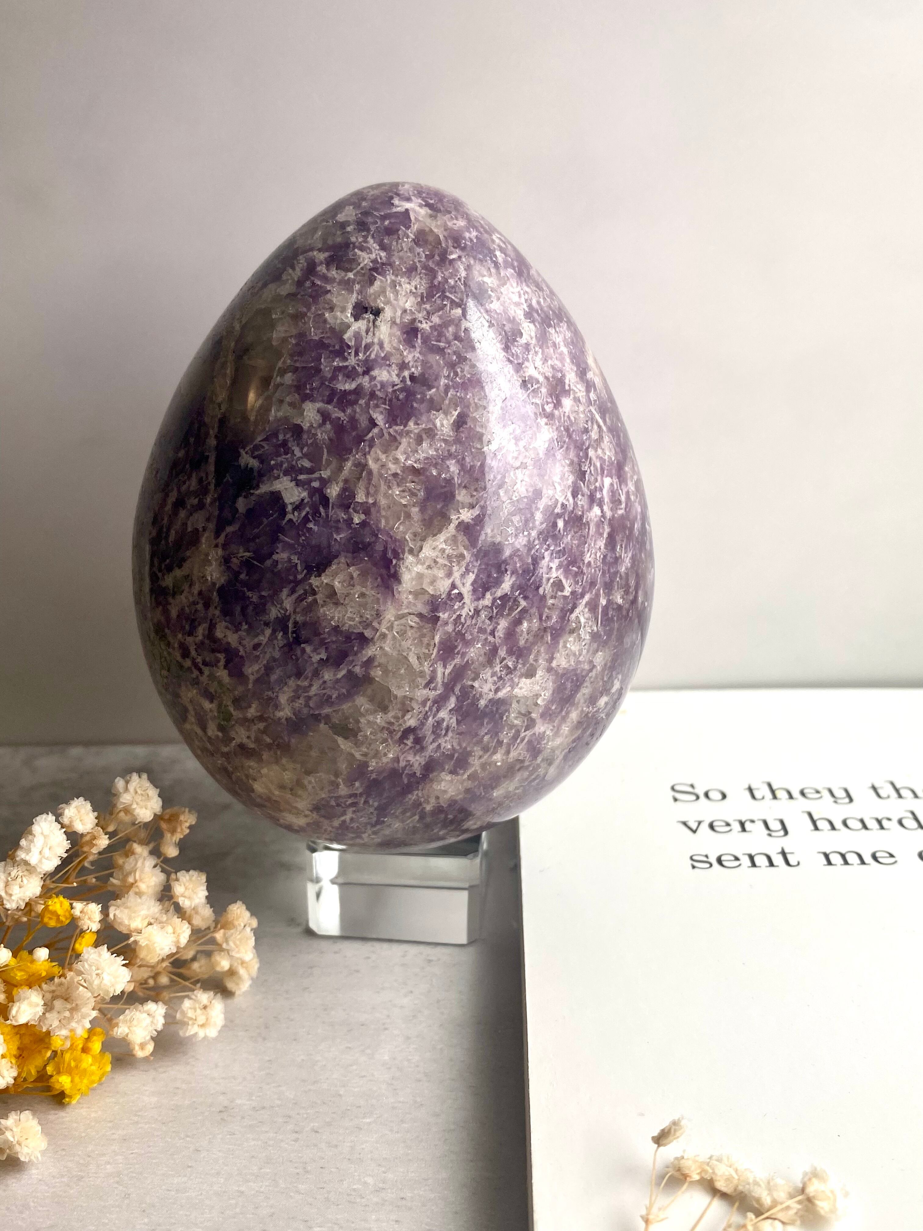 濃い目のライラックカラーが綺麗なレピドライトエッグです。
