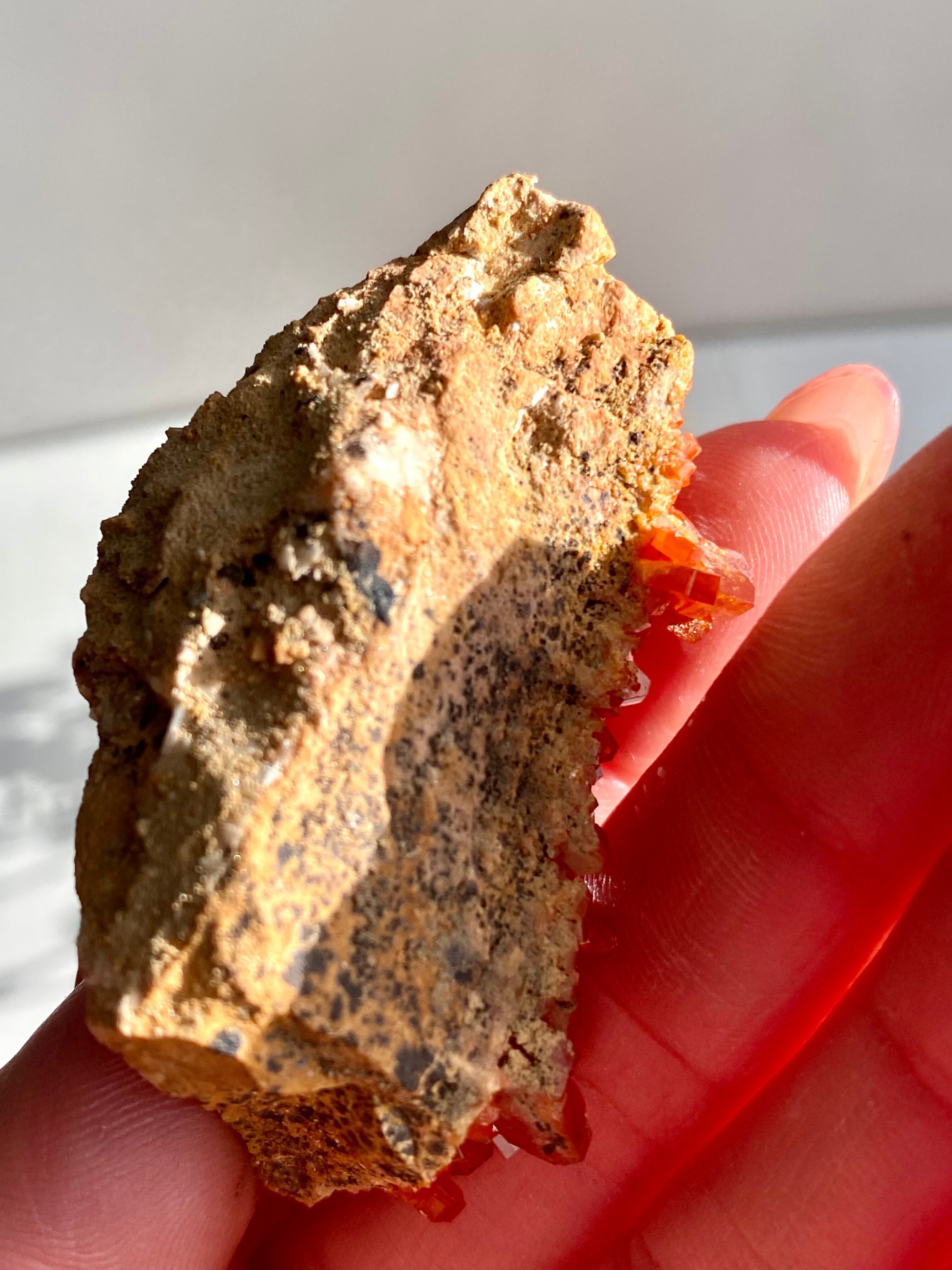 赤に近い色が多く、非常に目立つ鉱物ですが、1830年にバナジウムが発見されるまでは未知の鉱物でした。