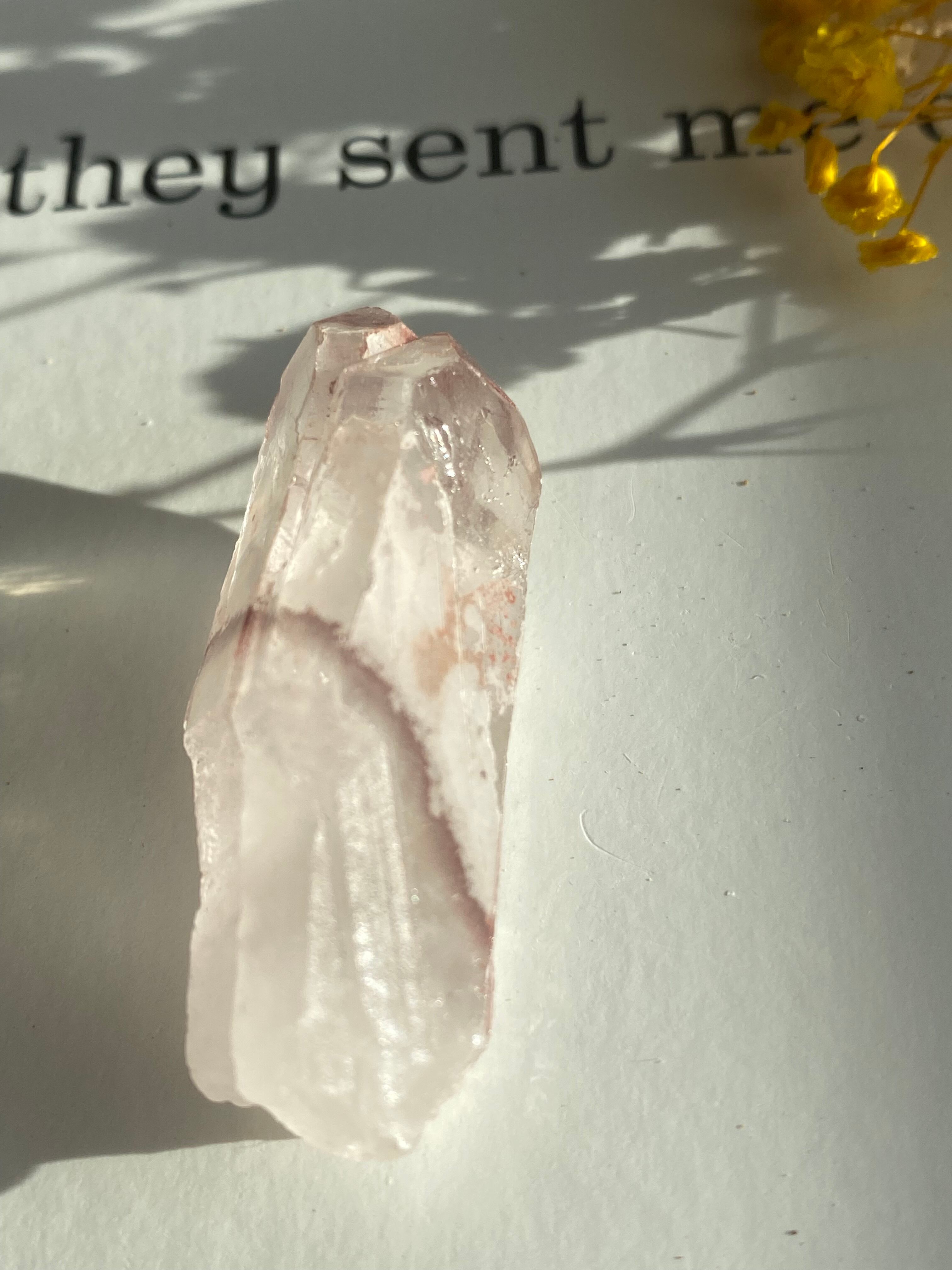 数億万年前に存在したとされる伝説のレムリア大陸で、高度な文明を築いたとされるレムリア民族がメッセージを現代人に残し伝えるクリスタル。タンジェリンはヘマタイト(酸化鉱物)のことで、表面に薄く覆われた鉄成分が参加してオレンジ色に浮かび上がった水晶の通称として「タンジェリンクォーツ」と呼ばれています。