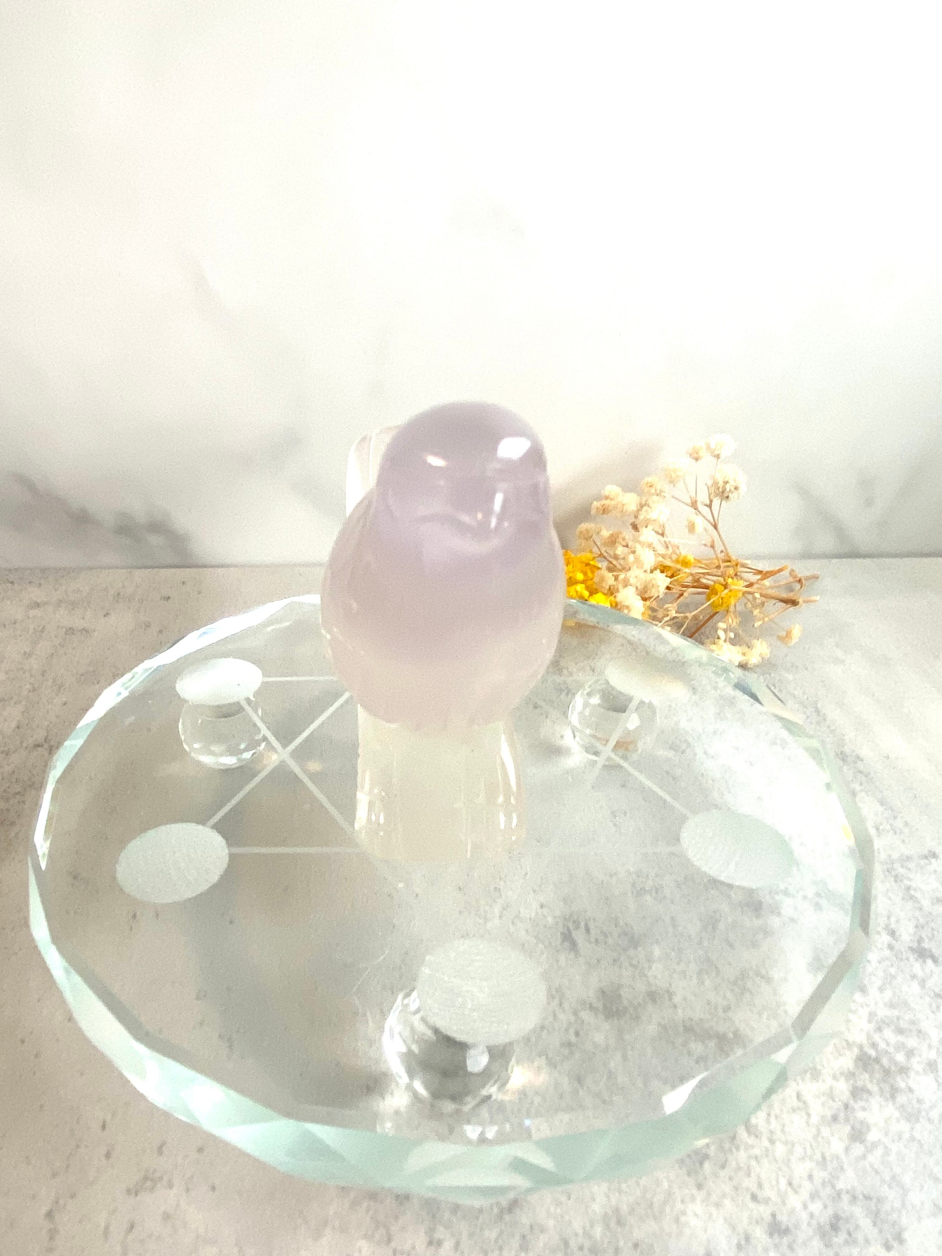 透き通ったパープルとグリーンカラーが優しい印象のフローライトの鳥です。