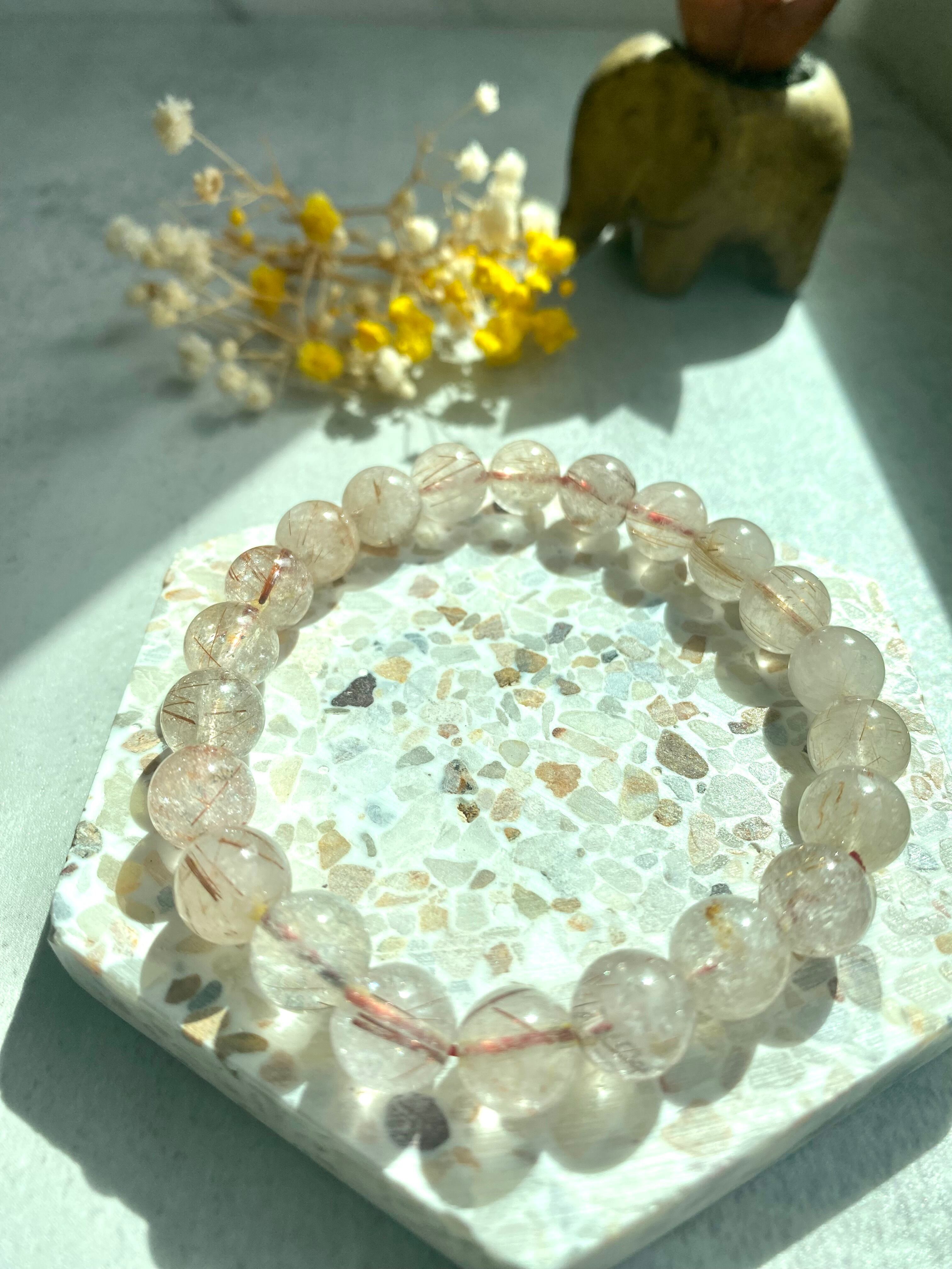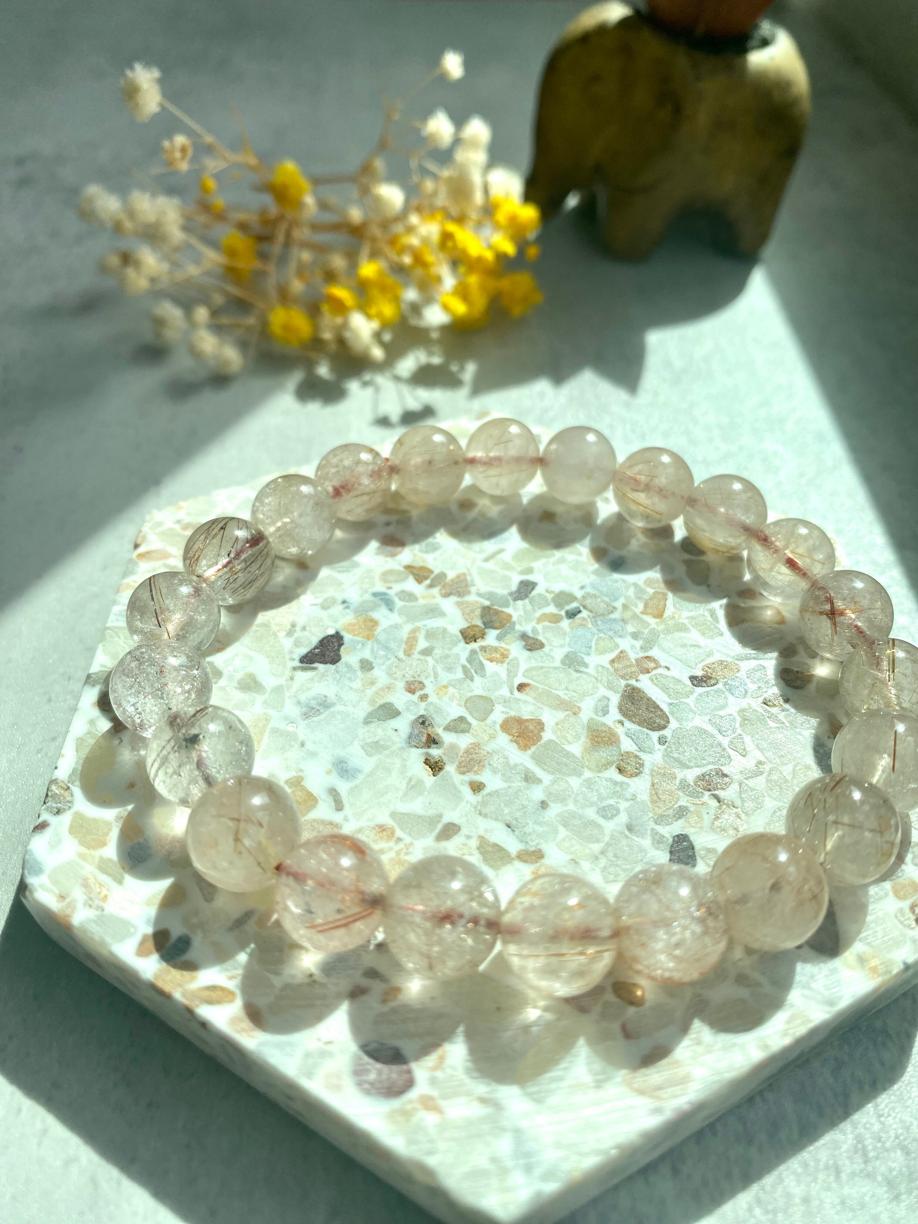 レッドルチルとホワイトカラーがとても可愛いレッドルチルブレスレットです。