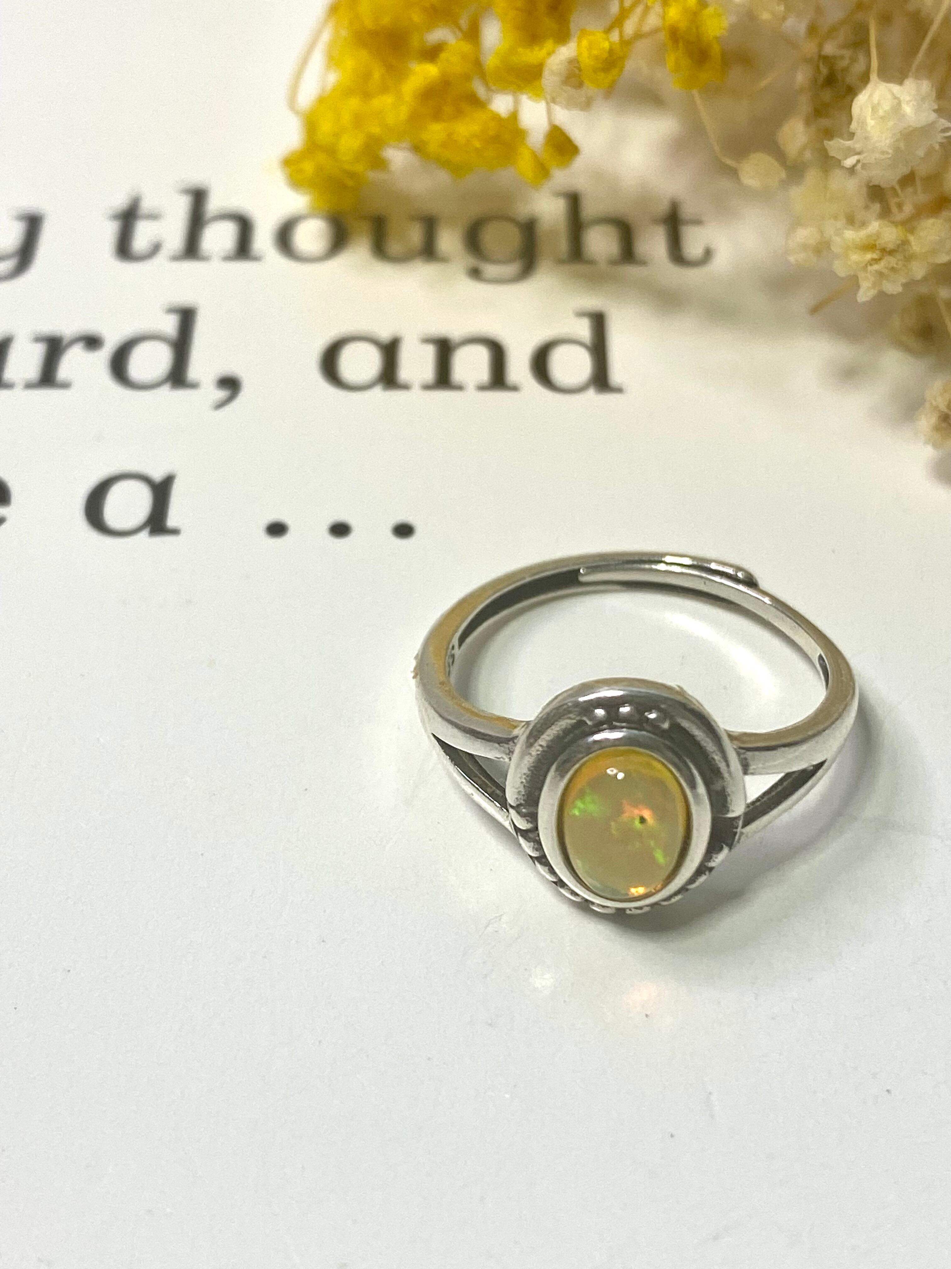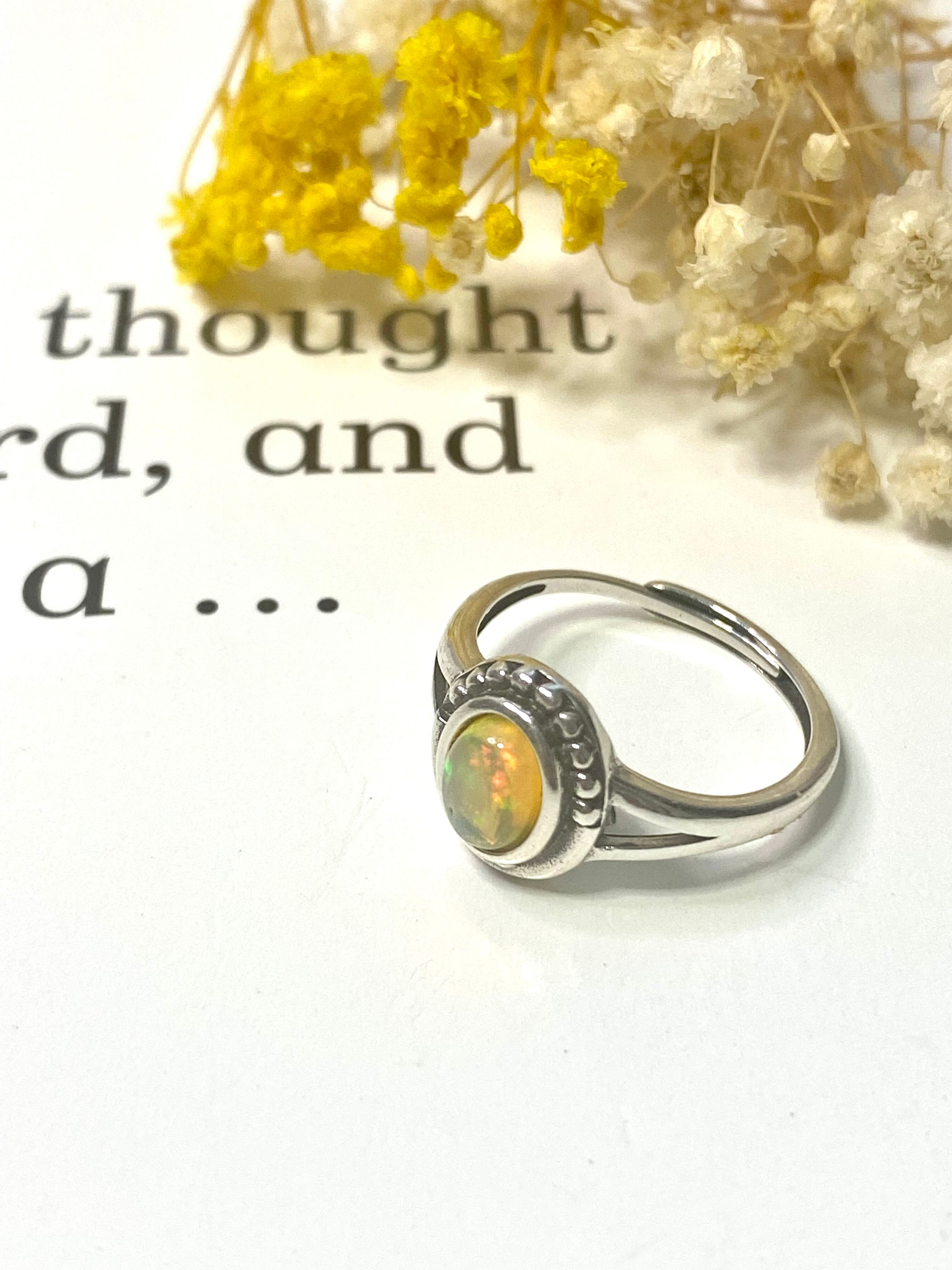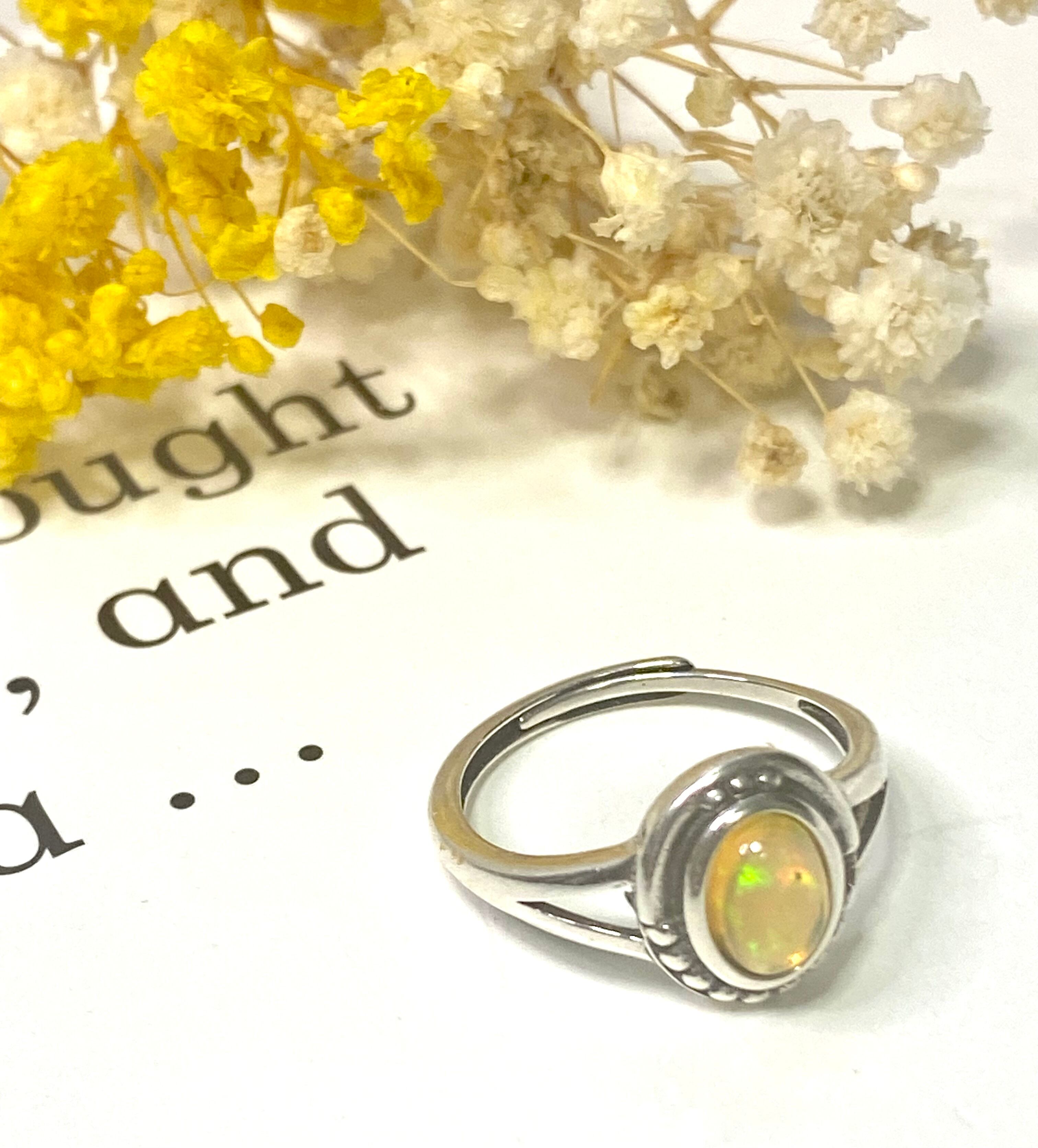 いろいろなカラーが角度によって見え隠れするオパールのリングです。