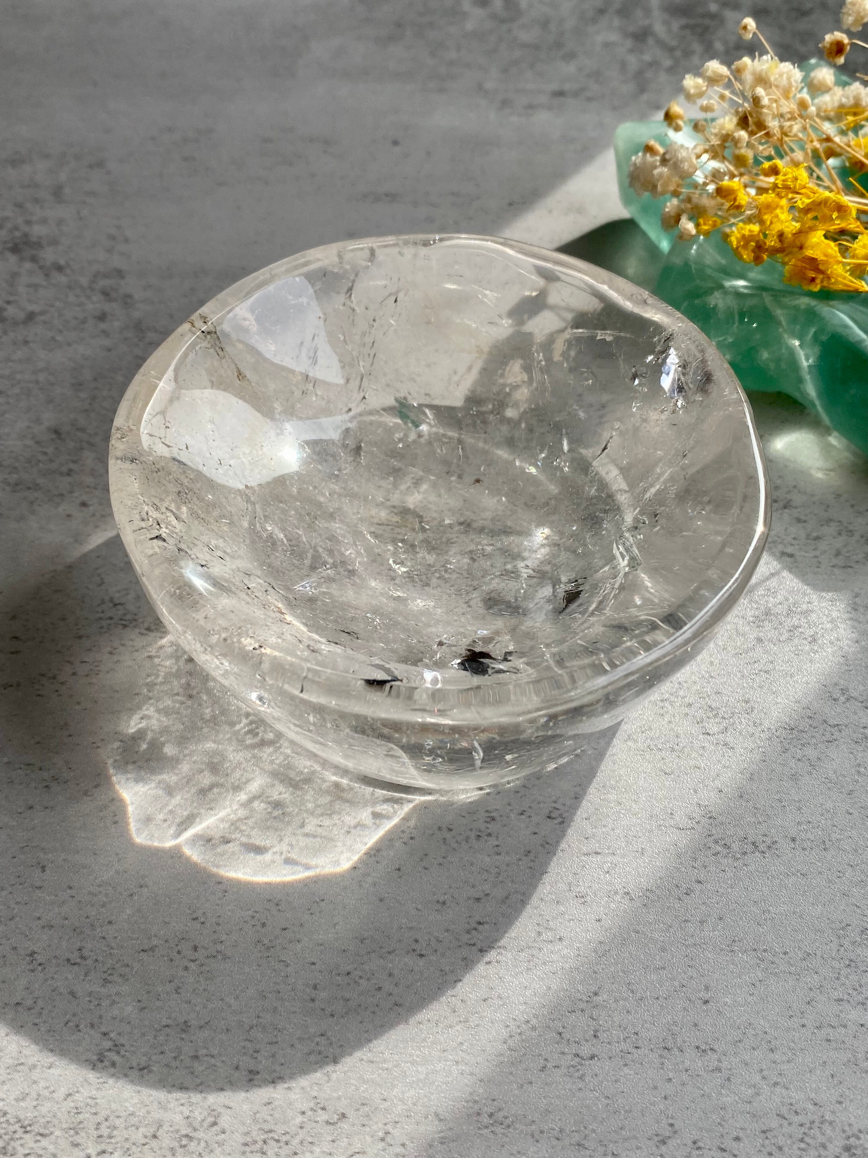 透明度の高いクリアクォーツボウルです。虹も沢山見られます。