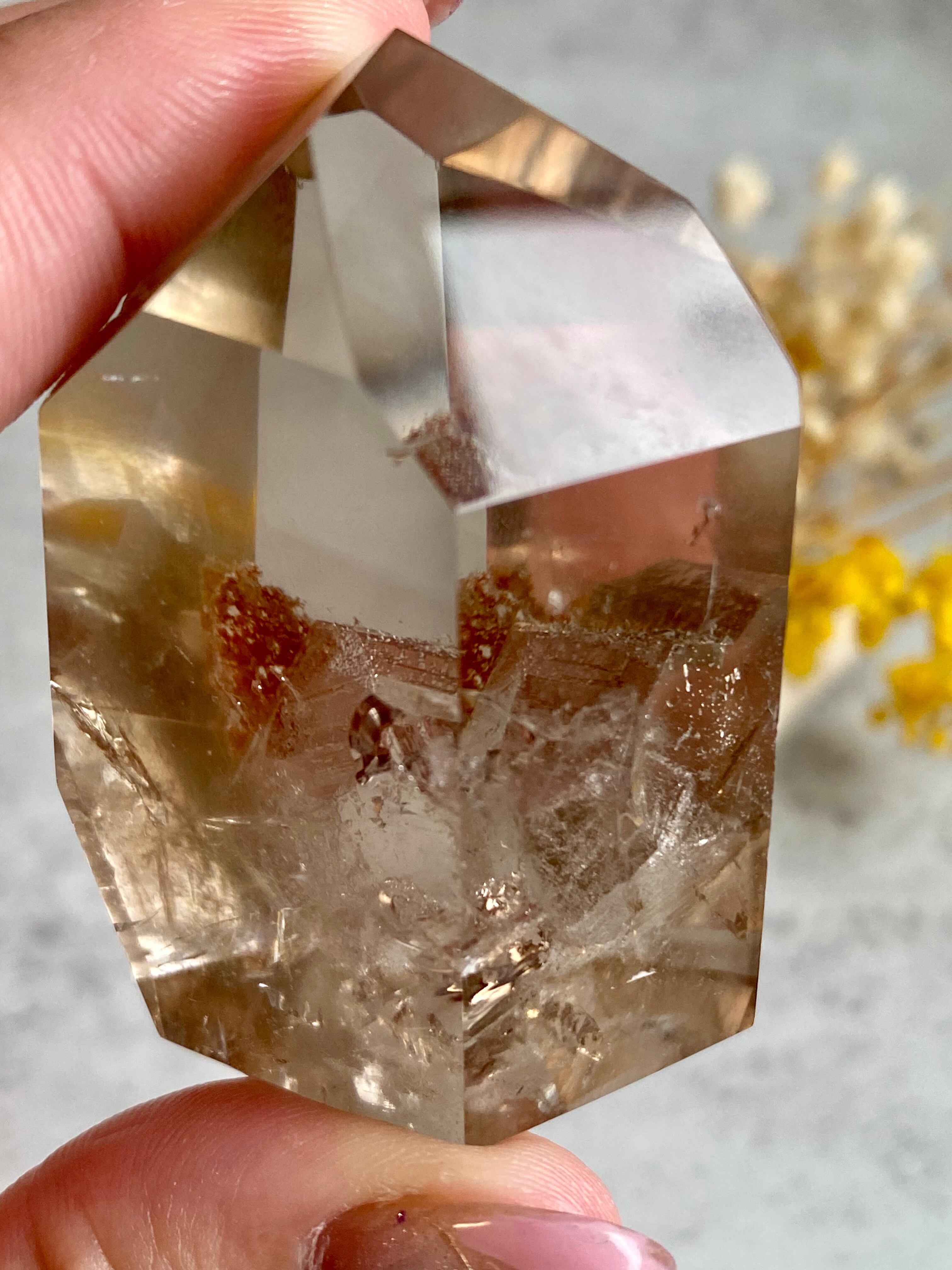 透明度の高いクォーツインクォーツ(貫入水晶)ポイントです。