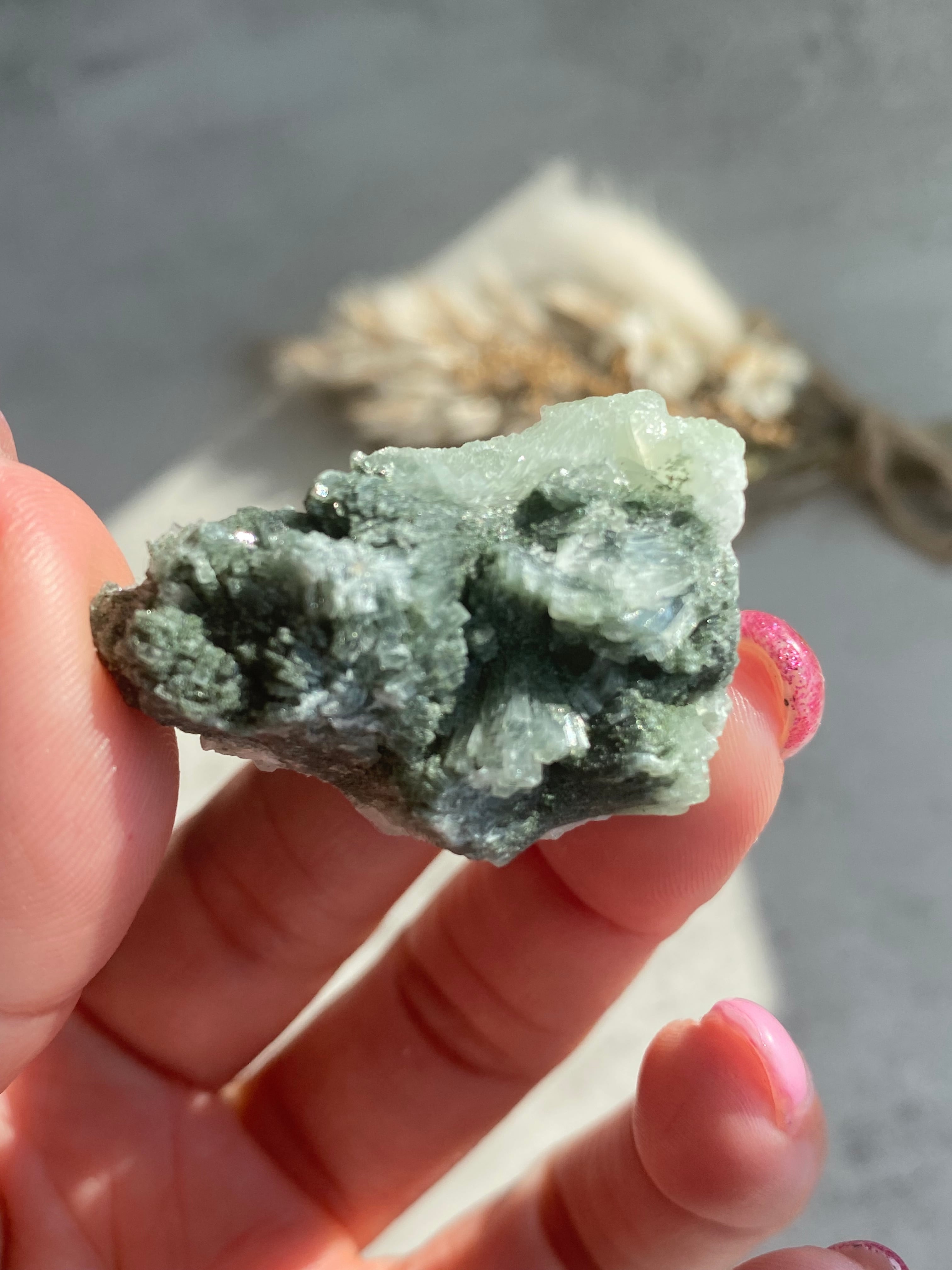 プレナイトは、自分にとって今必要のないものを手放すことを教えてくれる石で、エピドートは、持ち主のエネルギーを増幅させ、自己成長を促す石とされています。