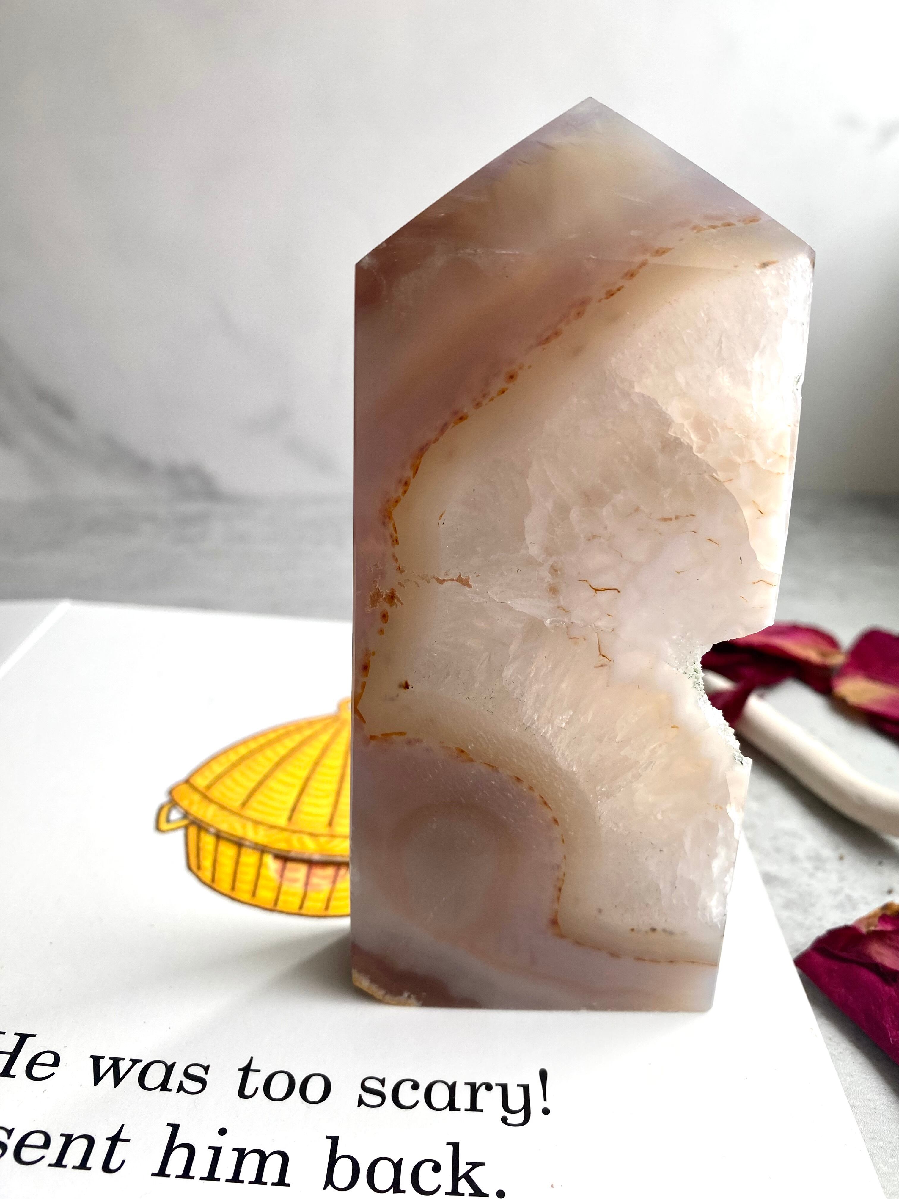 原石の丸みをおびた形状に、内側には美しい晶洞の透かし模様が浮かび上がり、個性豊かな表情を見せてくれます。女性や赤ちゃん、子供を守る守護の力があり、安産や子供の成長を願うお守りとして人気があります。