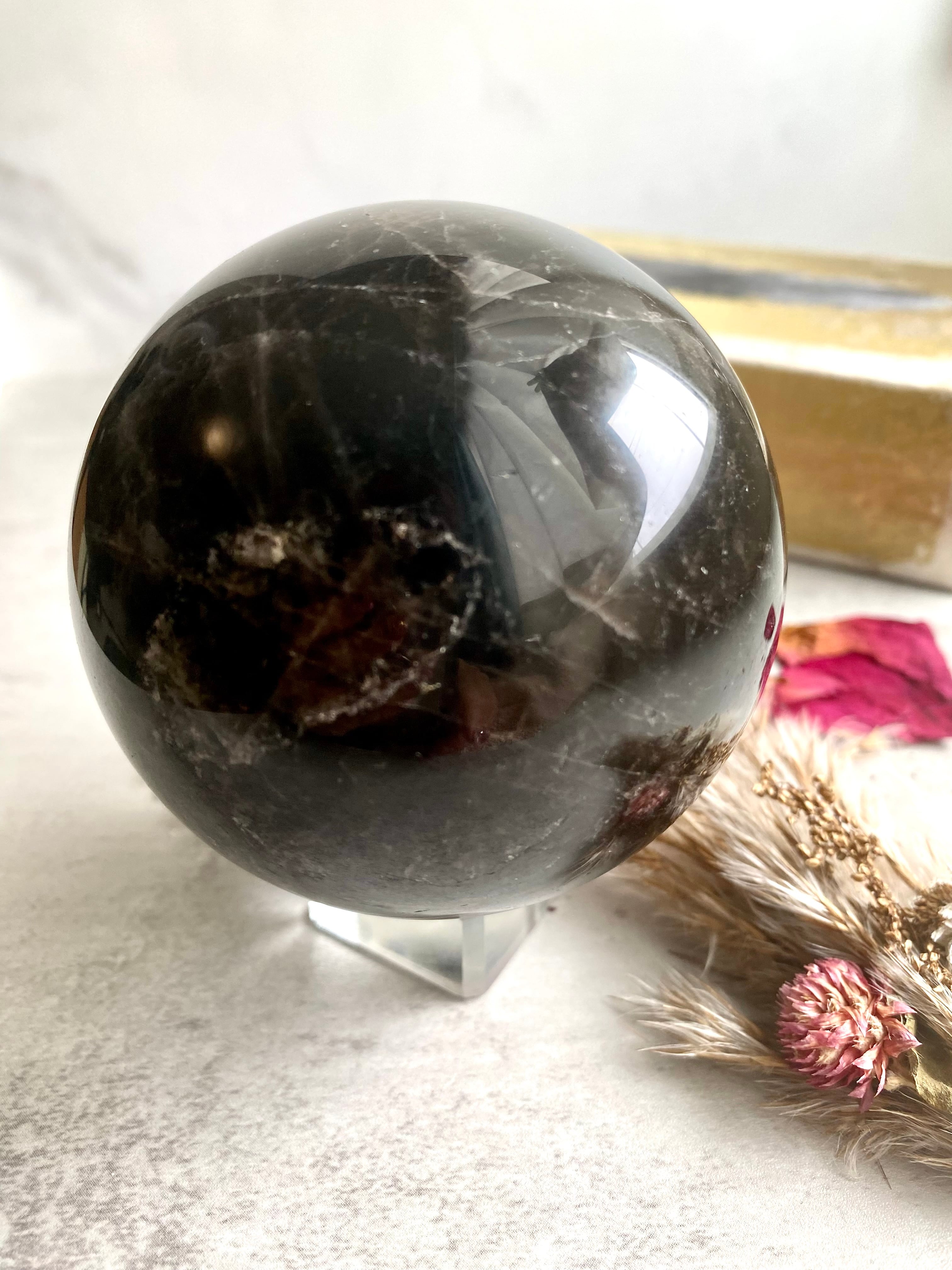 所々にレインボーもあり大きく存在感のあるモリオンのスフィアを入荷いたしました。