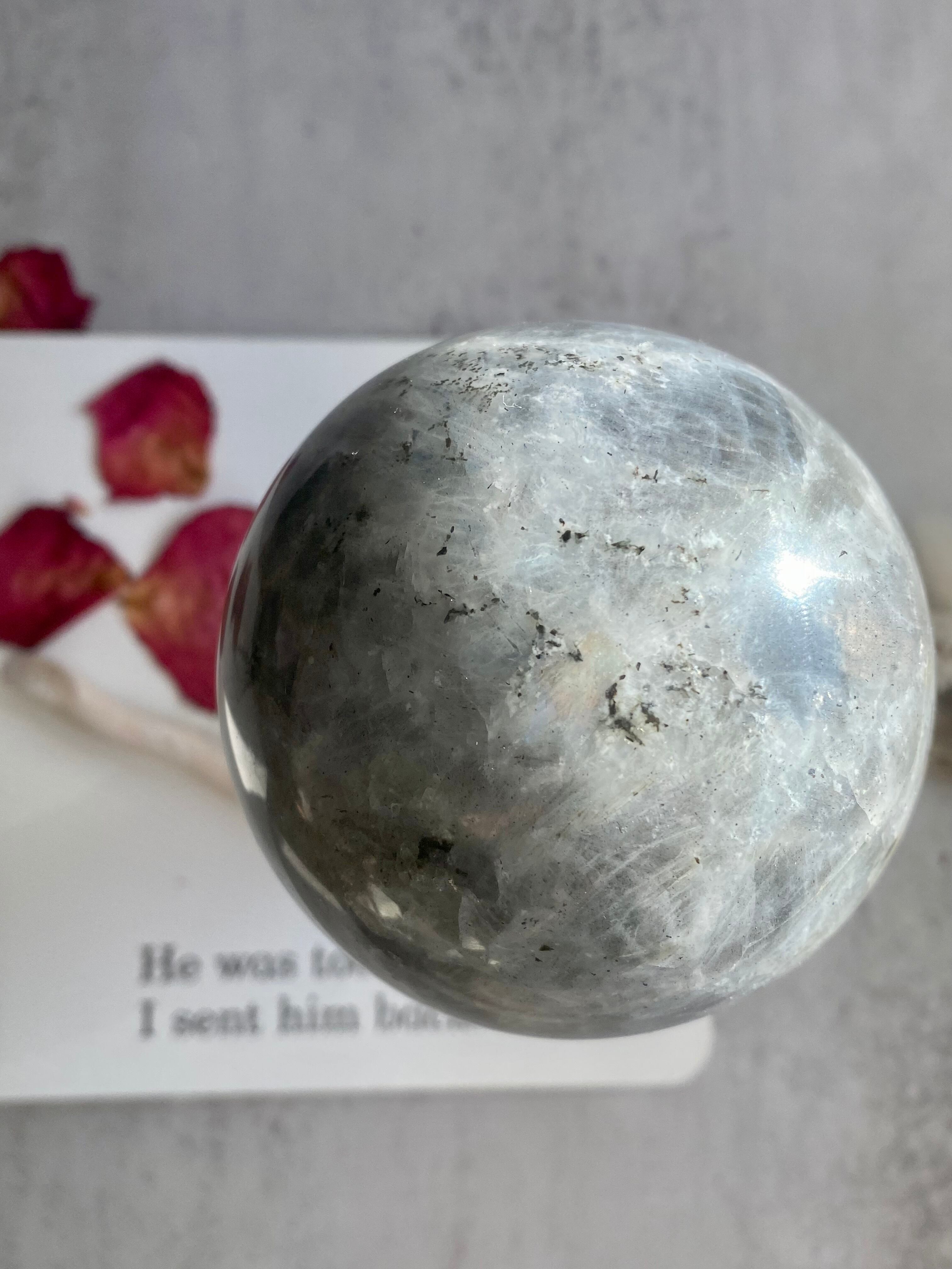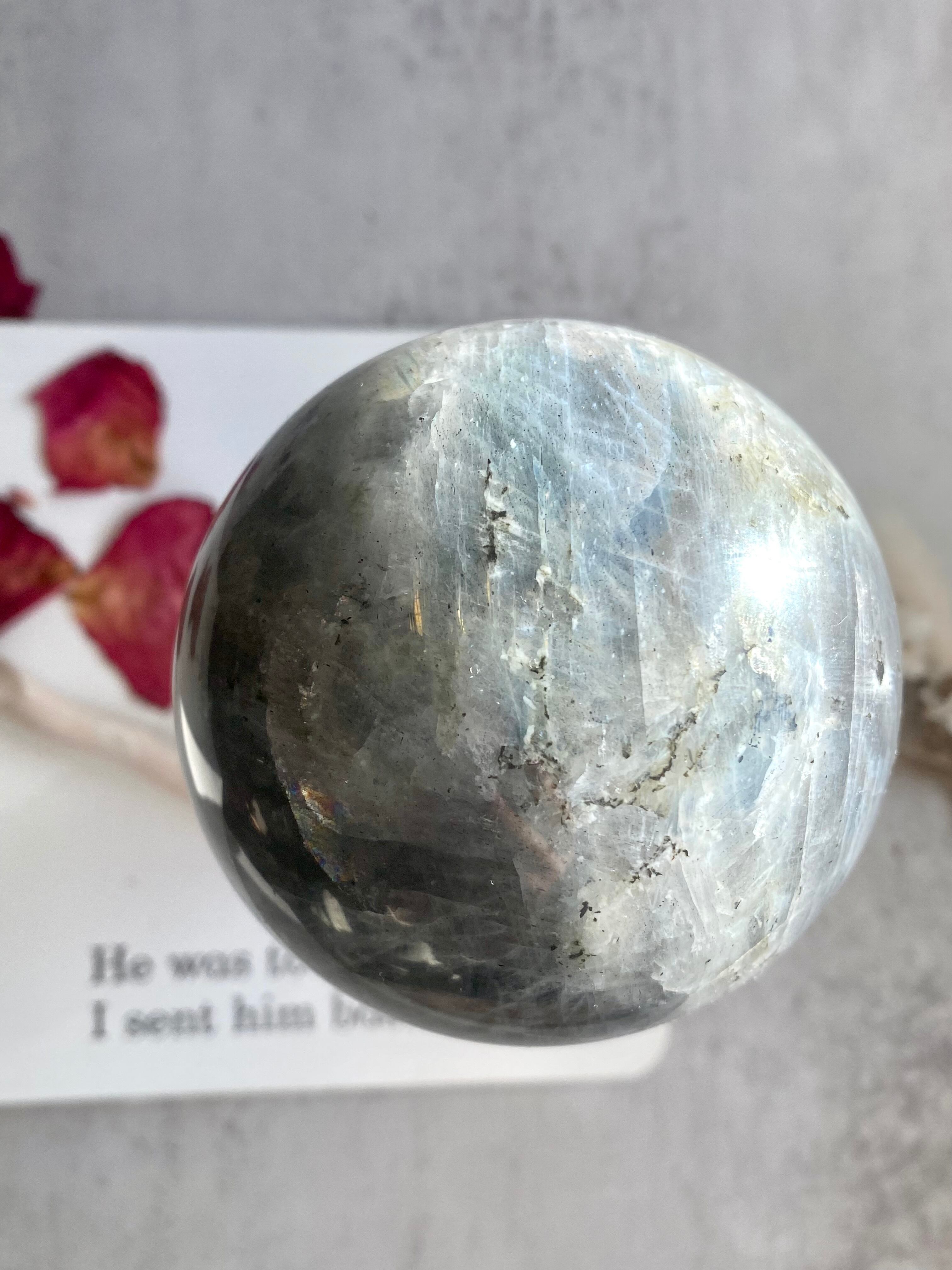 オレンジ、パープル、シルバーのシラーが綺麗♡ラブラドライト スフィア