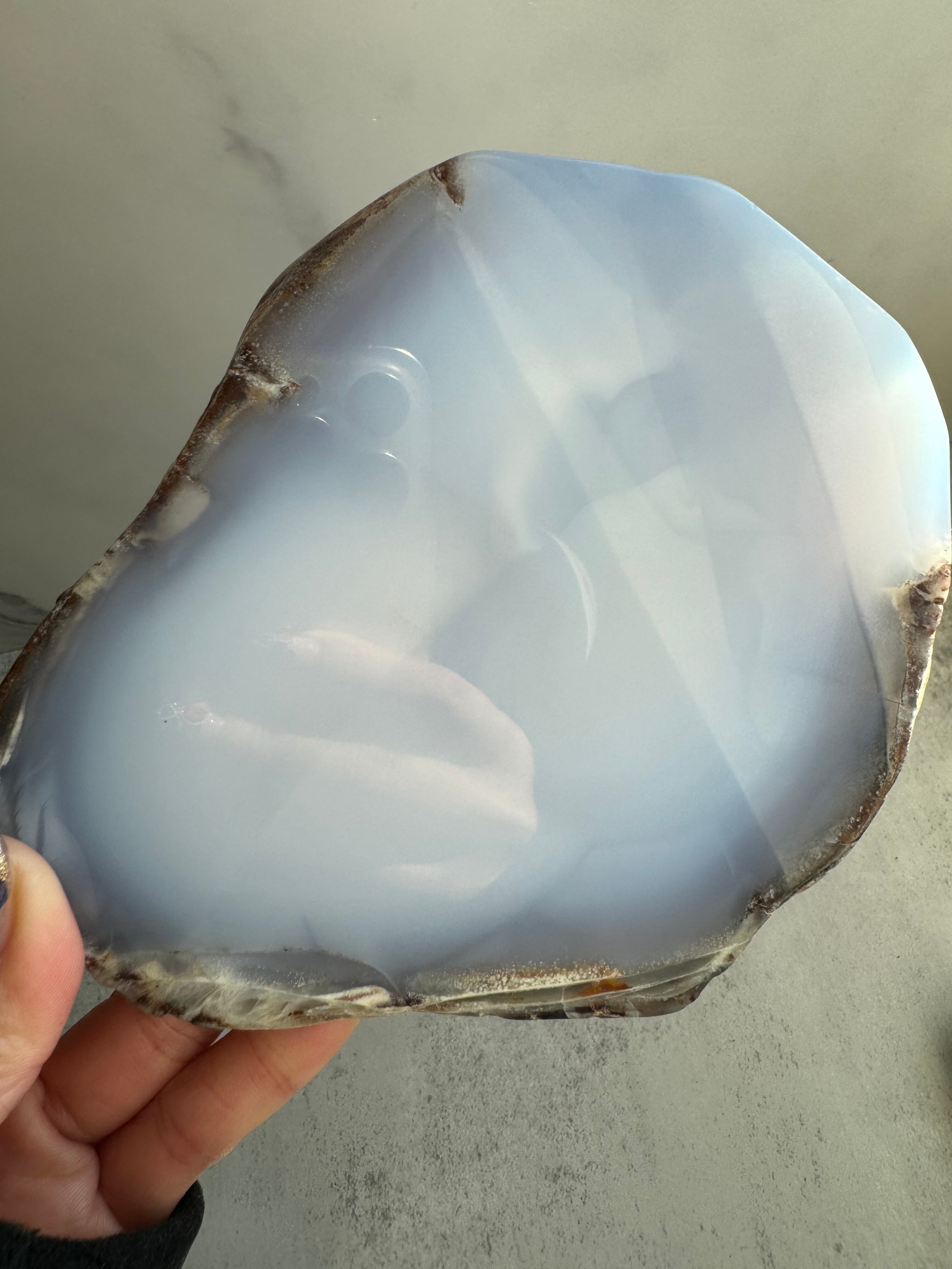 春の空のように淡く優しいブルーのグラデーションが美しいブルーカルセドニー。