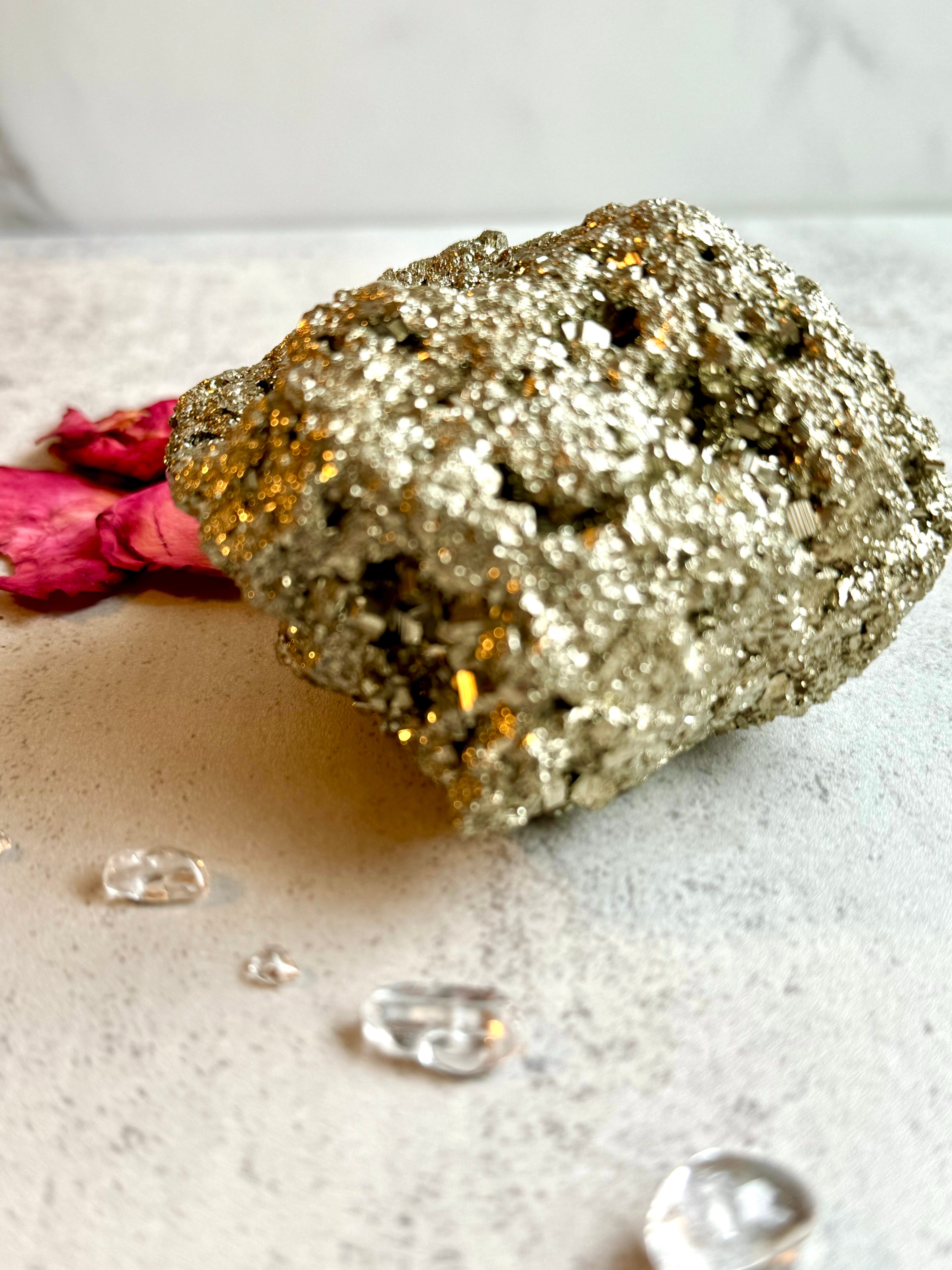 パイライト特有の強い邪気払いでネガティブエネルギーからも守ってもらえそうなエネルギーを感じます。