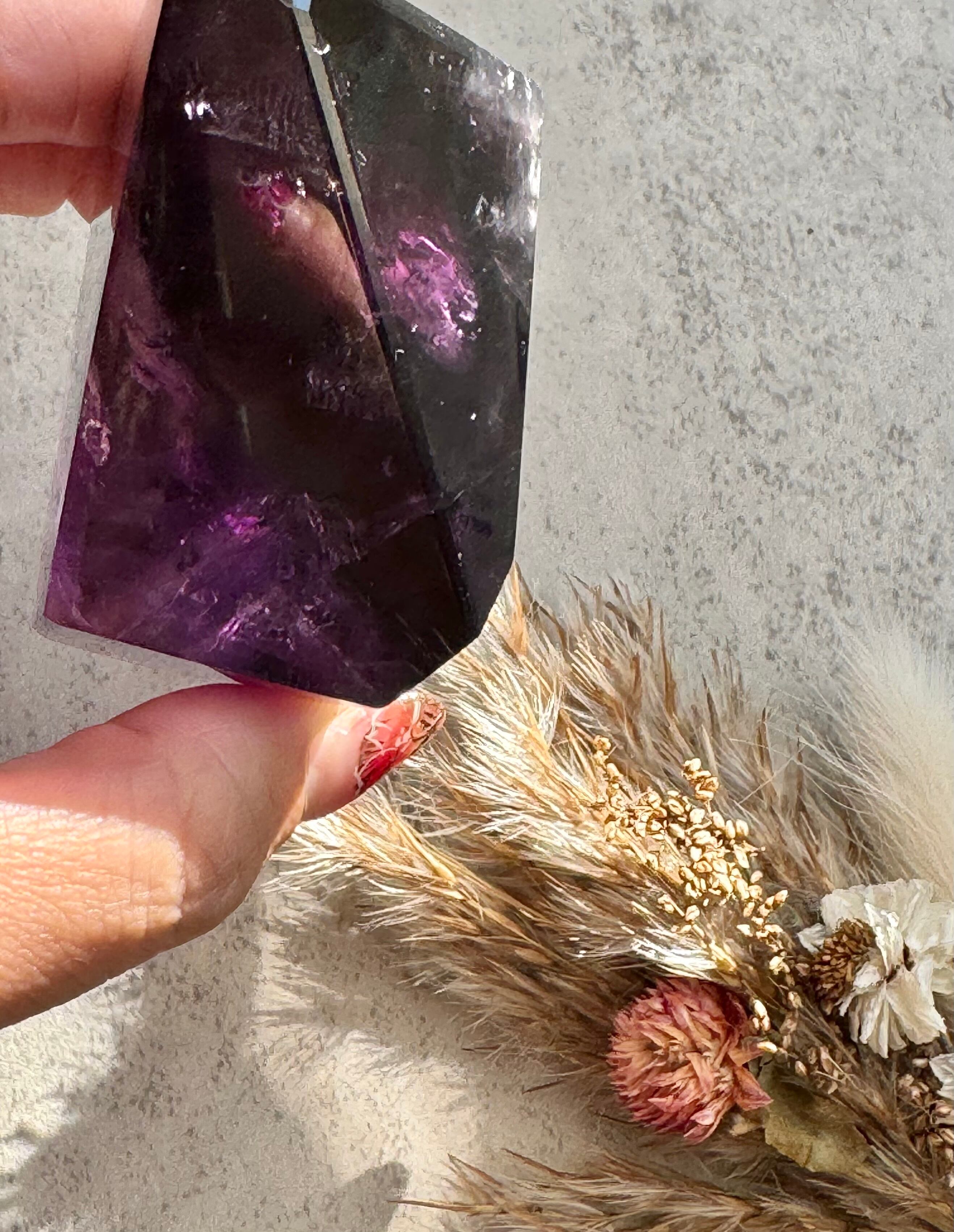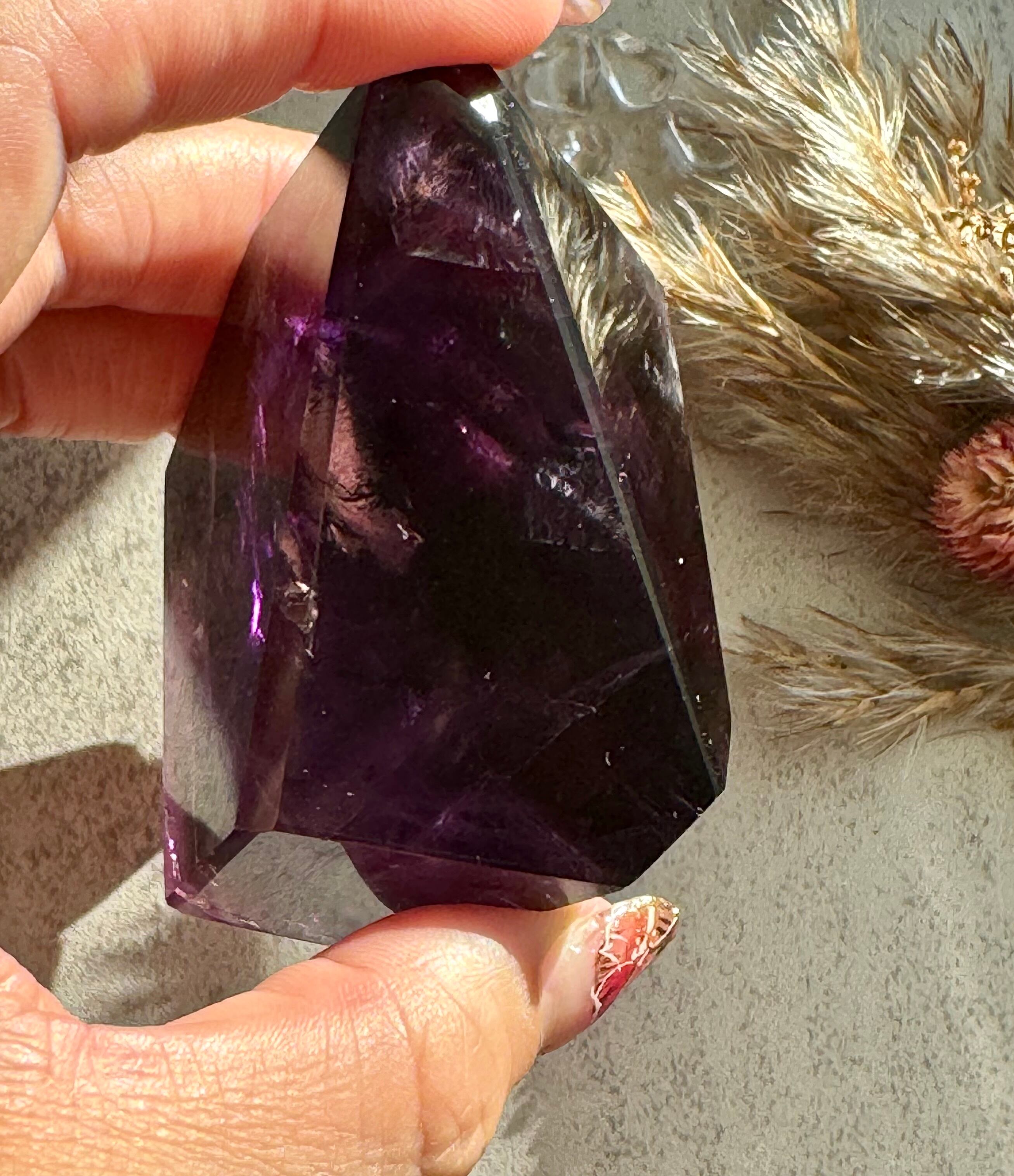 アメジストのフリーフォームです。数か所のレインボーが優しく光ります。