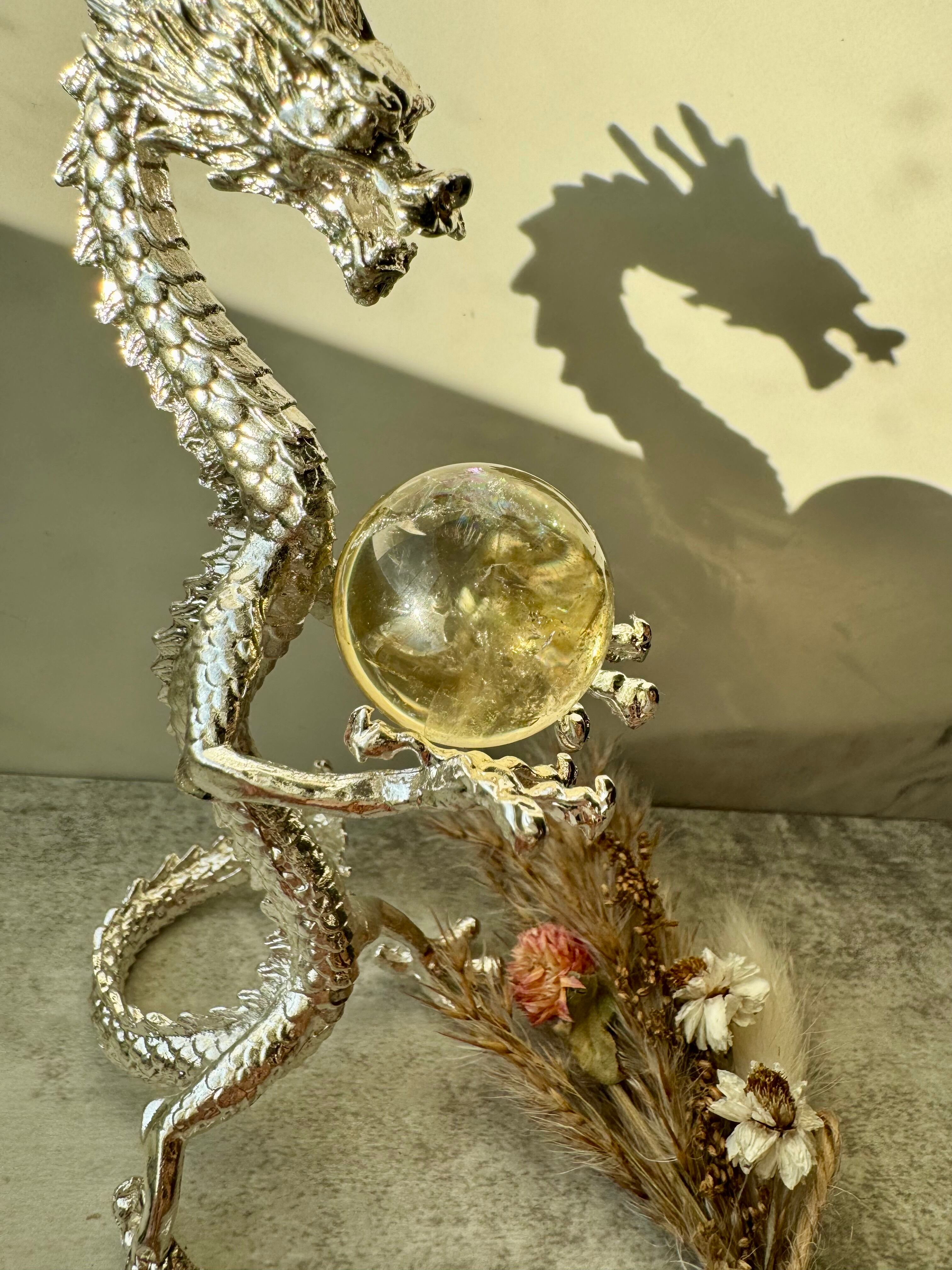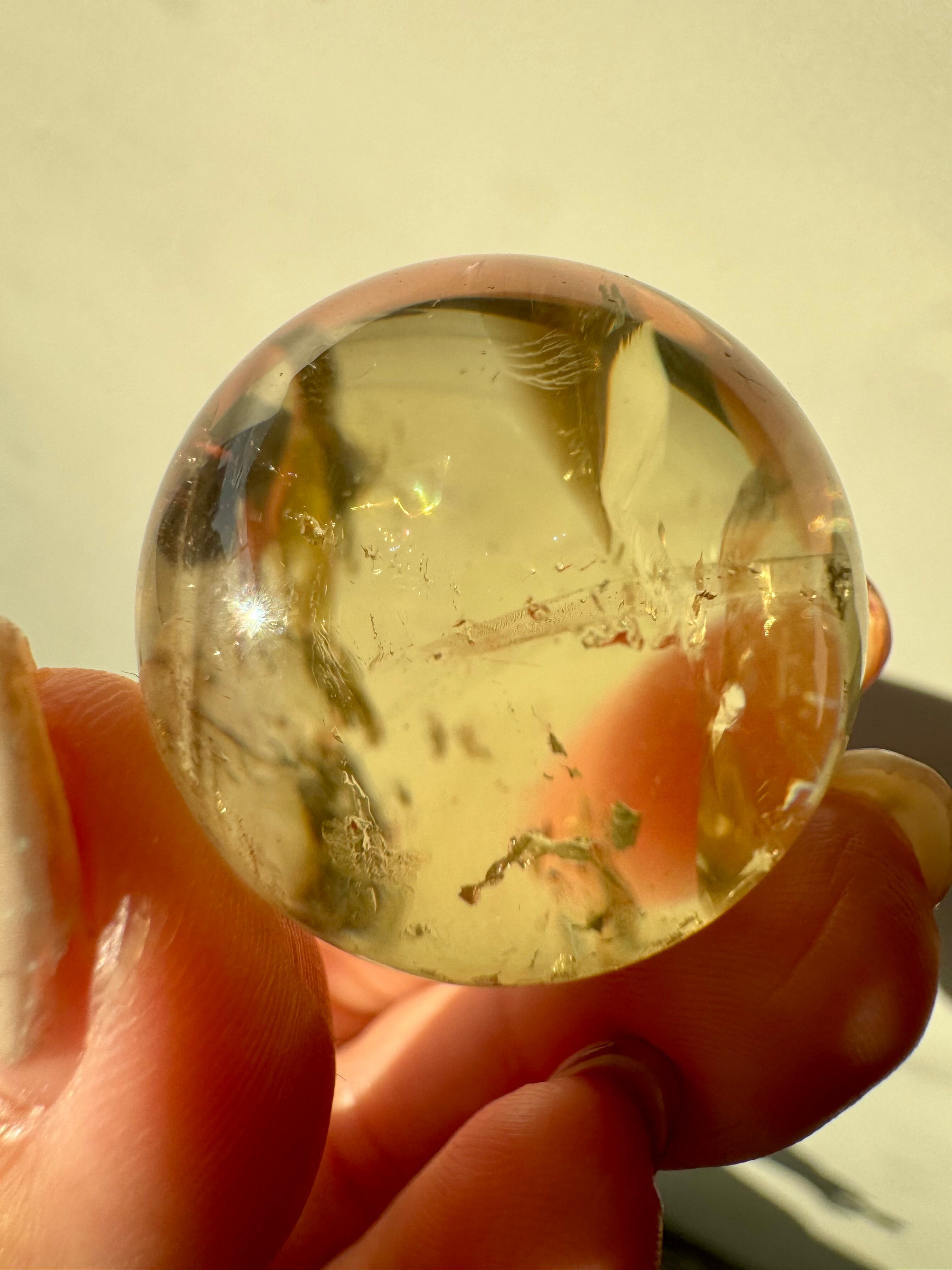 透明感の高いシトリンのスフィアです。優しく光る虹もあります。