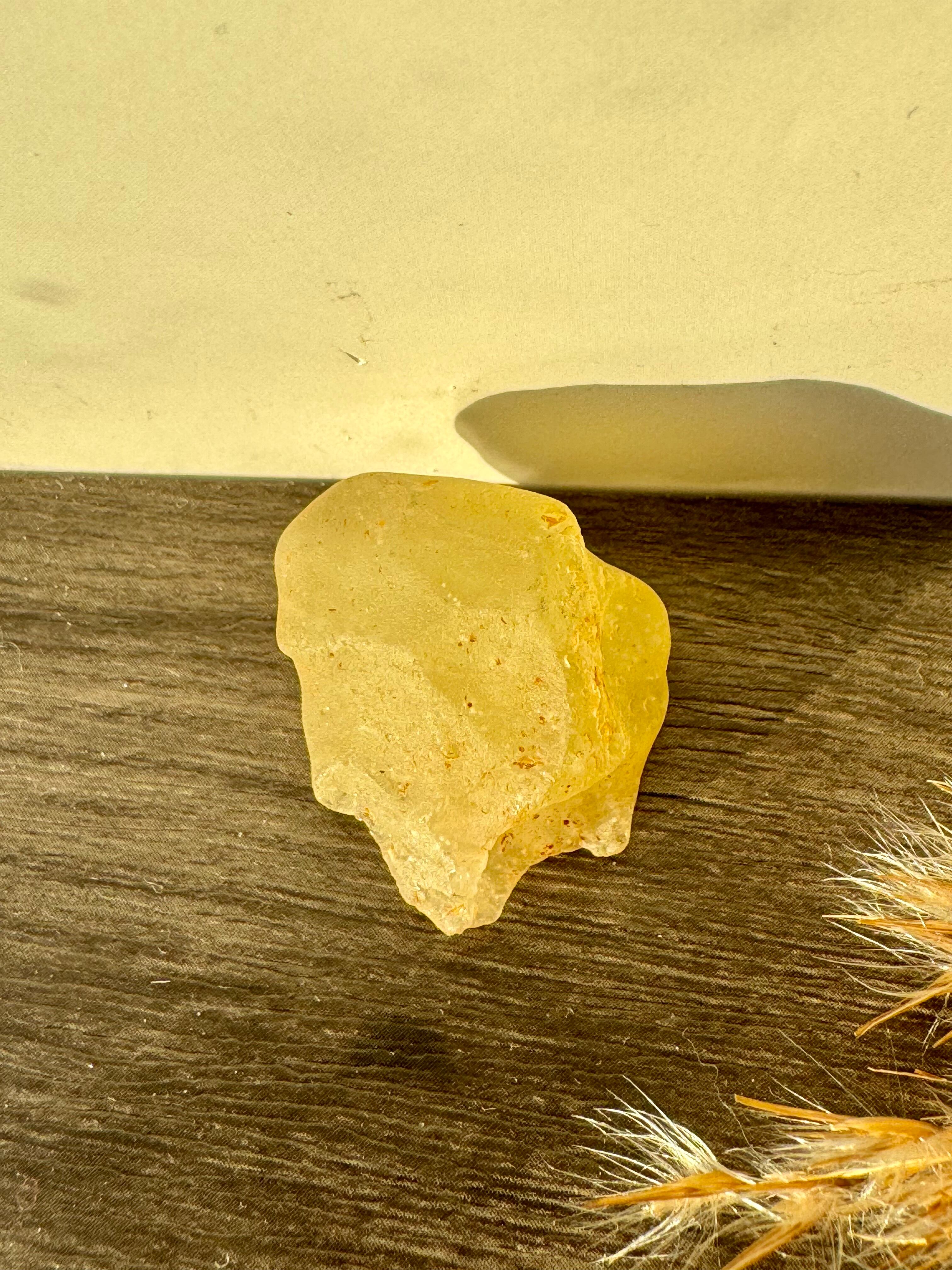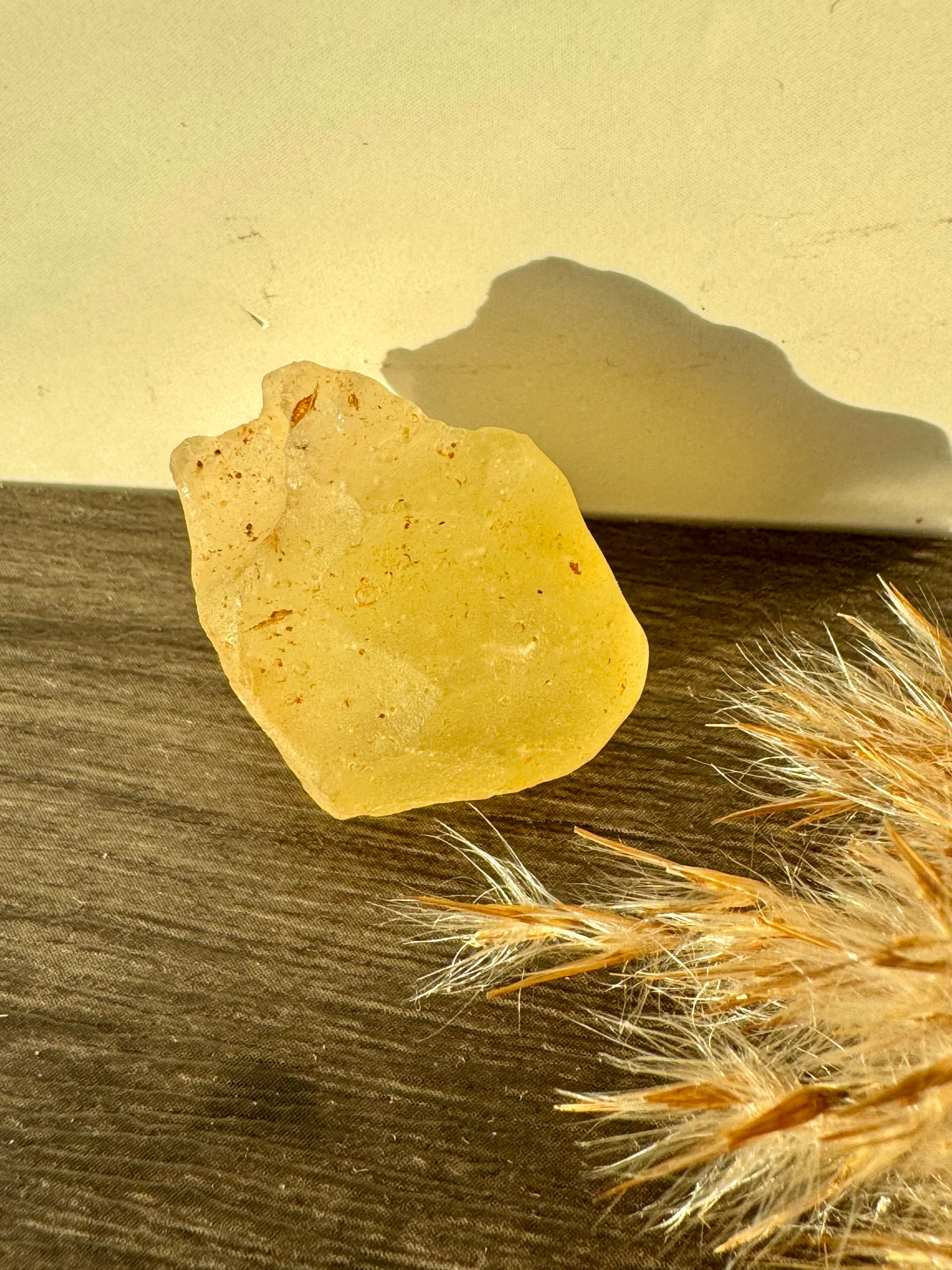 2600万年前のエジプトとのリビア国境近くでの大規模な隕石の衝撃によって形成されたインパクトガラスです。別名、天然ガラスとも言われ、約98%の最も純粋なガラスだそうです。