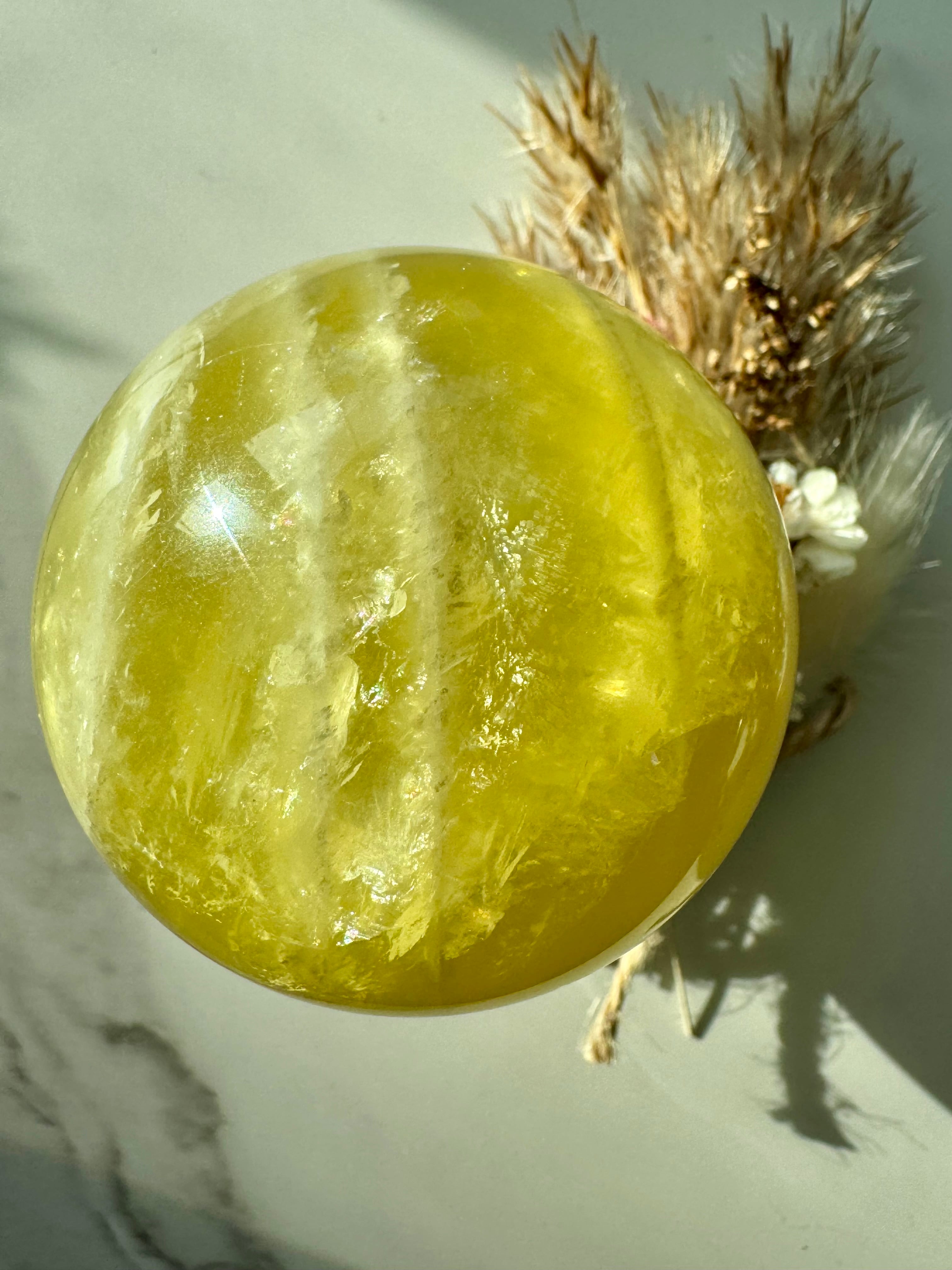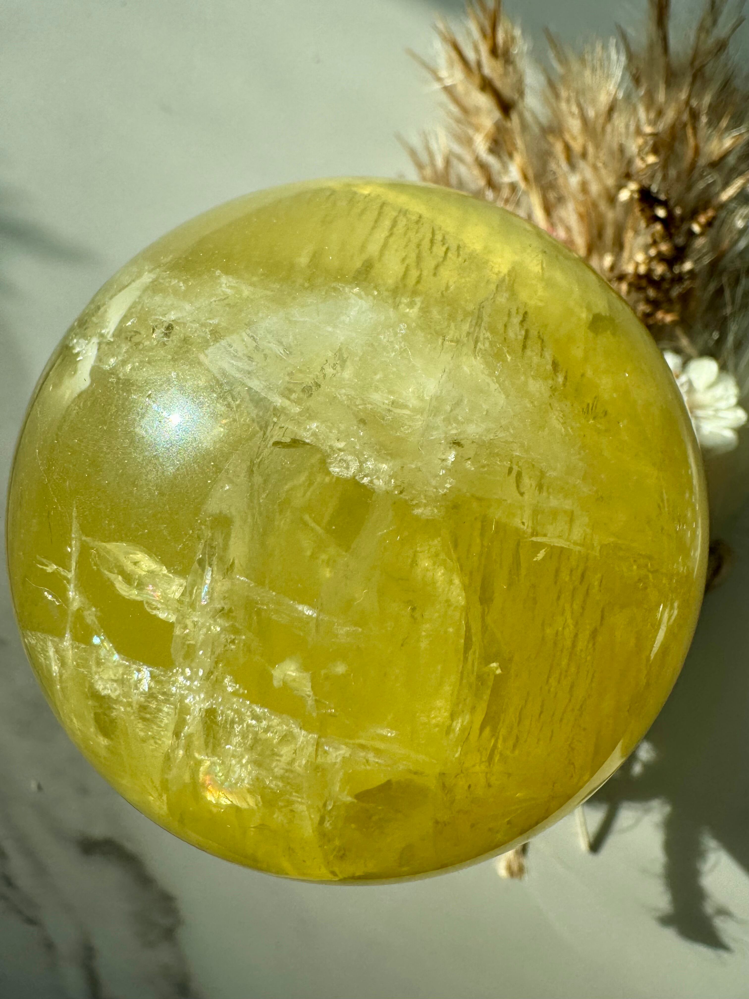 イエローが濃いシトリンのスフィアです。優しく光る虹も何か所かにあります。