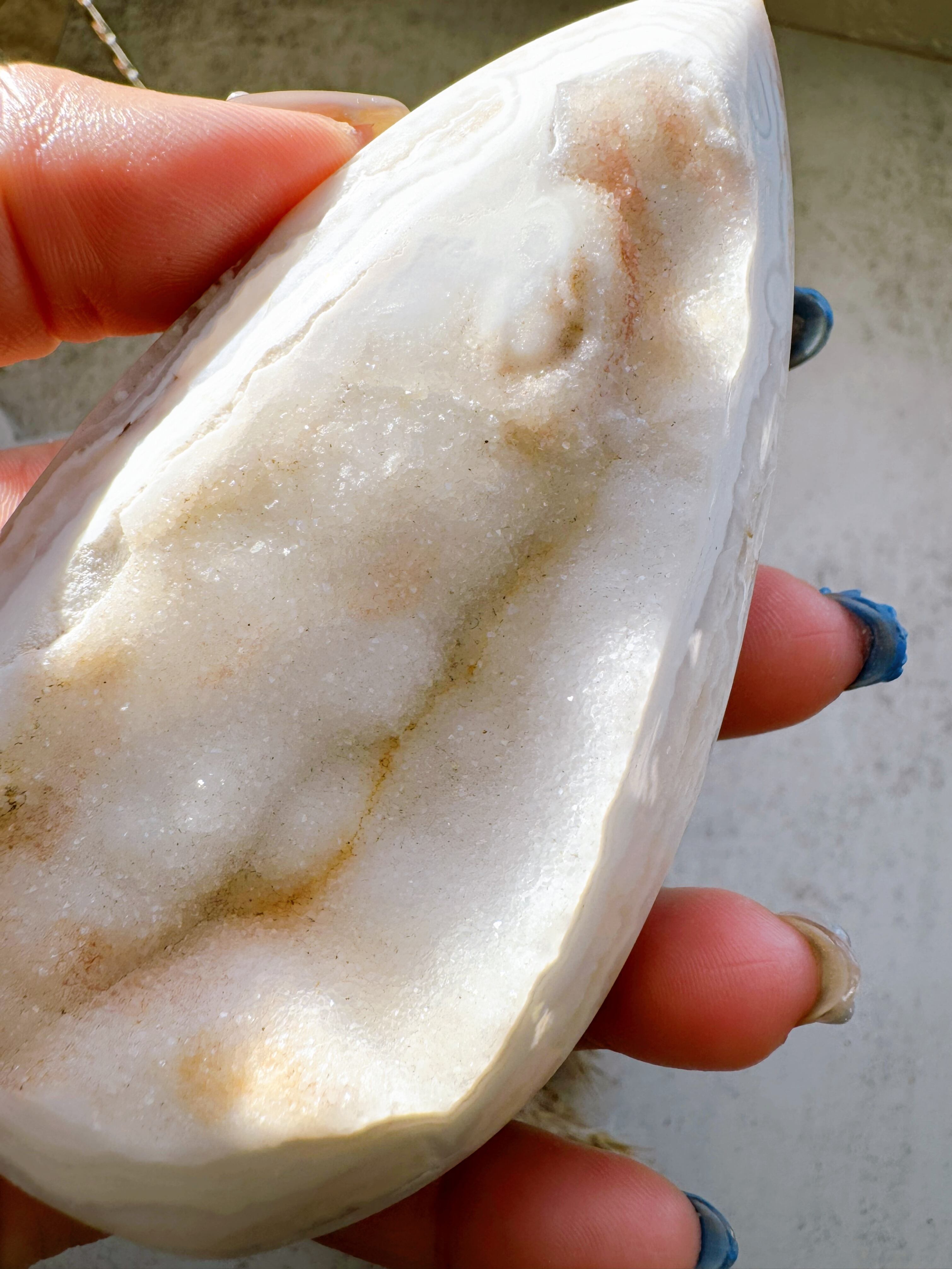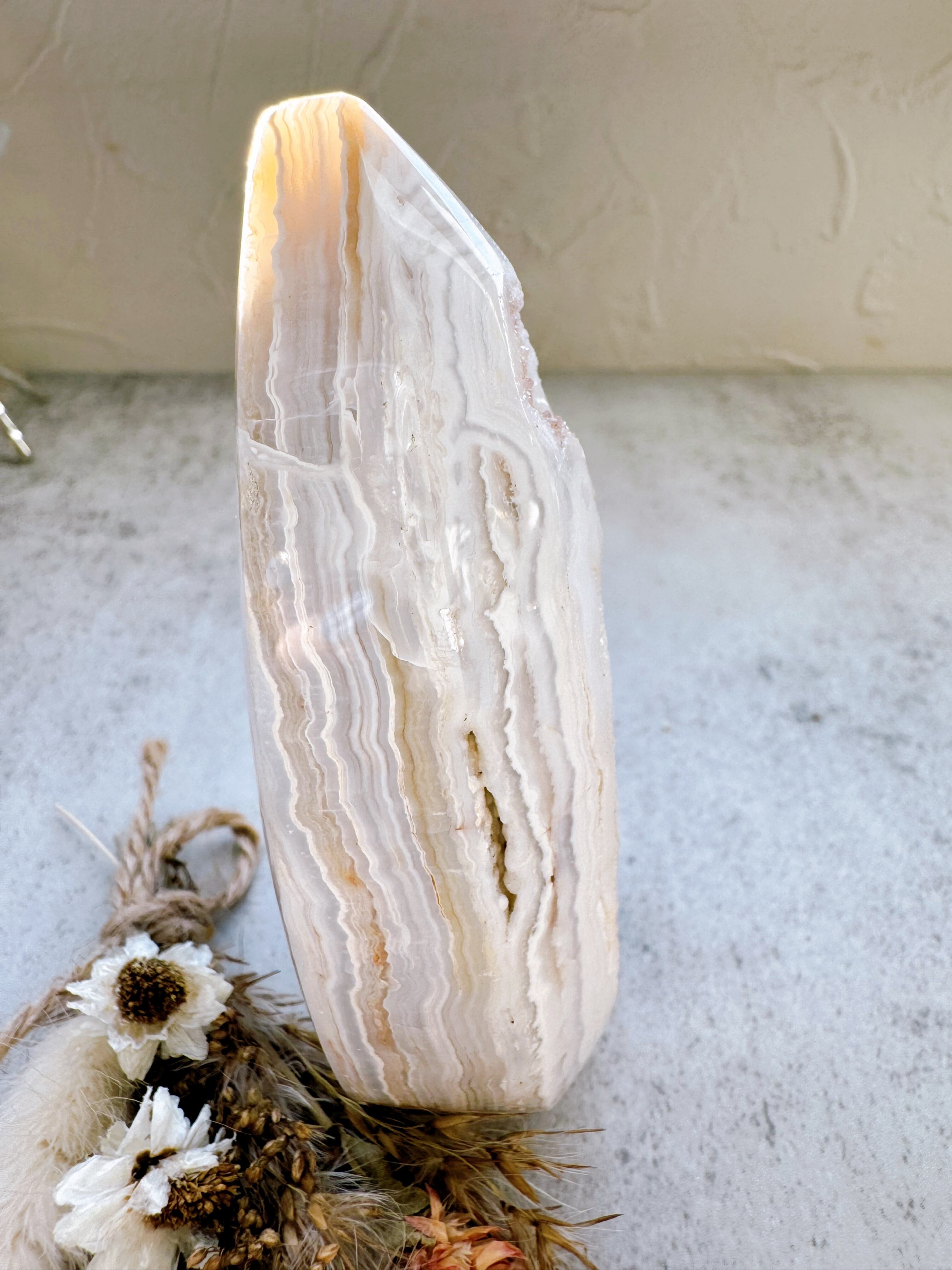 ドゥルージーが綺麗なメキシカンクレイジーレースアゲートのフリーフォームです。幾重にも重なる縞模様が美しいアート作品のようです。それぞれが唯一無二なレース模様。