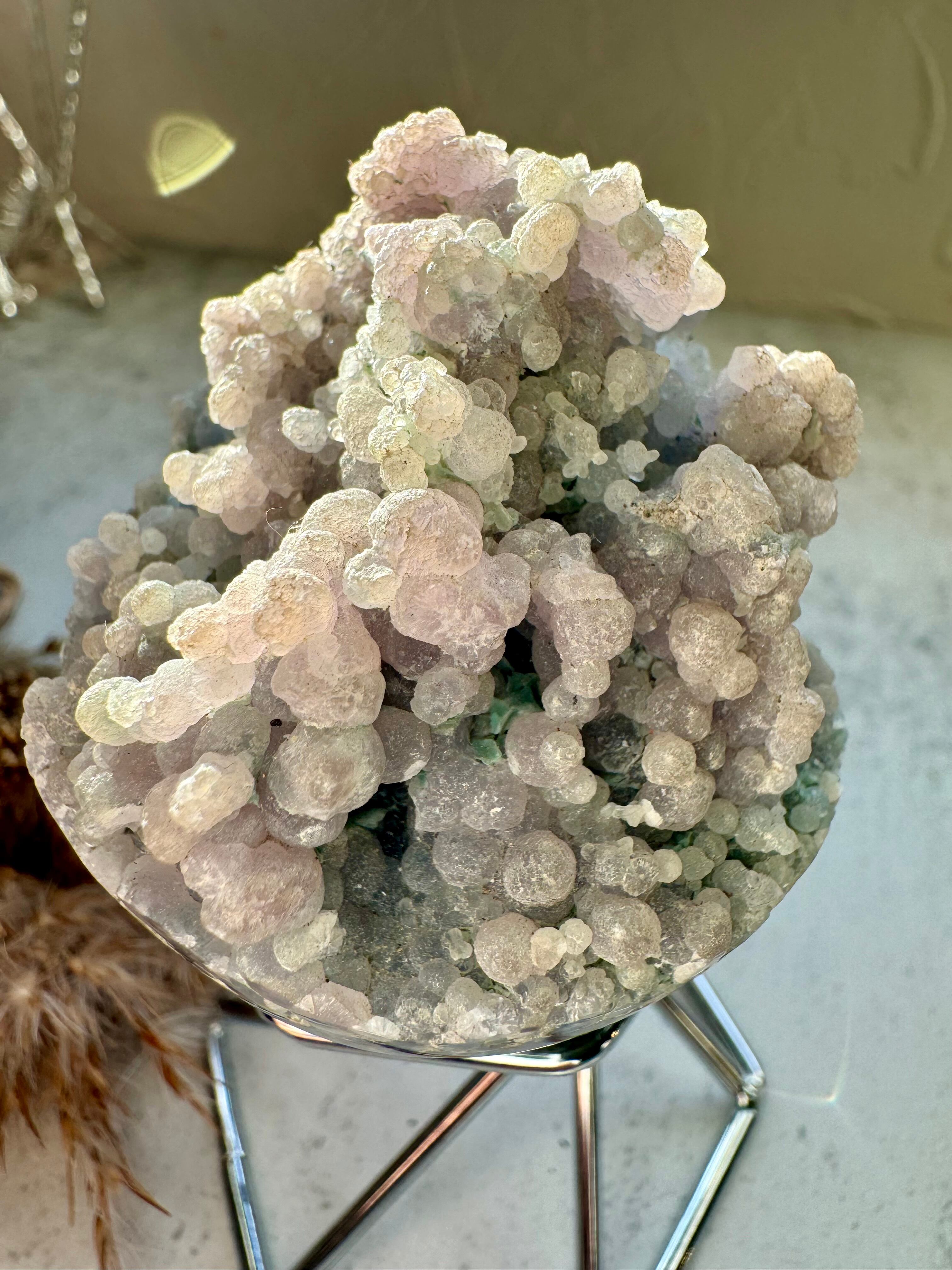 ぽこぽこ重なる鉱物が葡萄のようで可愛らしいスフィアです。