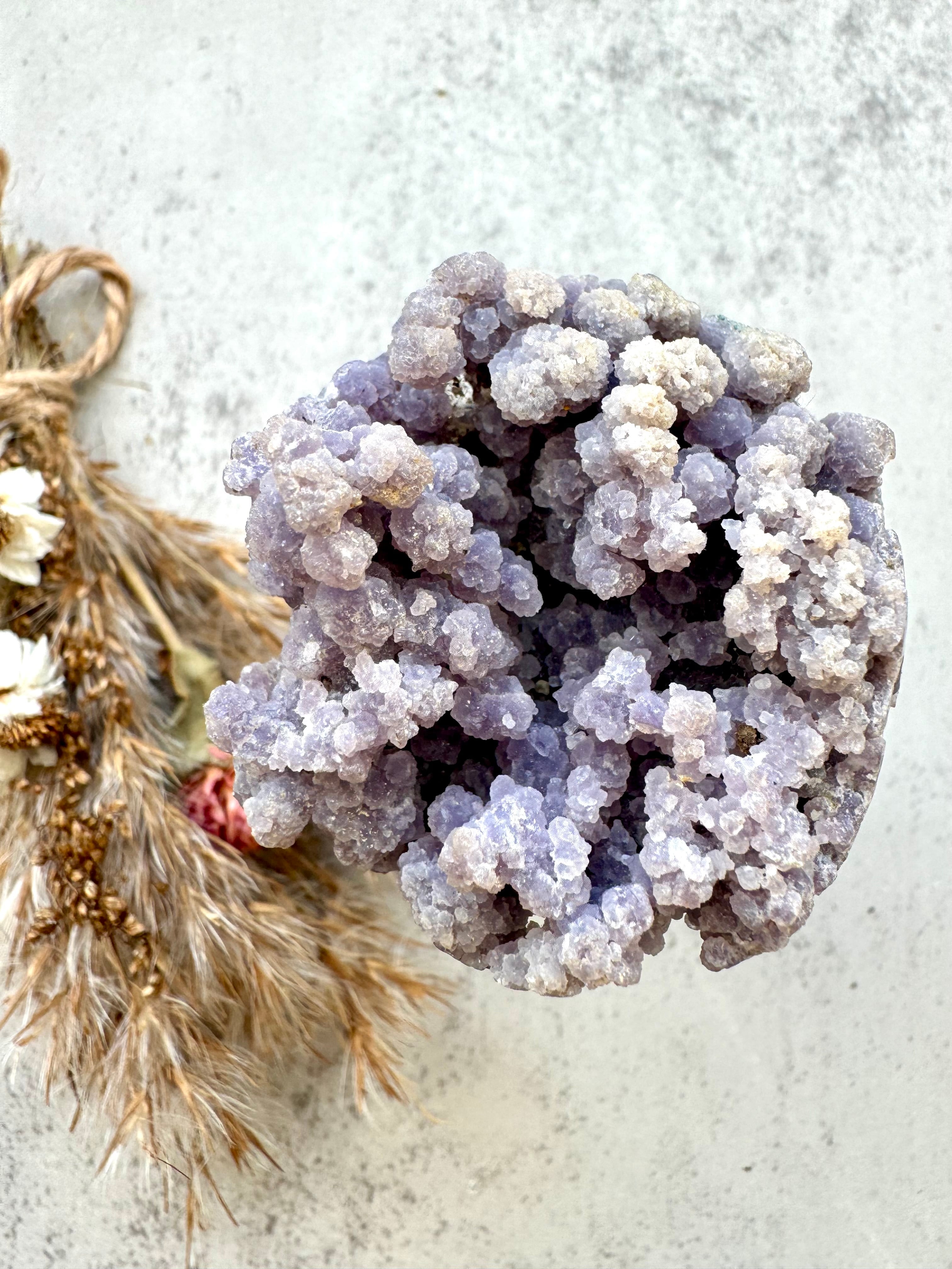 保護作用もあるため、持ち主の安全を守り、自己肯定感と自信を促進します。グレープアゲートカルセドニーは、夢、直感、豊かさ、そして富、熟成を意味します。女性性を高めます。