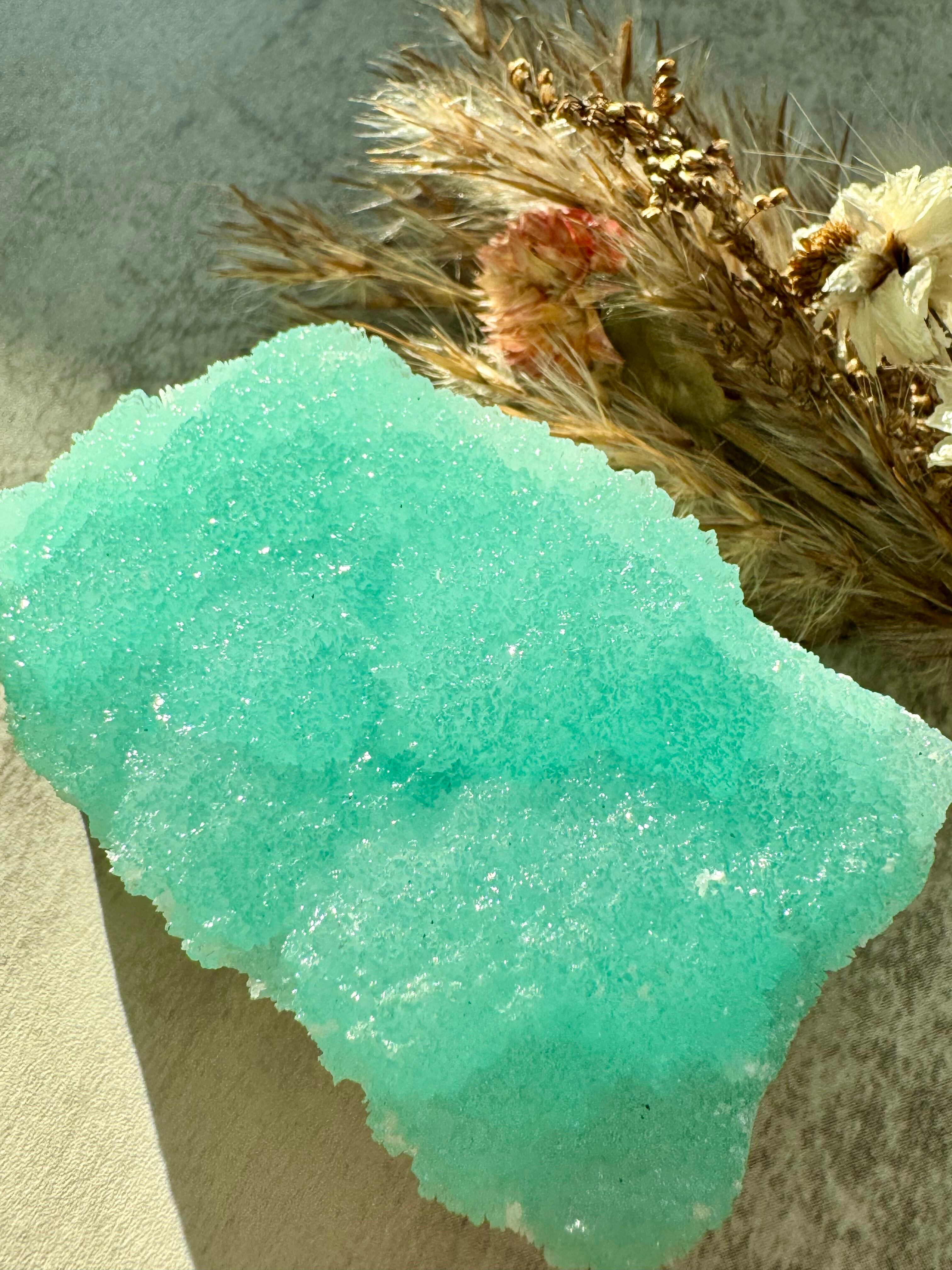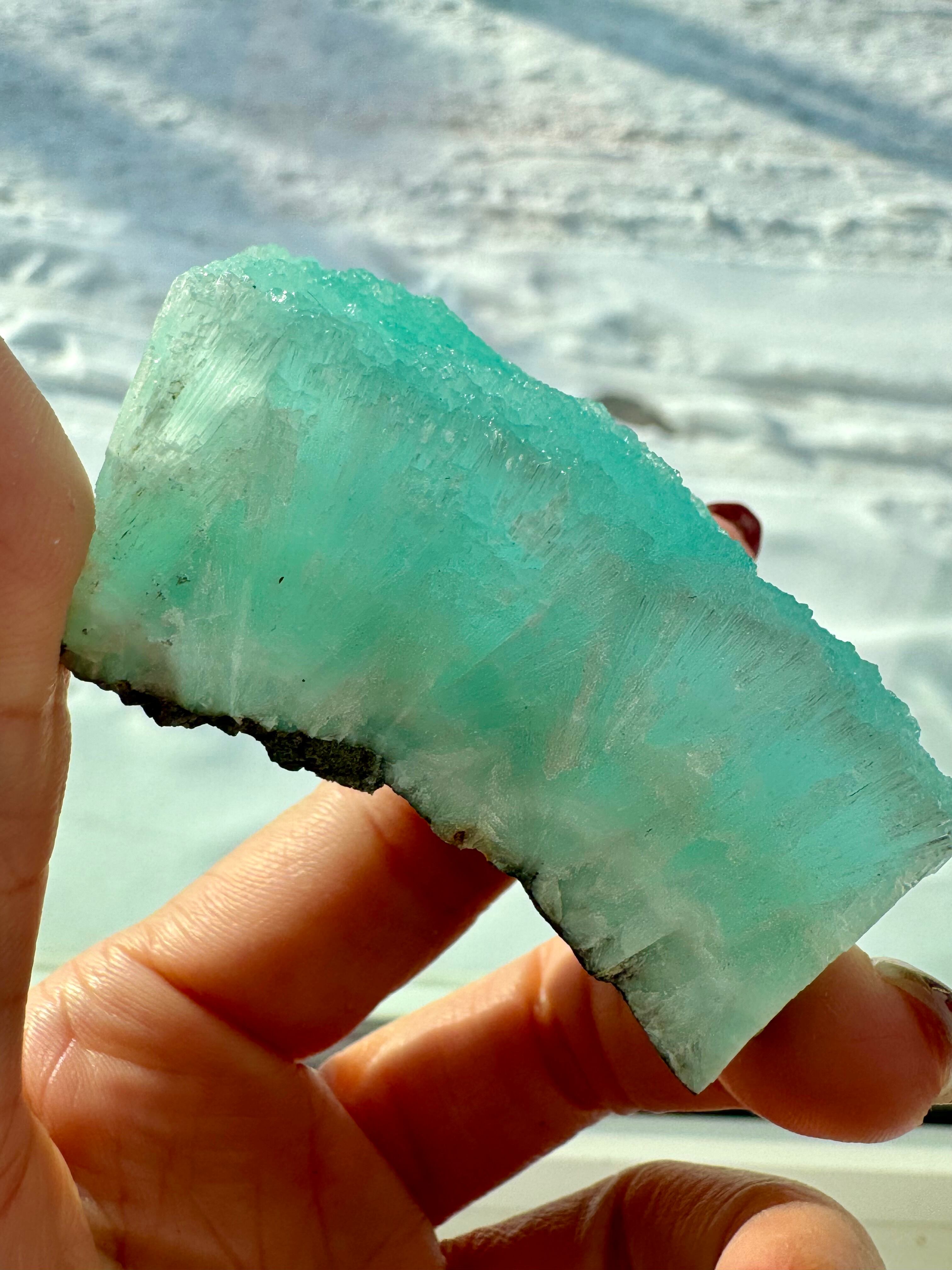 流氷に綺麗な青色を流し込んだようなブルーアラゴナイトです。
