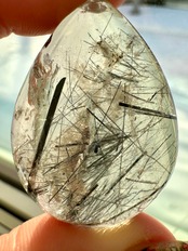 透明度の高い、虹もあるブラックトルマリン インクォーツのペンダントトップです。