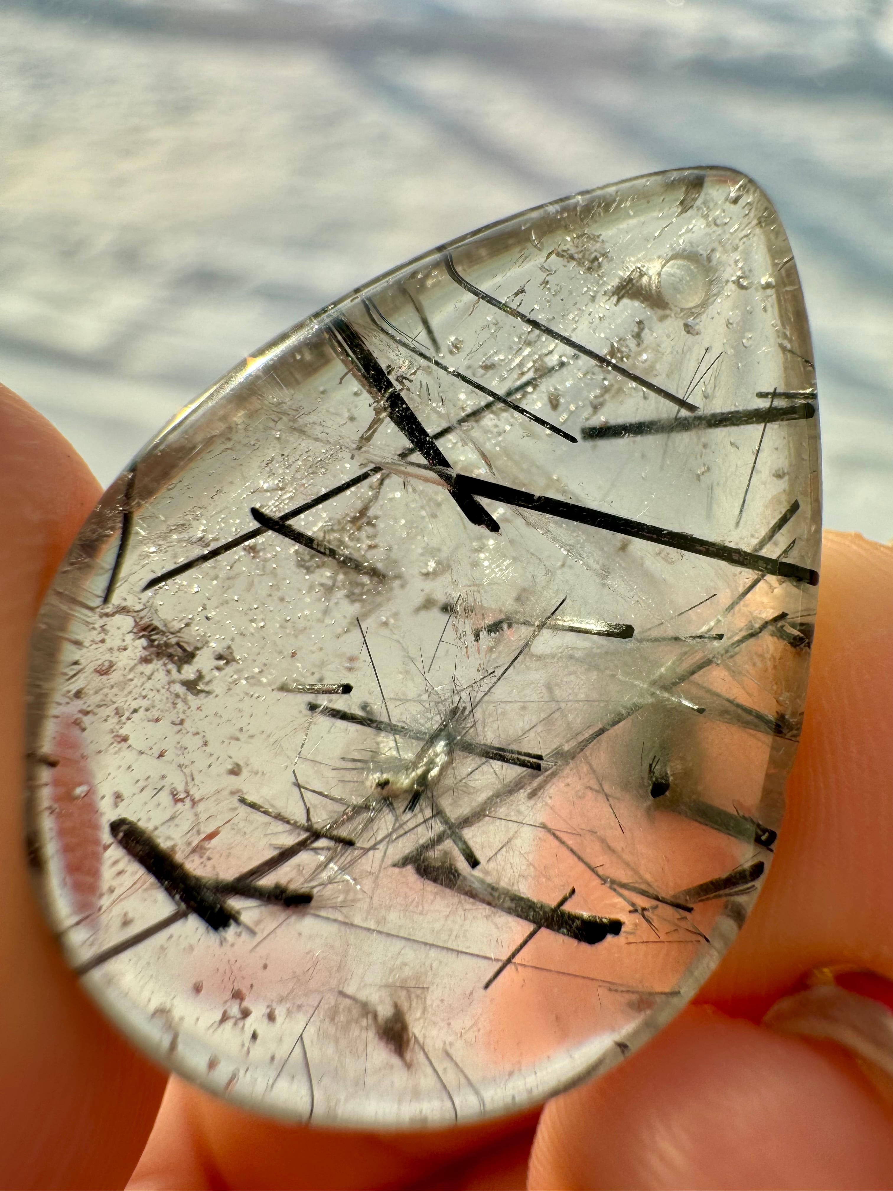 透明度の高い、ブラックトルマリン インクォーツのペンダントトップです。小さいながら虹も見られます。
