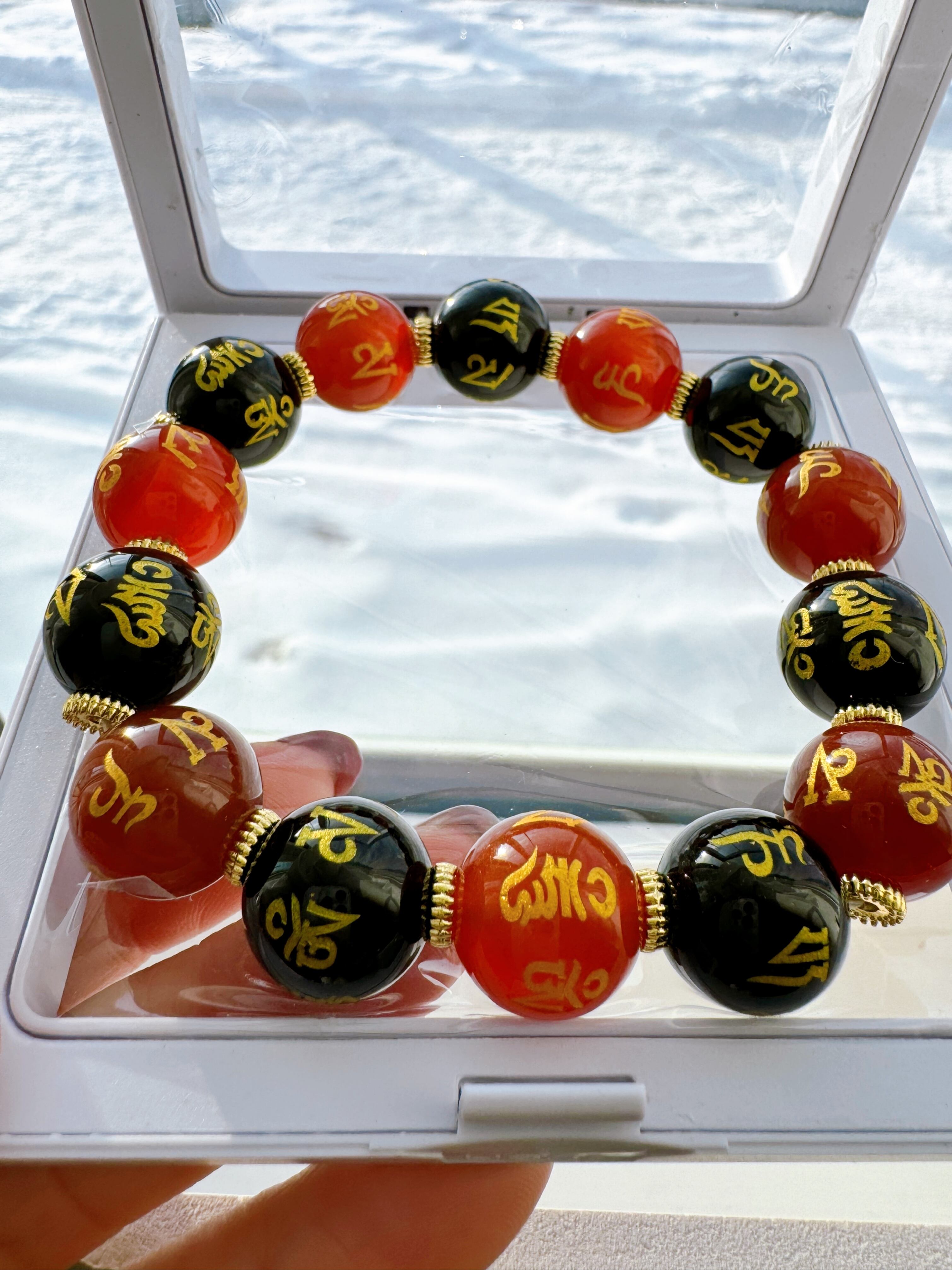 綺麗なブルーに黒のドラゴン瑪瑙のブレスレットです。