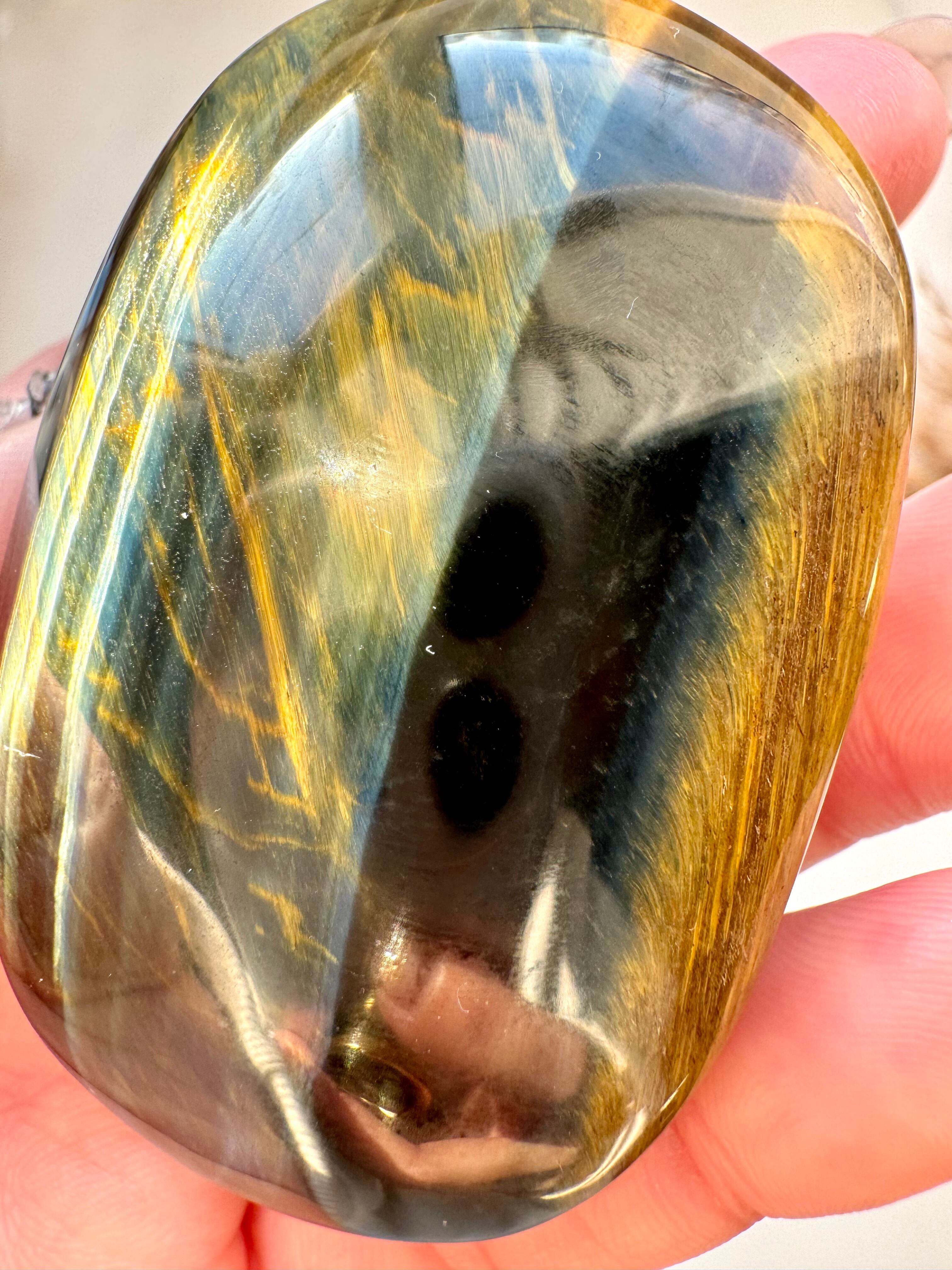 アクチノライトが美しいパームストーンです。満月の光で充電しされたパームストーンはとても綺麗なシラーをみせてくれます。