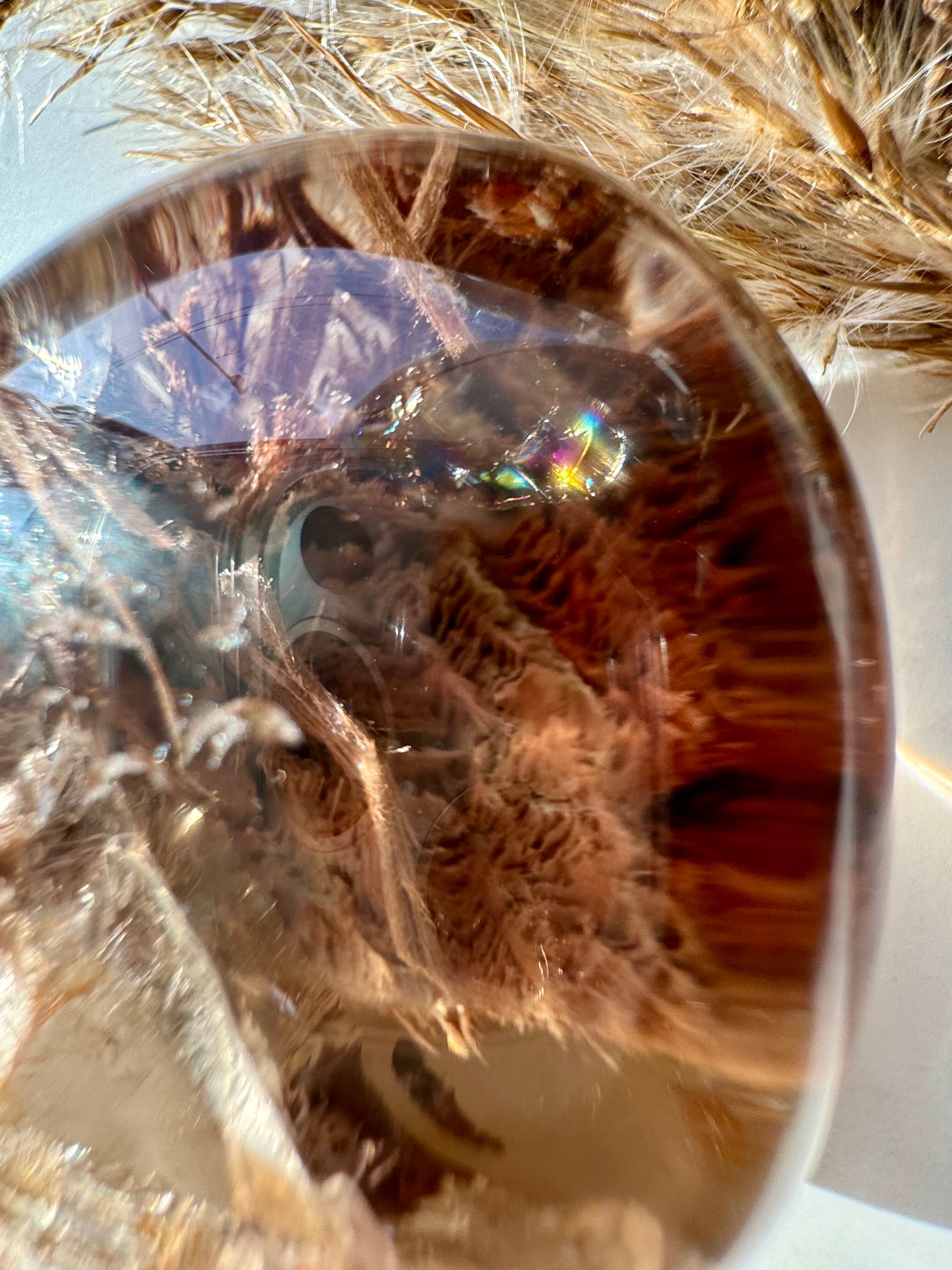 とても透明な水晶の中にオレンジのガーデンが幻想的なレンズタイプの子です。