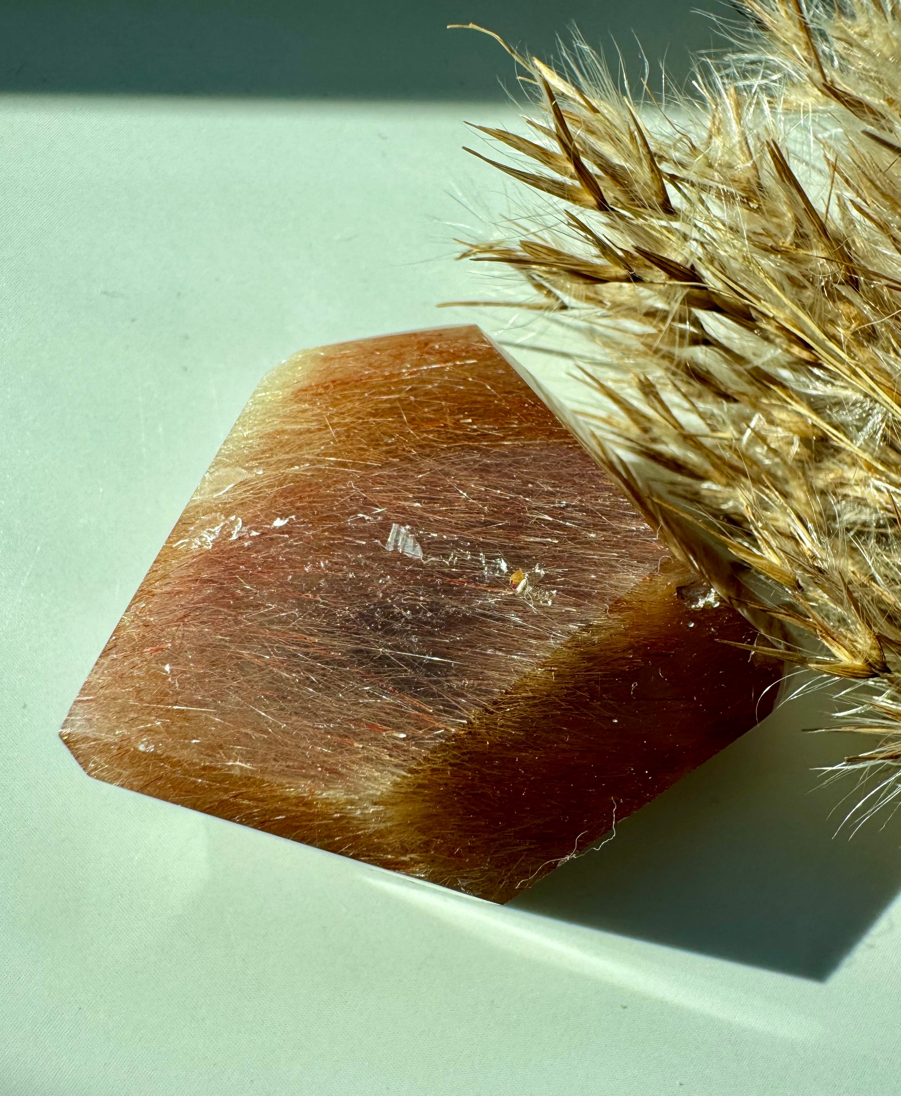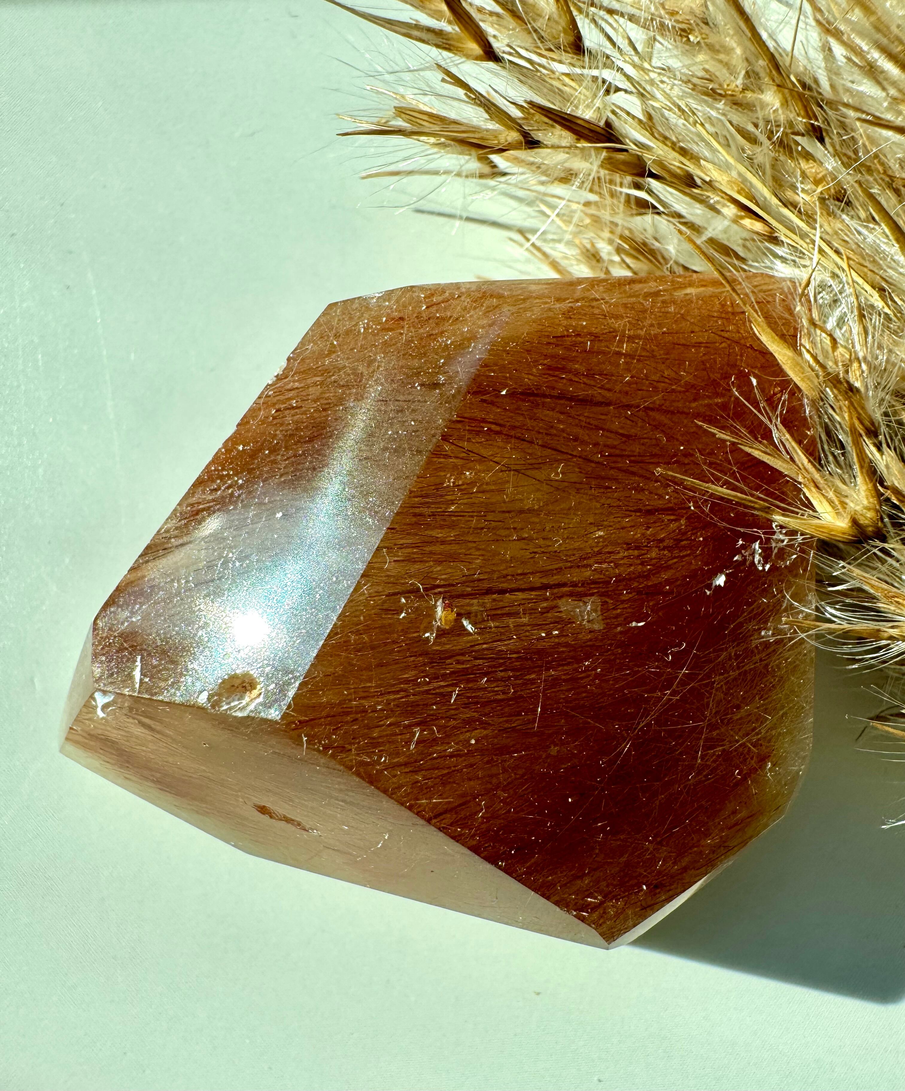 水晶の中にうさぎの毛のような内包物がキラキラと見えるブラジル産アンフィボールのフリーフォームが入荷しました。