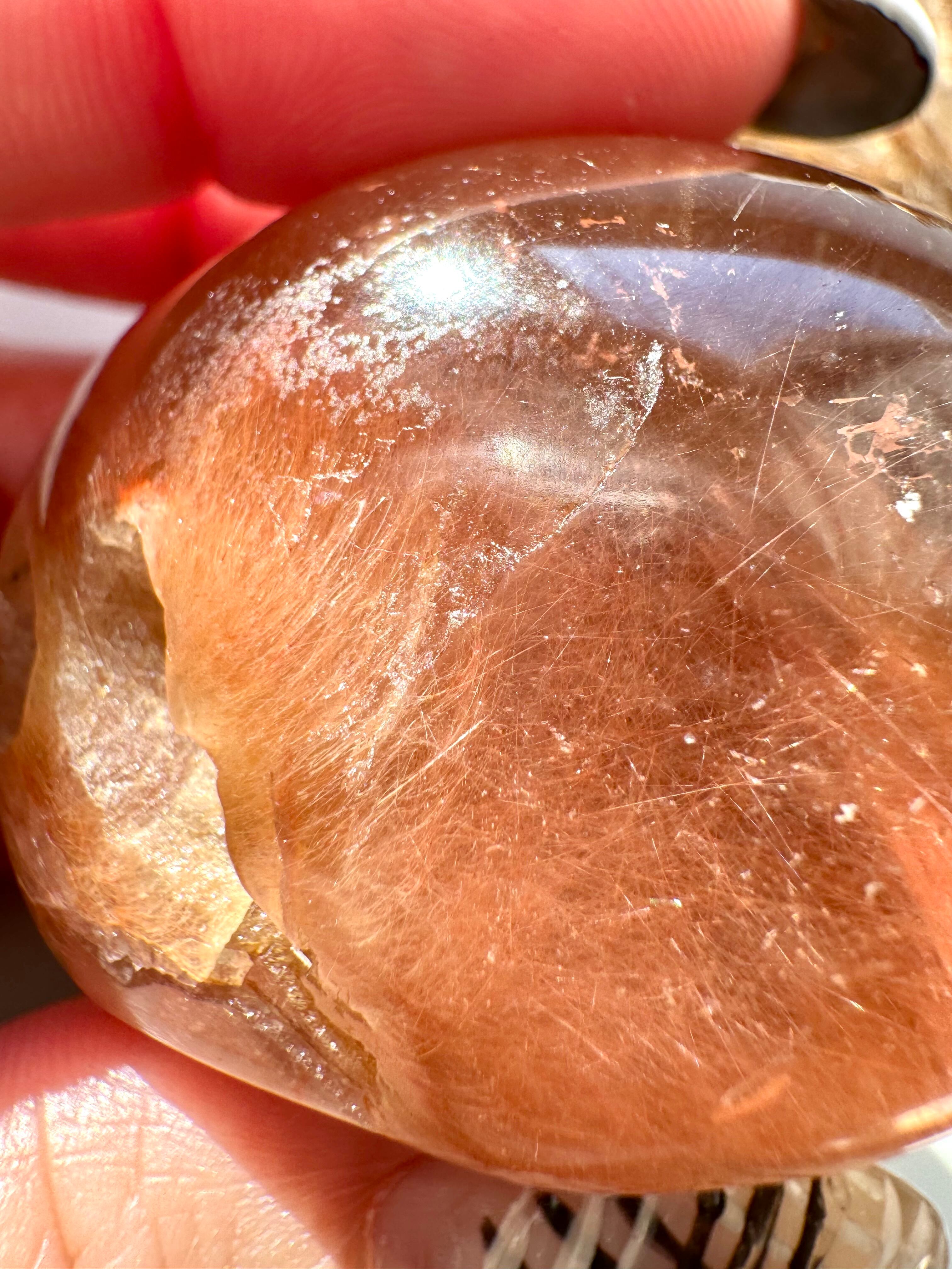 透明な水晶の中にうさぎの毛のようなラインが見えるブラジル産アンフィボールレンズが入荷しました。小さいながら可愛らしく綺麗な虹も見られます。