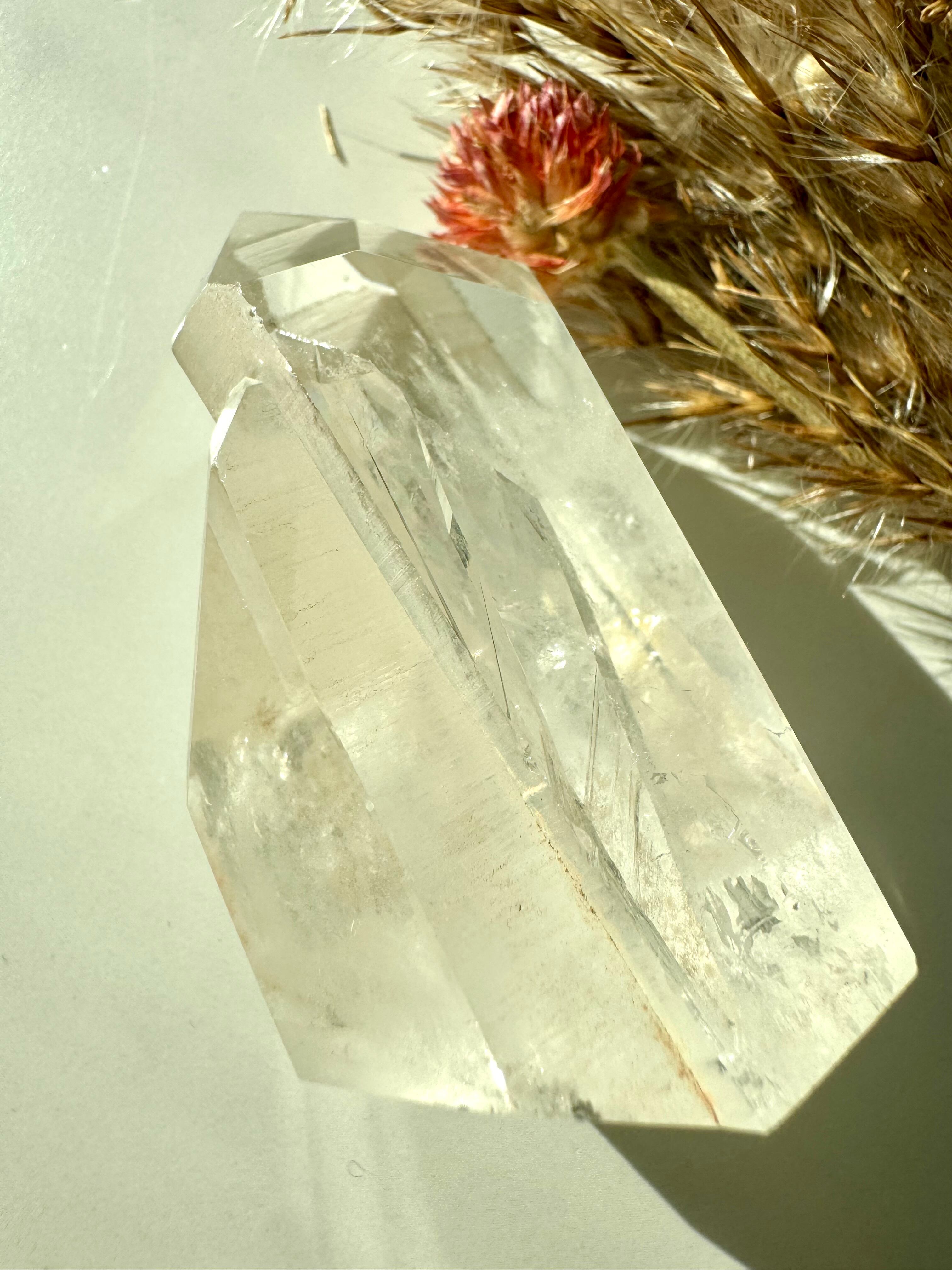 透明度の高いクォーツインクォーツ(貫入水晶)ポイントです。