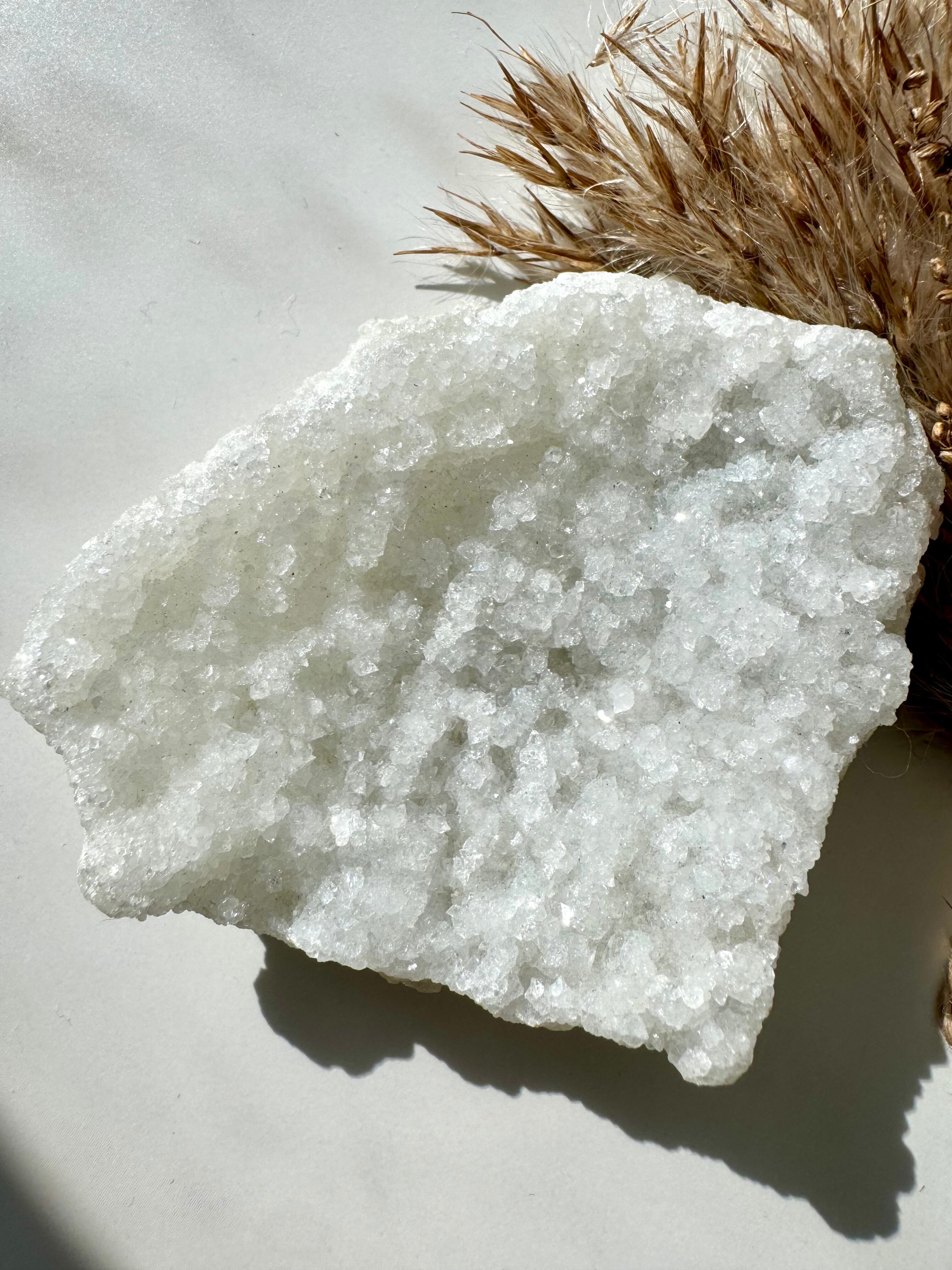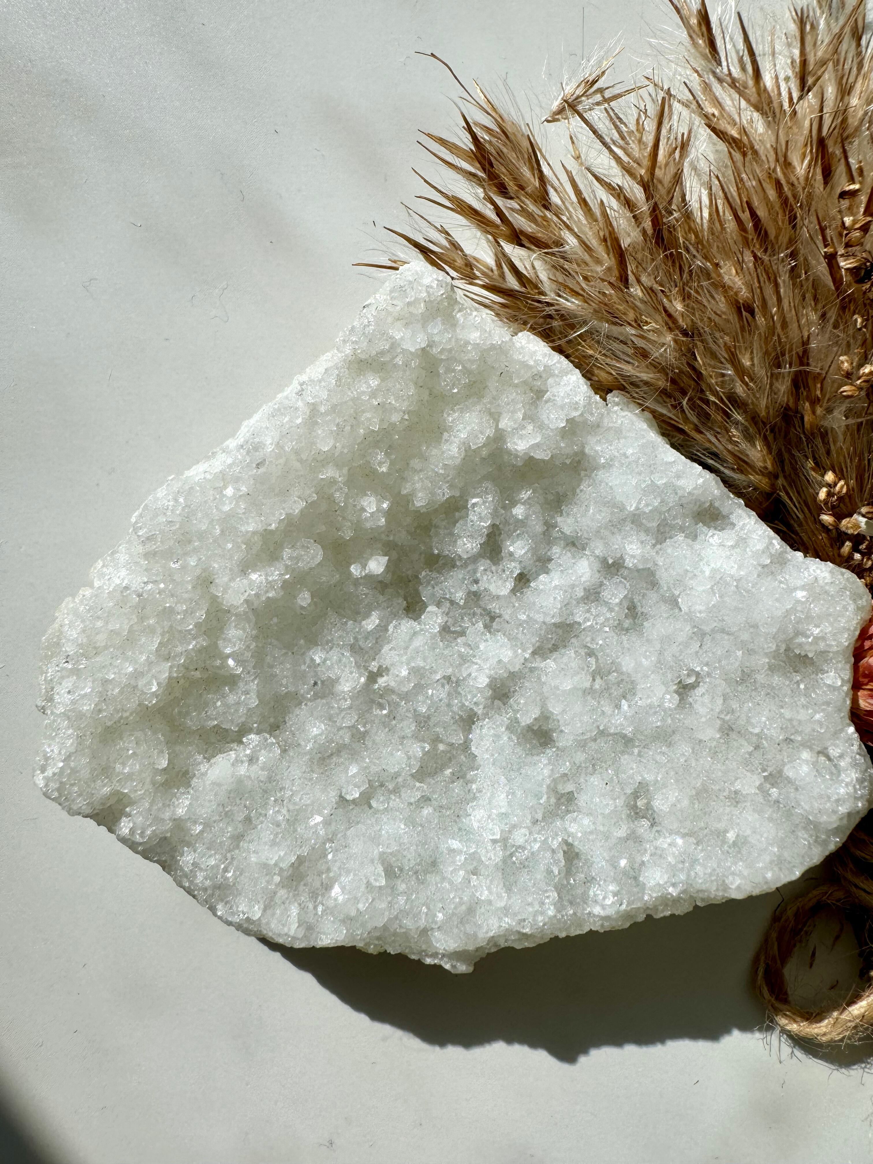 初雪のように淡く優しいカルセドニーとアポフィライトのグラデーションが美しいクラスターです。永遠に解けない雪の結晶のようです。