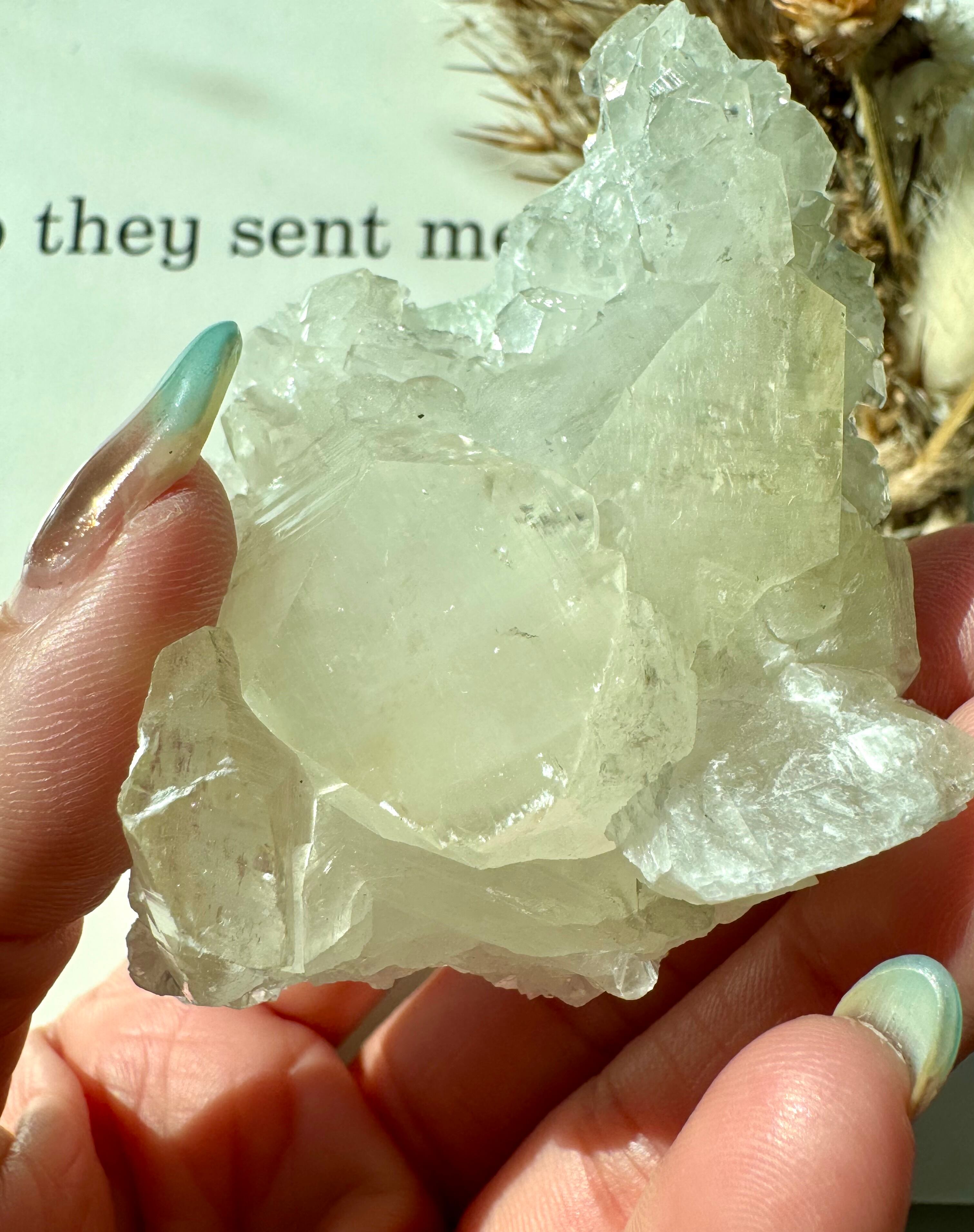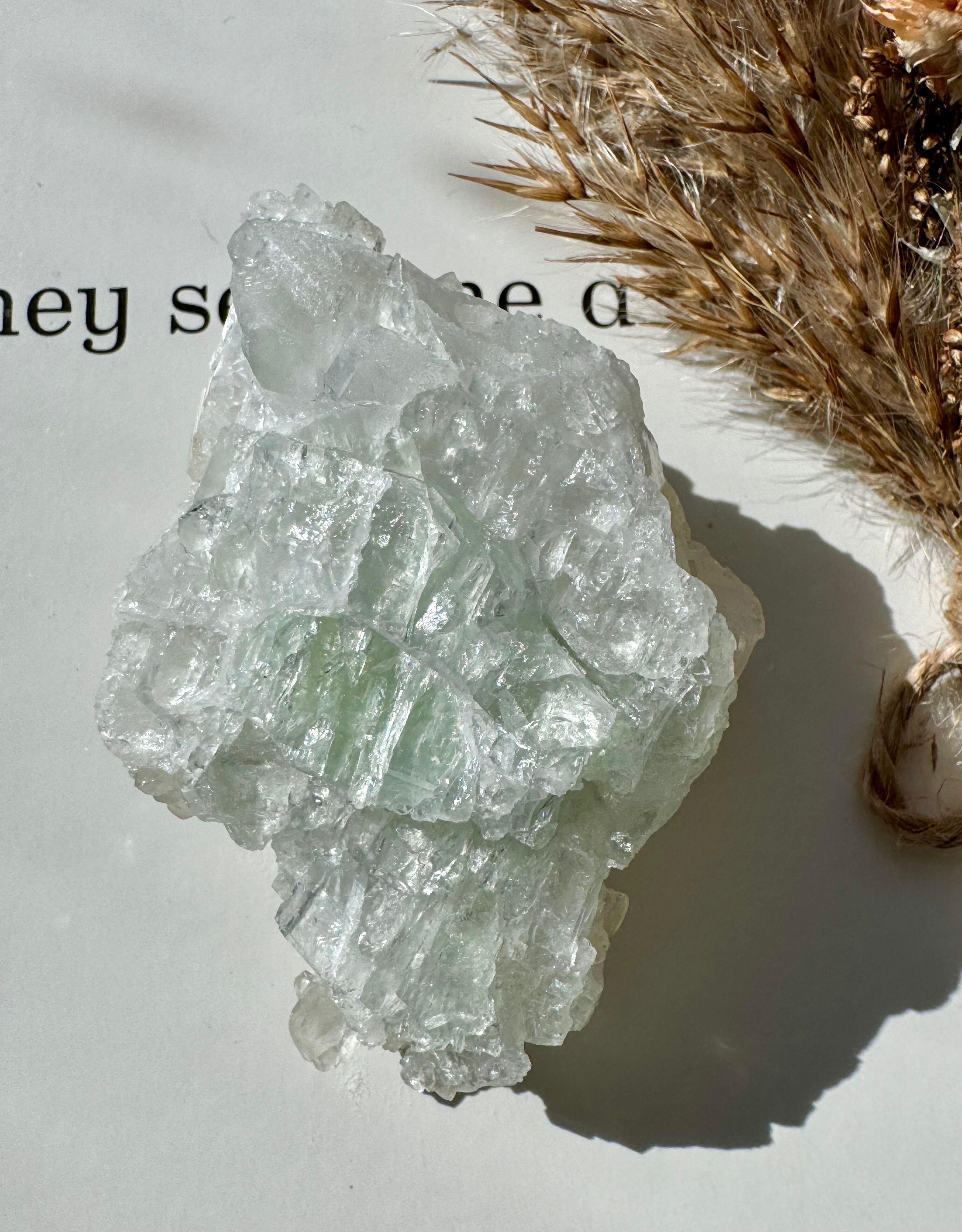 淡く透け感のあるグリーンがとても綺麗なグリーンカルサイト。光を含んでキラキラと輝きます。カルサイトは波動が穏やかで、気づかないほどに優しく心身に癒しを与えてくれます。