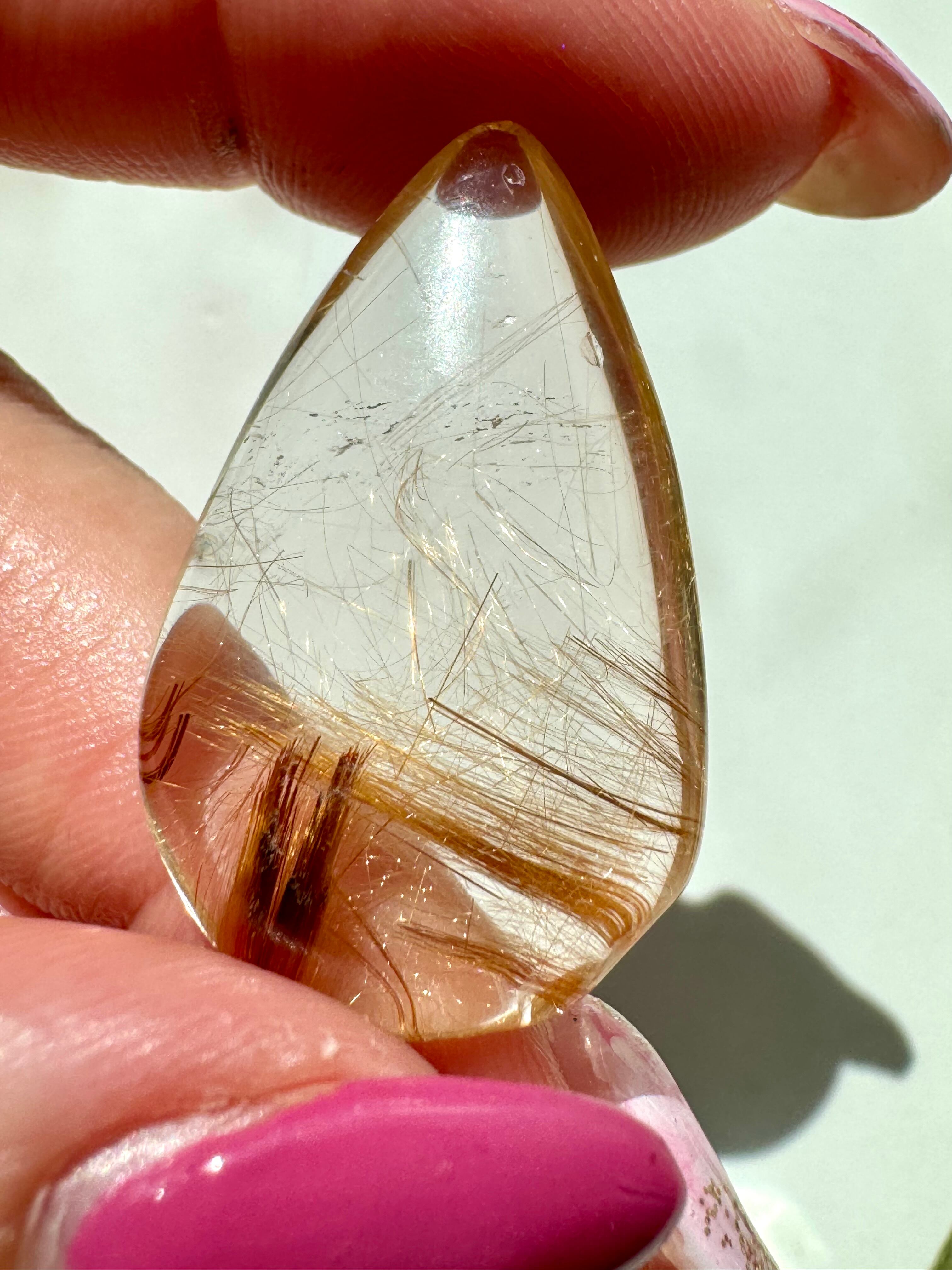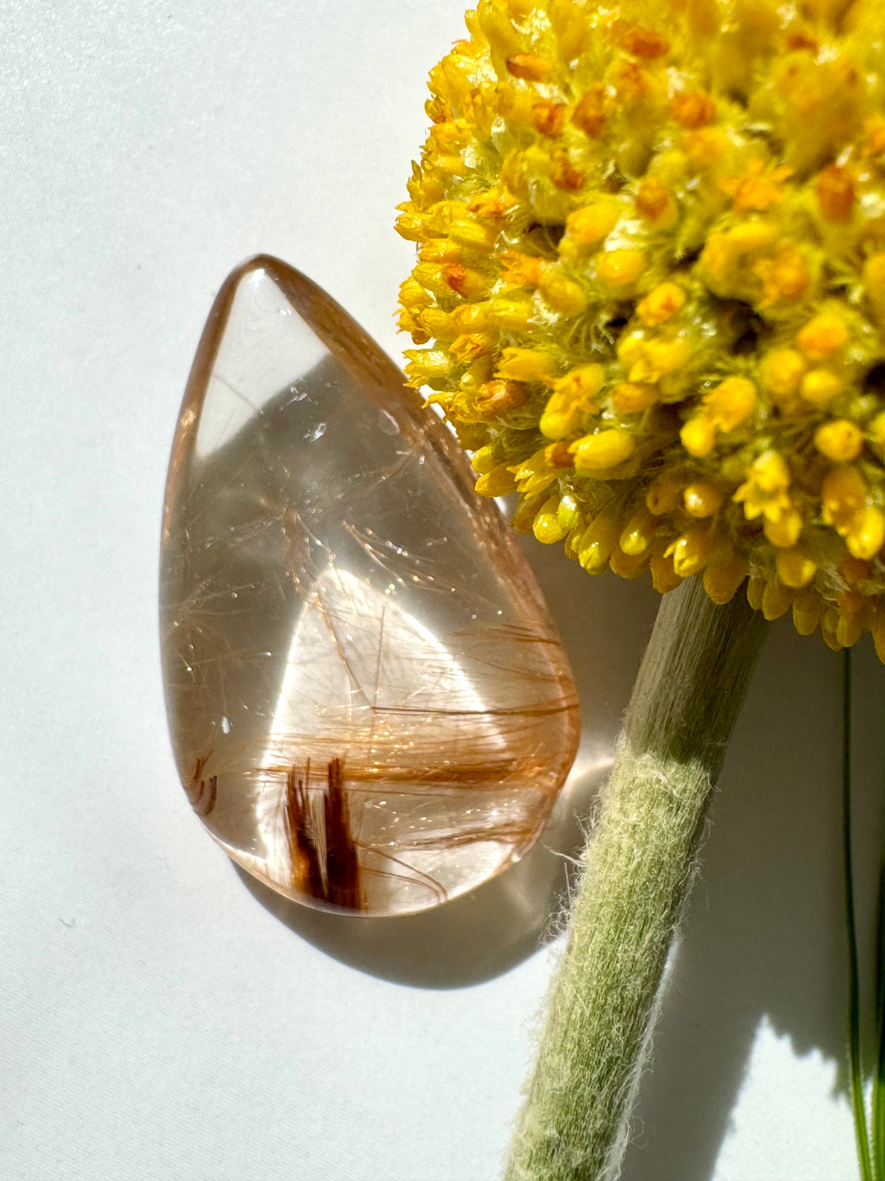 透明度の高いクォーツの中にゴールデンルチルが入っています。