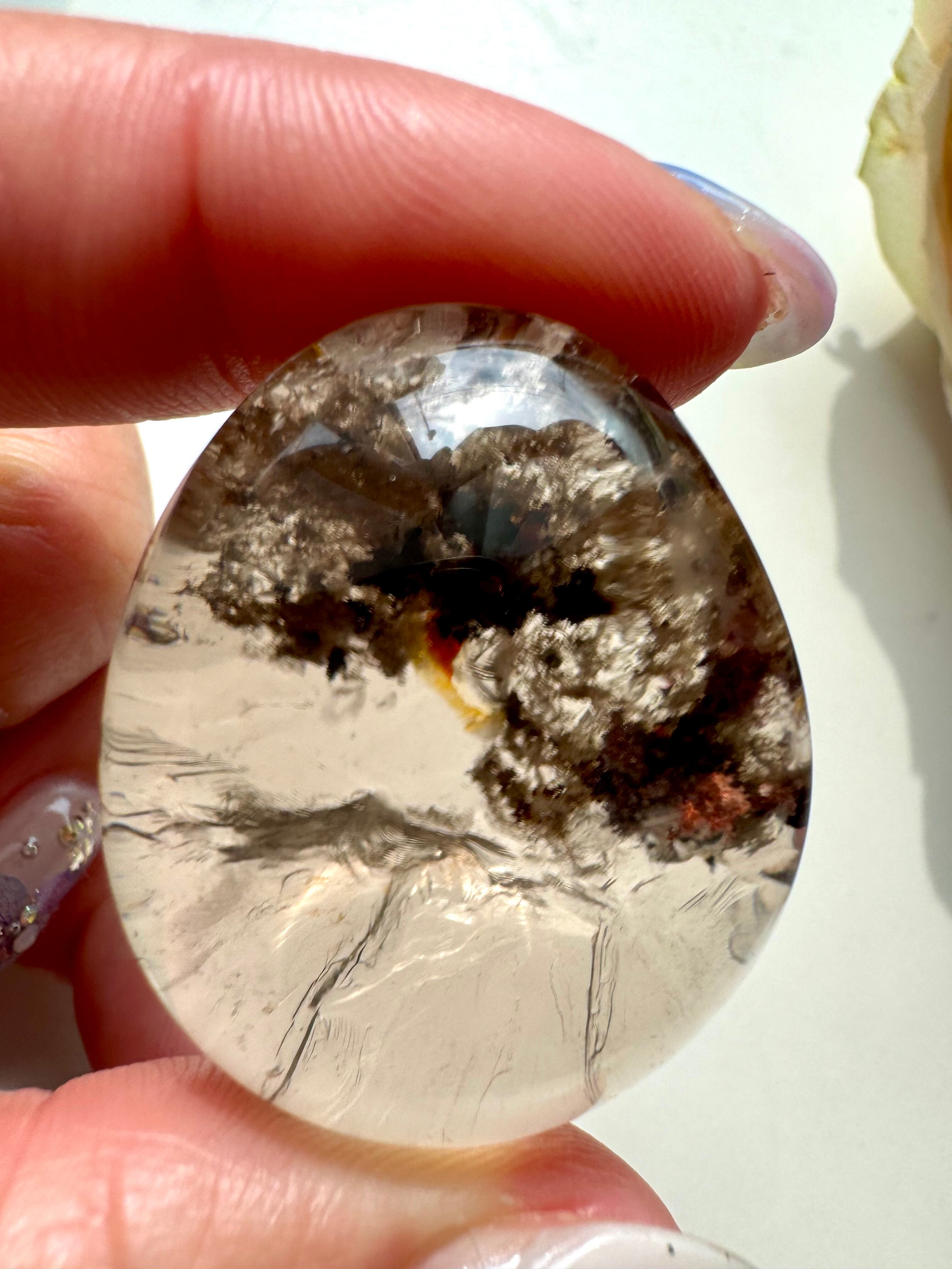 とても透明な水晶の中に、ガーデンが幻想的なレンズタイプです。