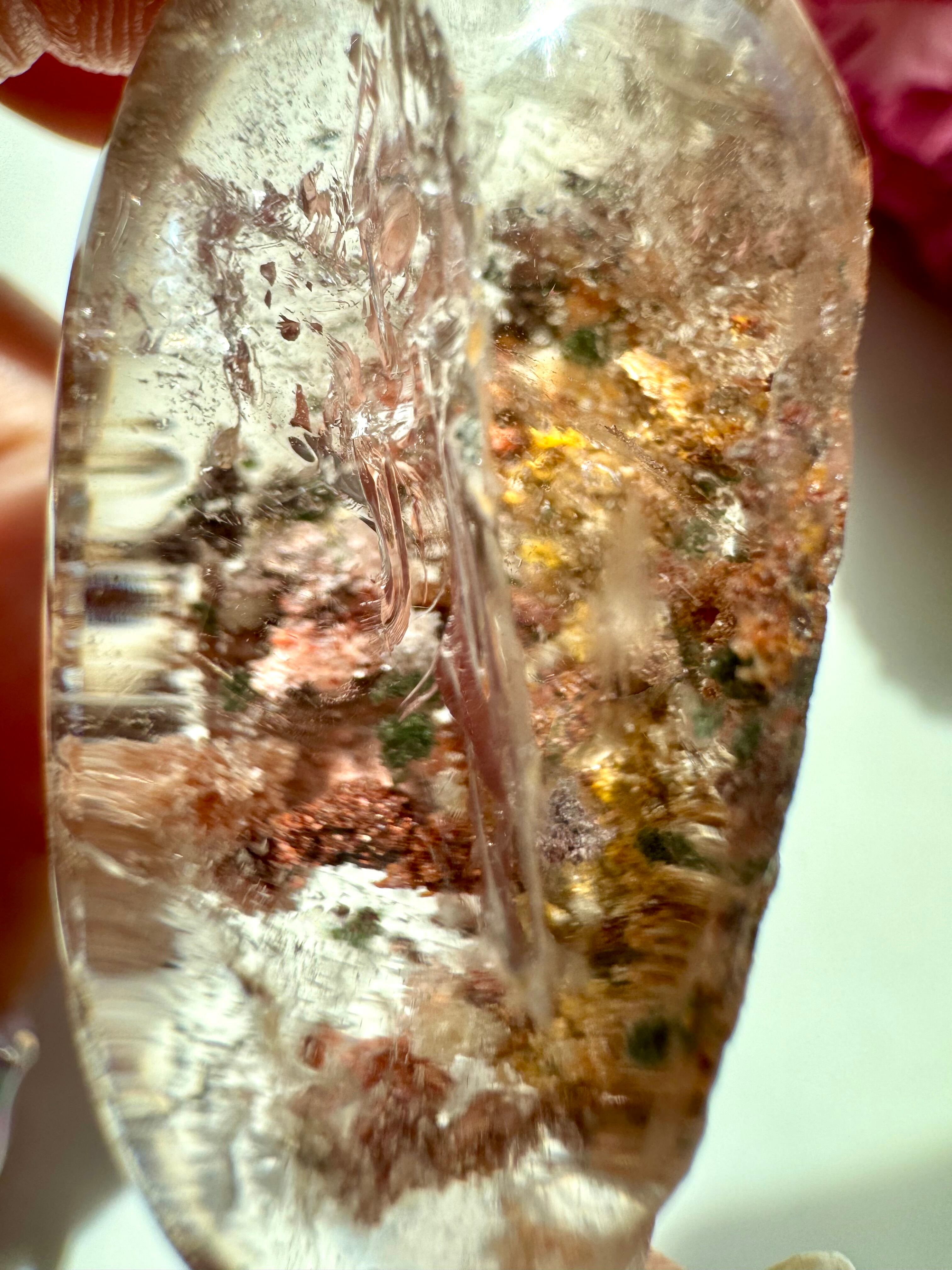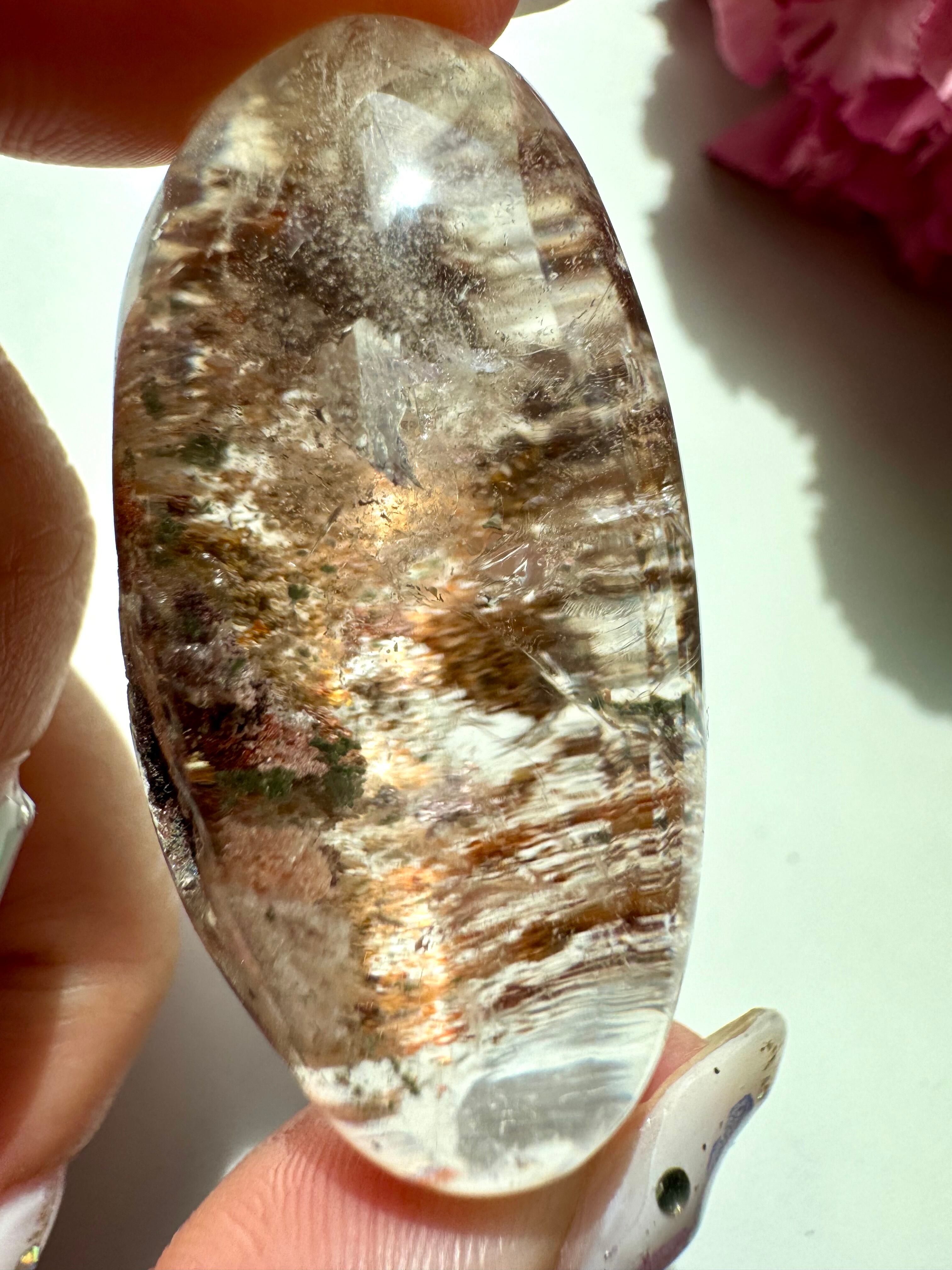 とても透明な水晶の中に、ガーデンが幻想的なレンズタイプです。