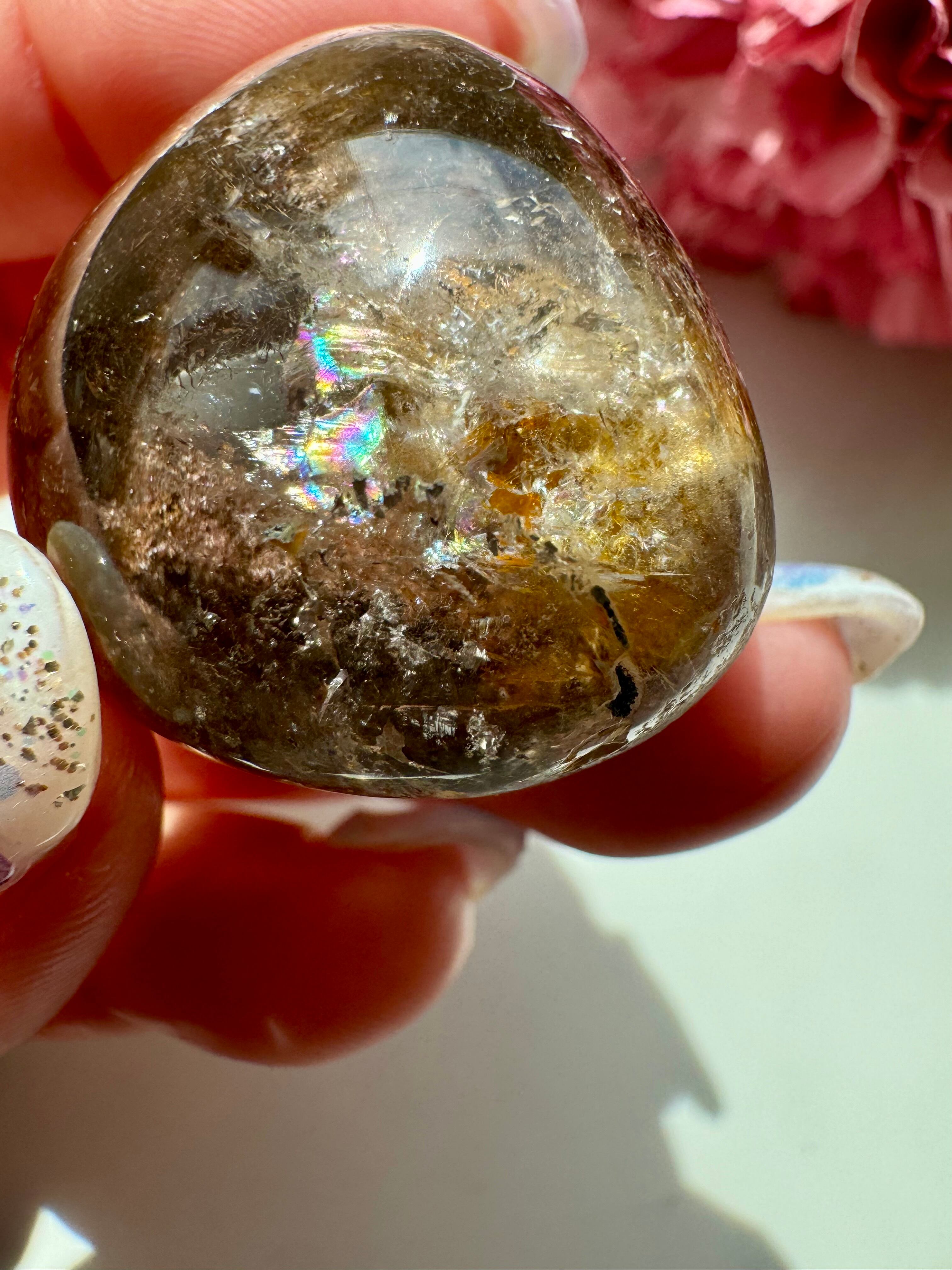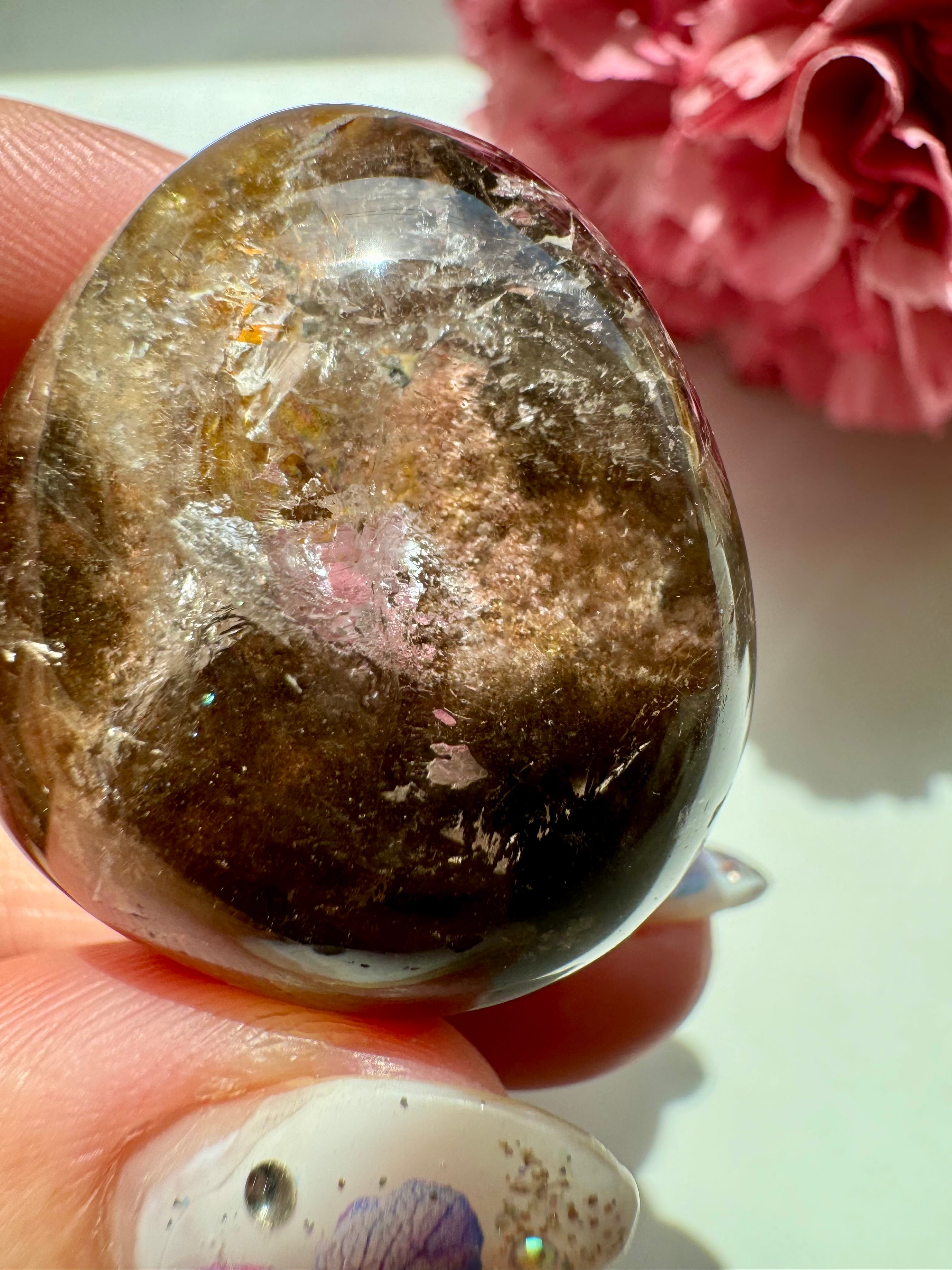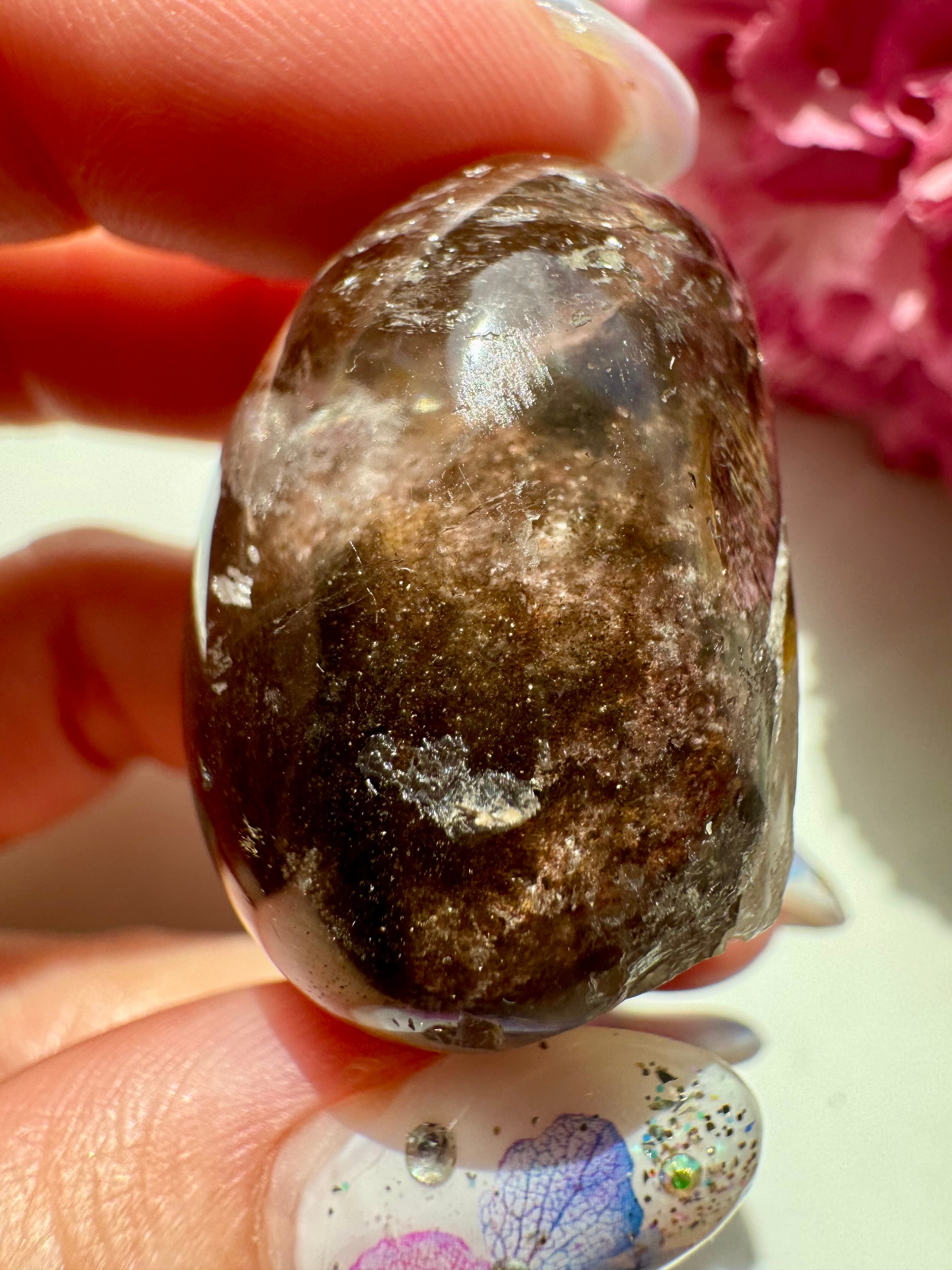 とても透明な水晶の中に、ガーデンが幻想的なレンズタイプです。