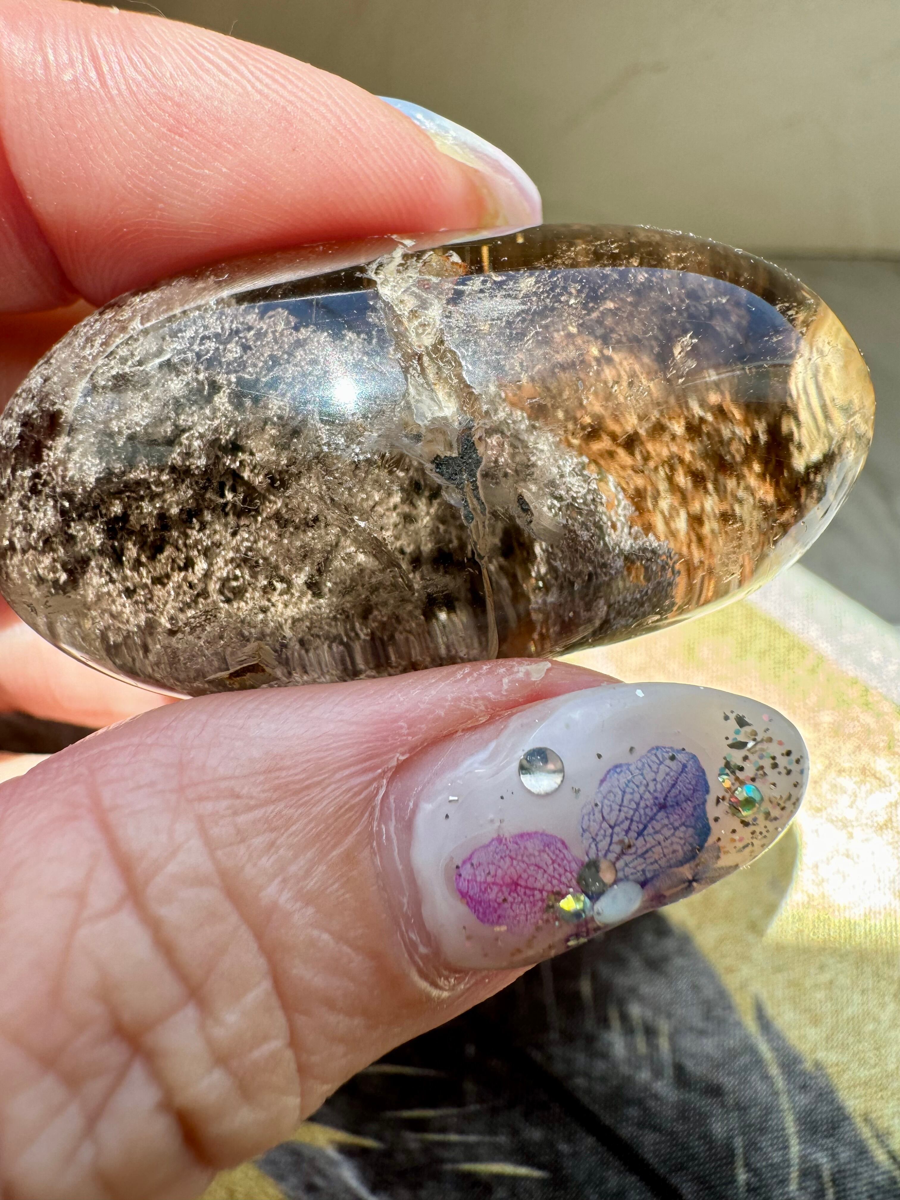 とても透明な水晶の中に、ガーデンが幻想的なレンズタイプです。