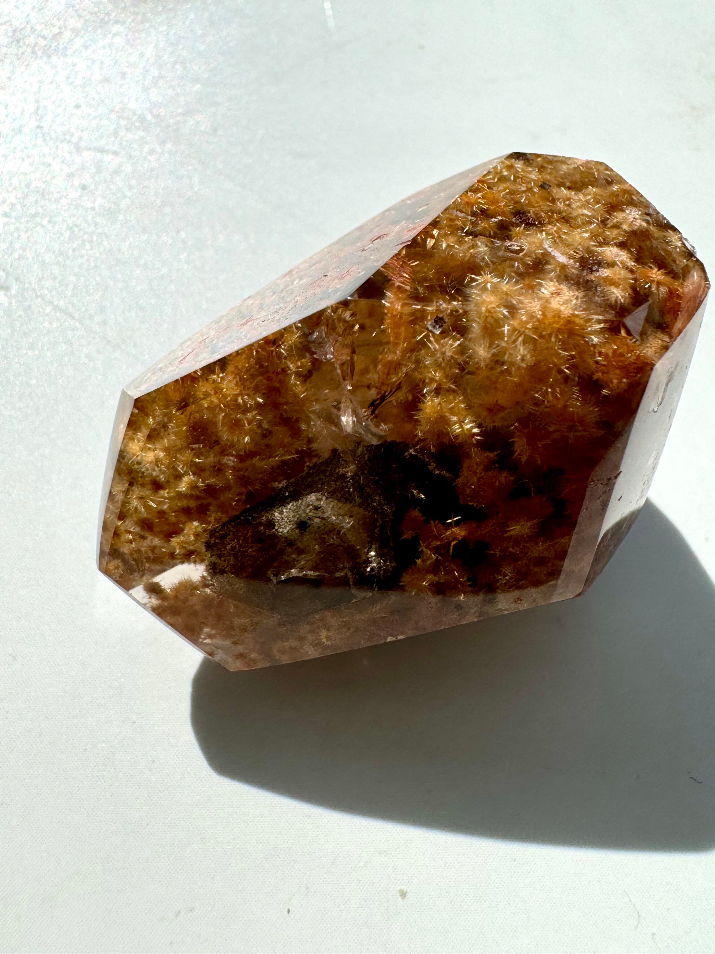 レアなフラワールチルクォーツです。透明度の高い水晶に花咲くルチルはとても神秘的です。