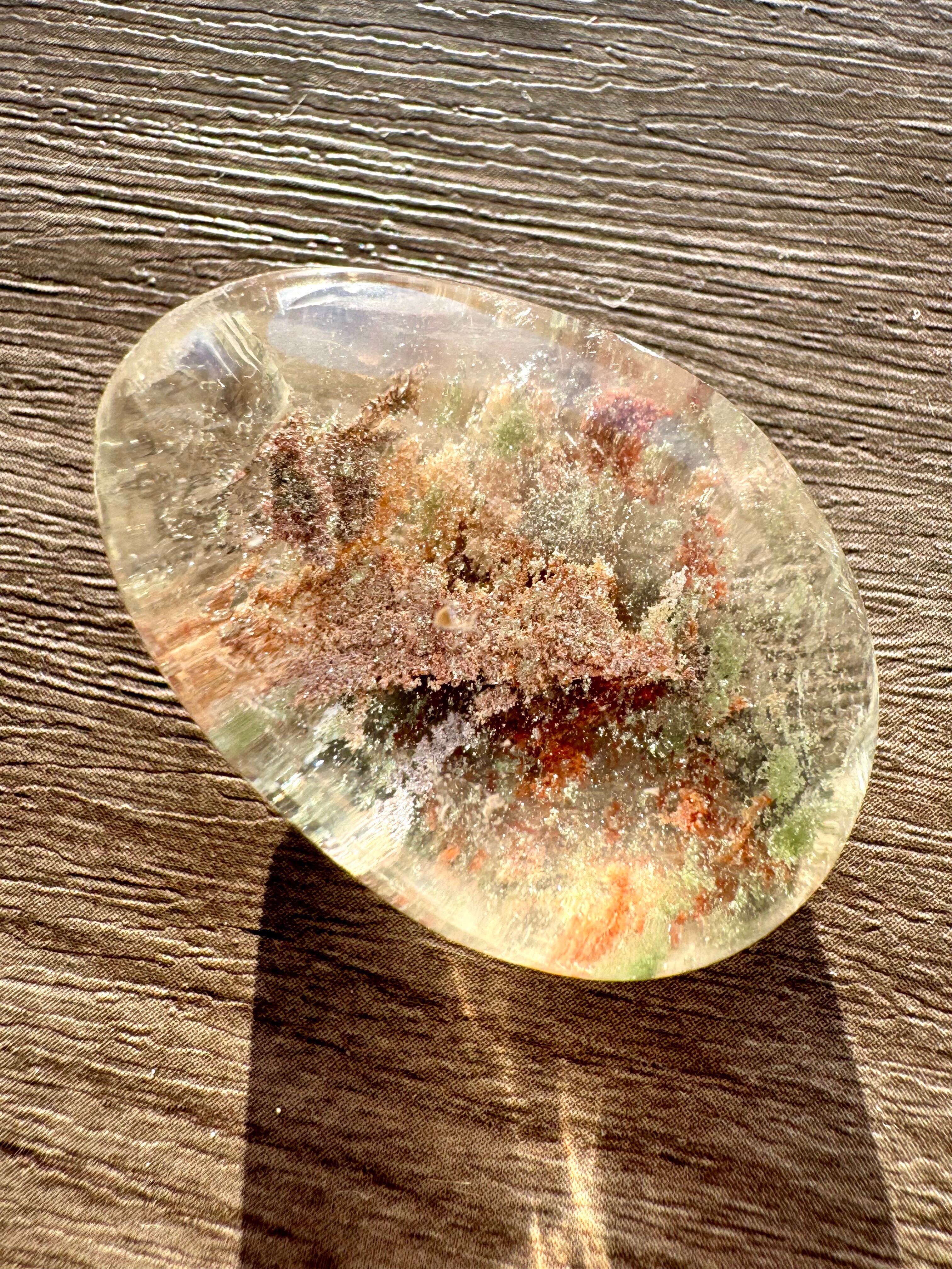 とても透明な水晶の中に、ガーデンが幻想的なレンズタイプです。