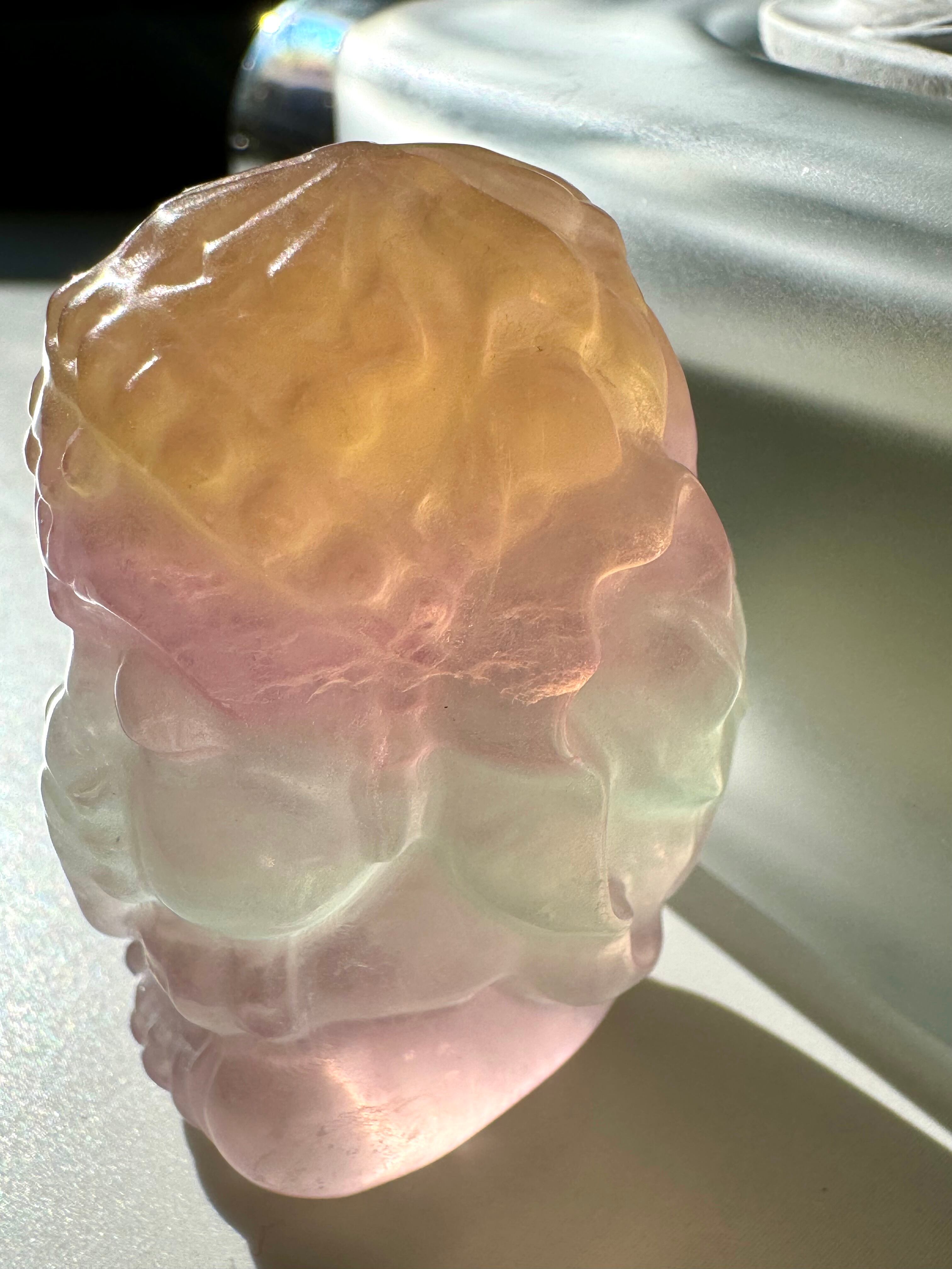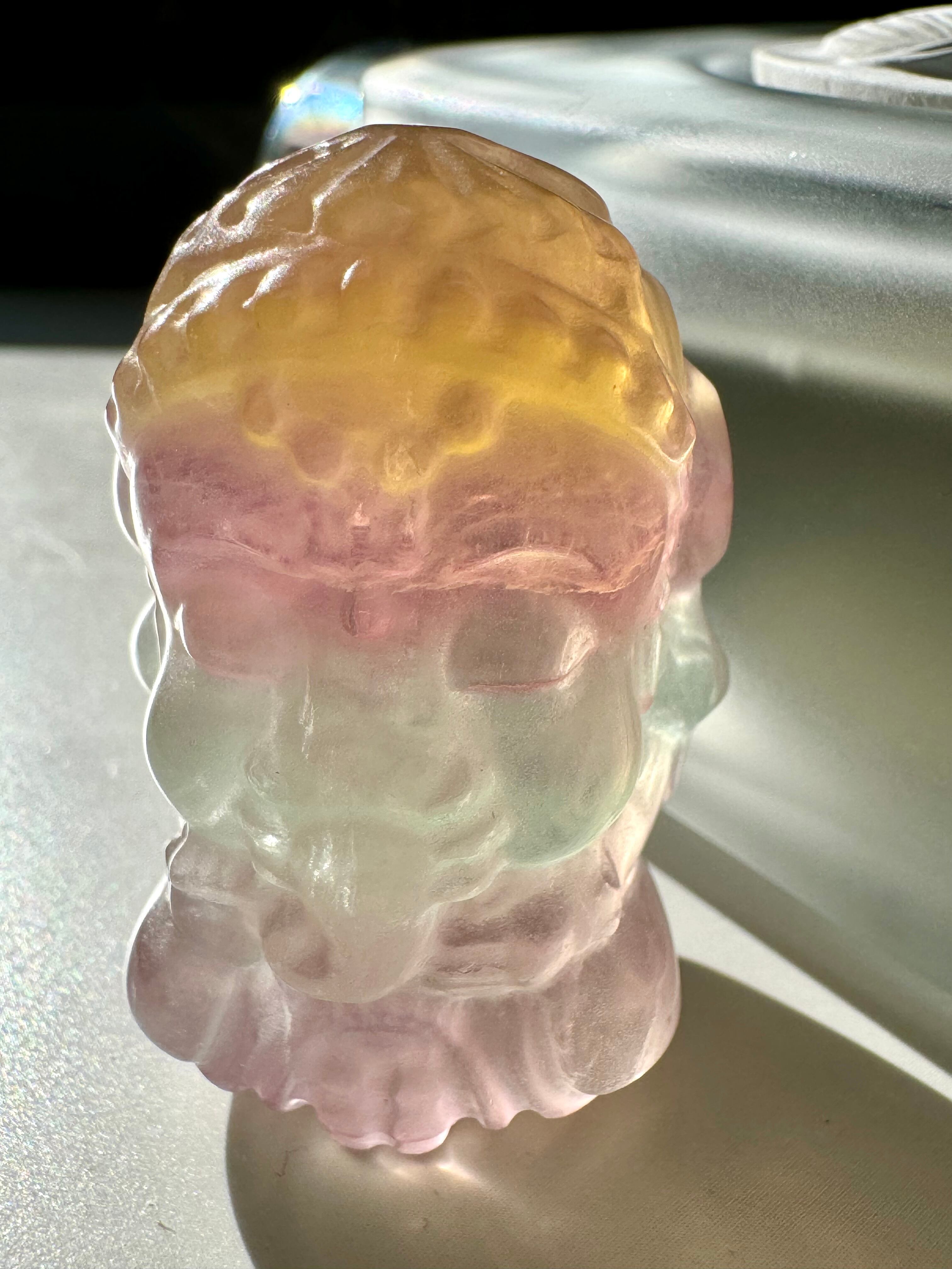 透明度の高いグリーンとパープル、イエローが美しいフローライトのガネーシャです。