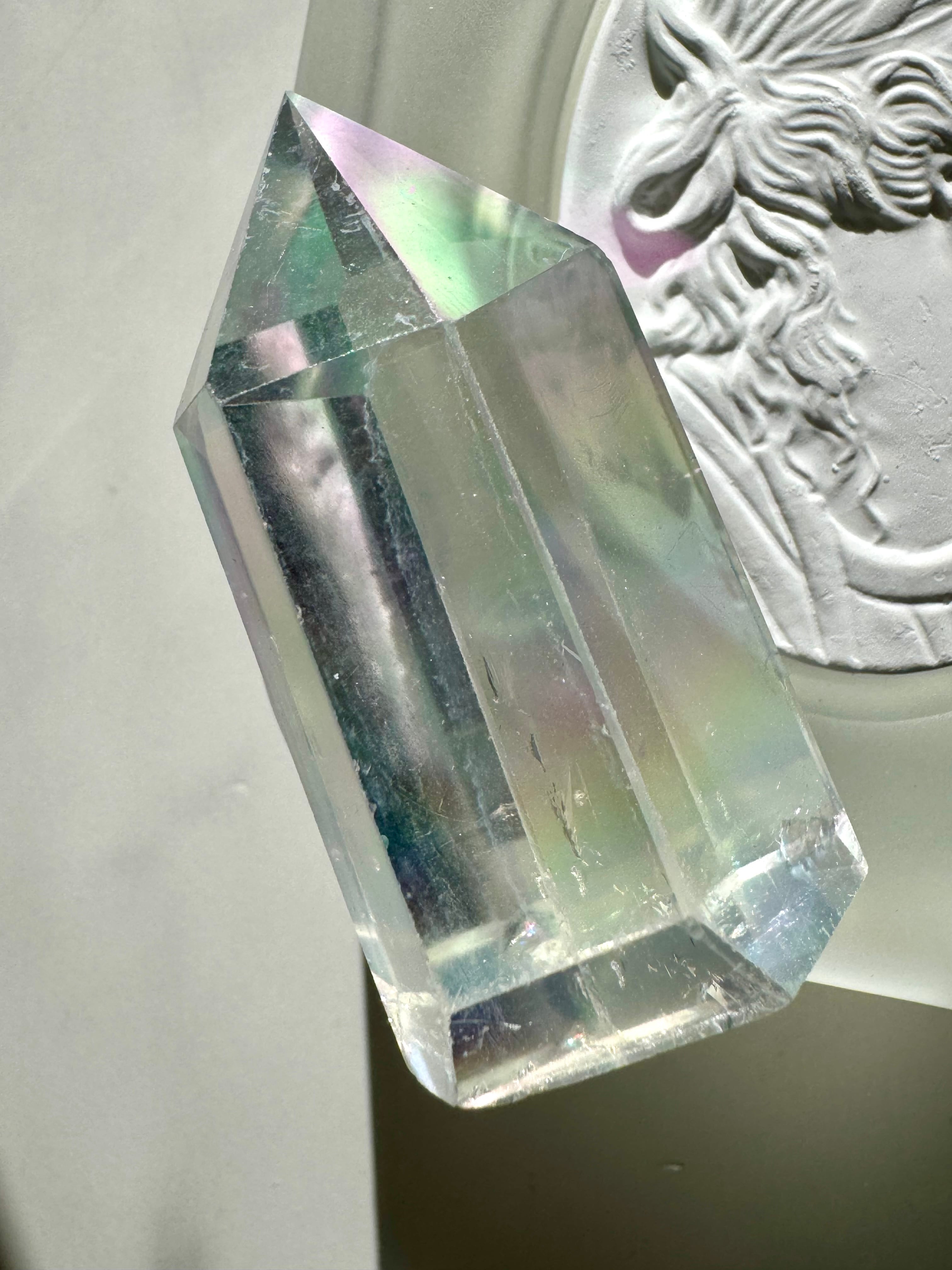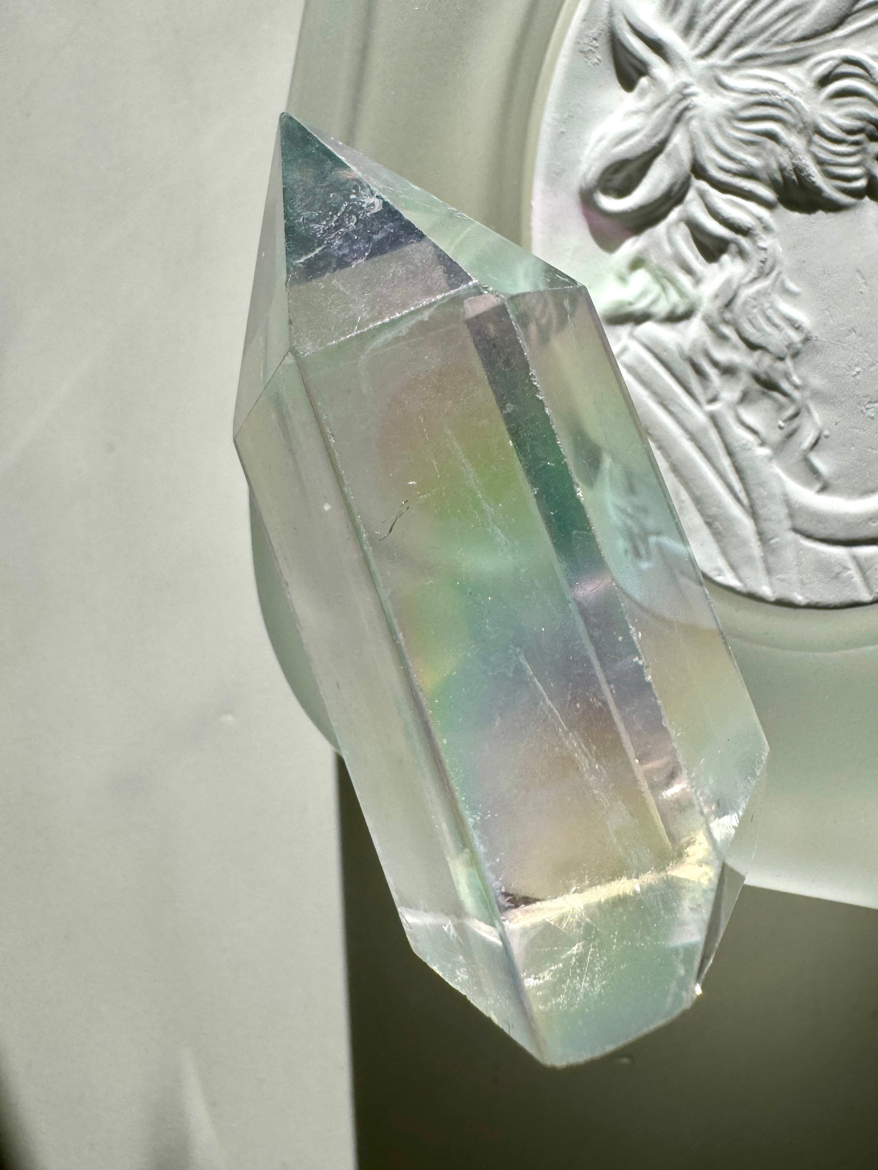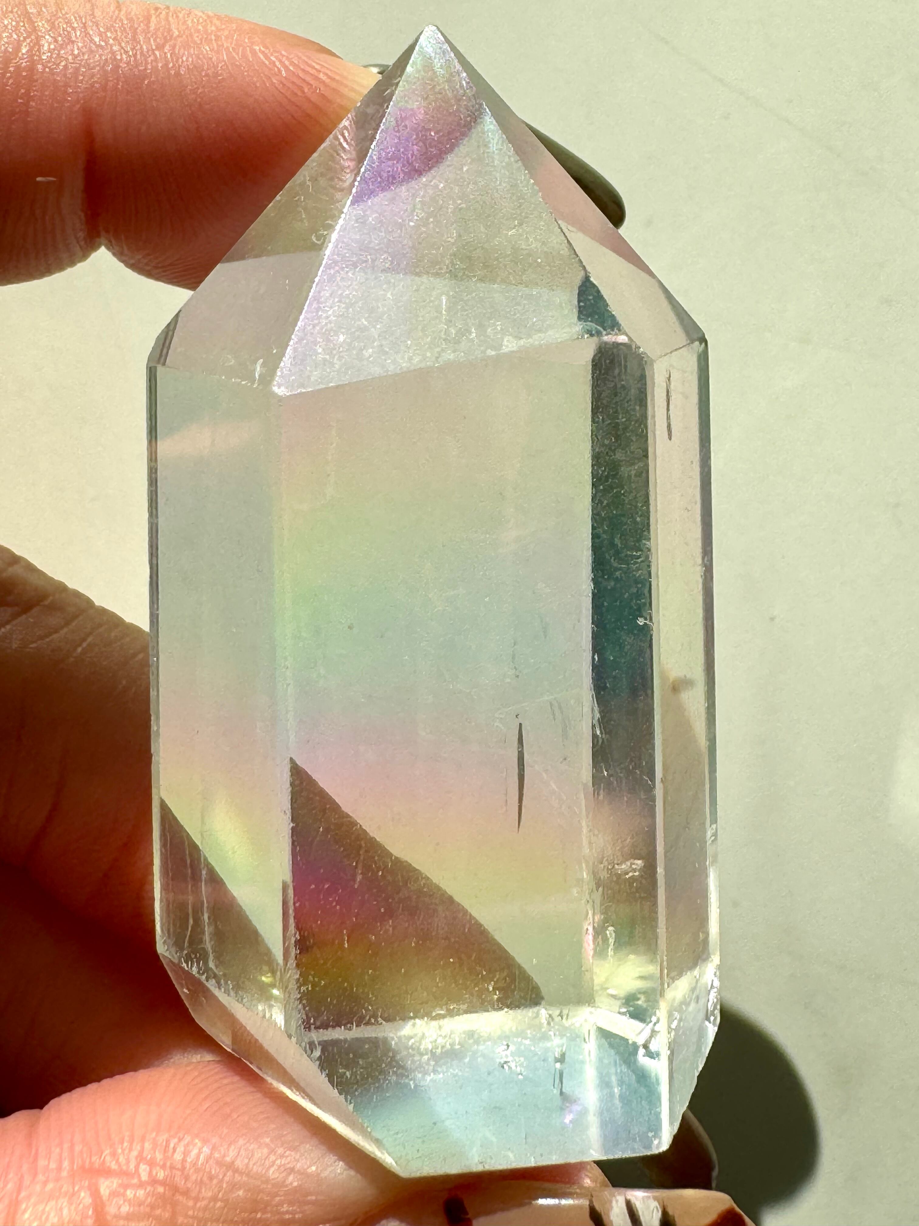 透明感のある水晶にエンジェルオーラ加工を施したタワーです。